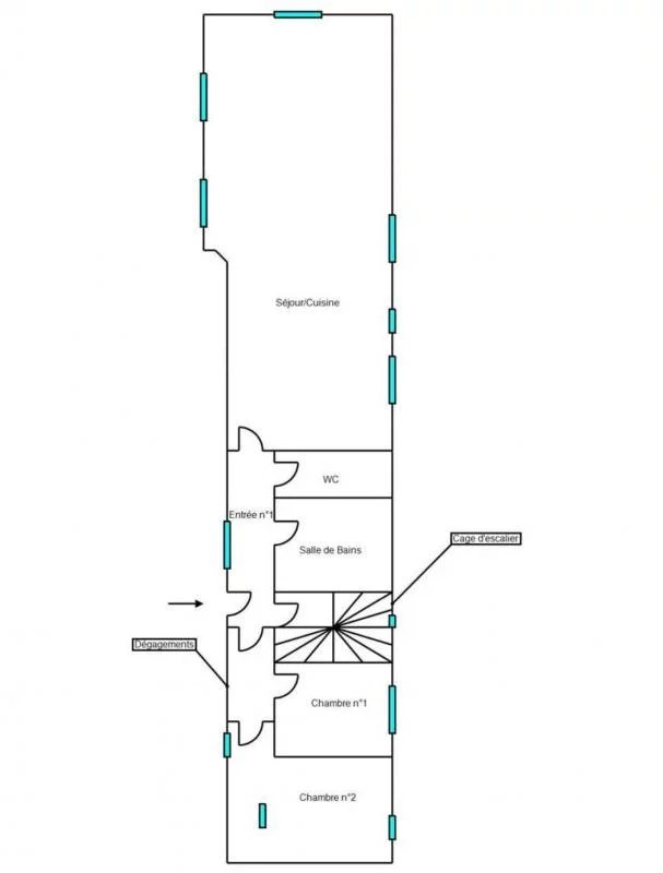 un appartement de 110 m2 avec séjour cuisine ouverte, salon, salle d'eau, wc, 2 chambres, le tout donnant sur une cour privée de 85 m2