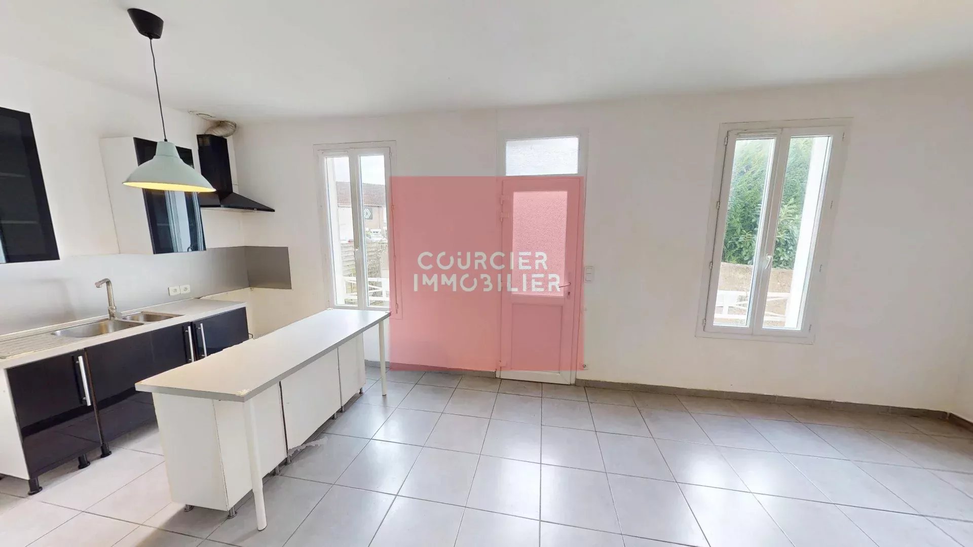 Le rez-de-chaussée se compose d’un séjour lumineux, d’une spacieuse cuisine ouverte avec îlot central, ainsi que d’une buanderie avec WC.