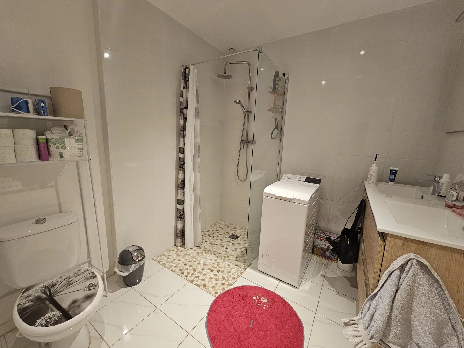 A l'étage, grand séjour lumineux de 29 m², chambre et salle d'eau de 6 m².