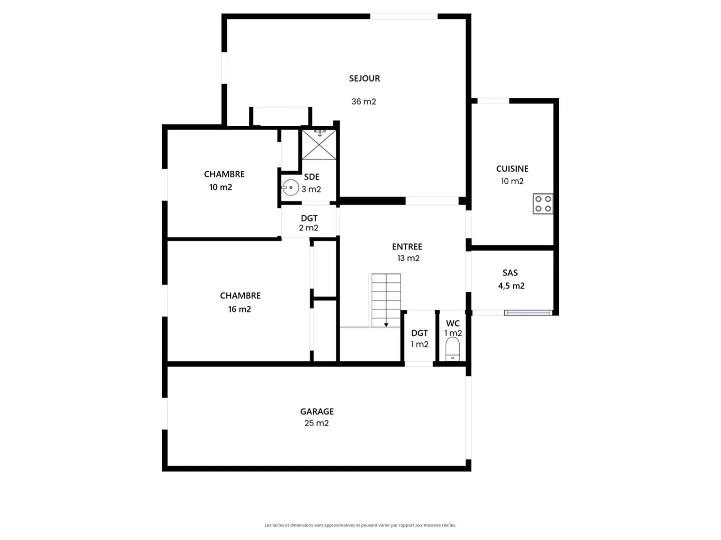 Cette maison des années 70, offre quatre chambres, un séjour avec cheminée, une cuisine indépendante. Au rez-de-chaussée, deux chambres et une salle d'eau ; au premier étage, deux autres chambres et une salle de bains, ainsi qu'un terrasse.