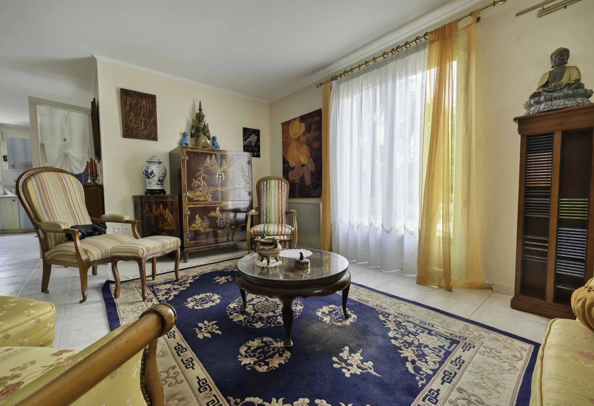 Le séjour est vaste avec une cuisine ouverte et un accès vers une véranda de 30 m².