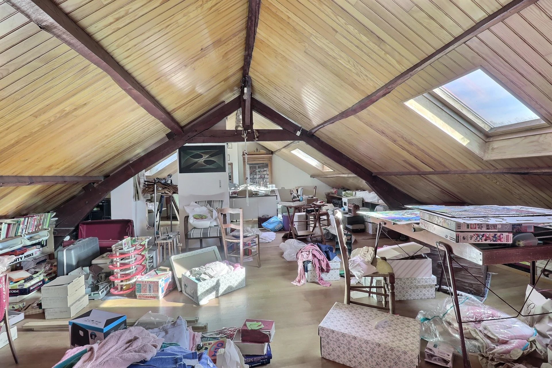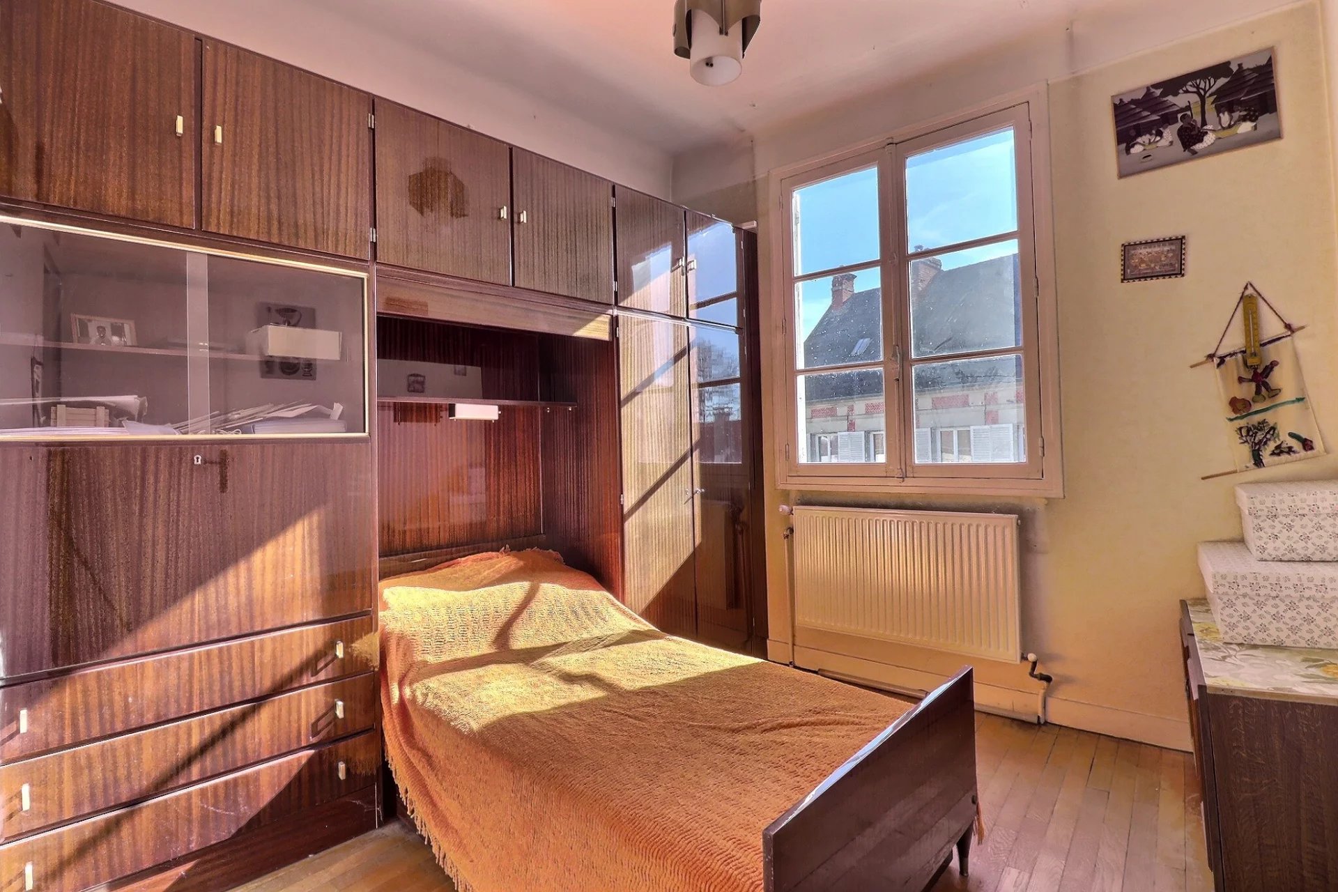 À proximité du centre ville maison en pierre comprenant au rez-de-chaussée entrée, salon, salle d’eau avec toilette, atelier et garage; à l’étage palier desservant cuisine, trois chambres, salle de bains, toilette, grande pièce palière permettant d’accéder au grenier aménagé. Belle terrasse exposée plein sud et jardinet. Cave. C/C fuel.