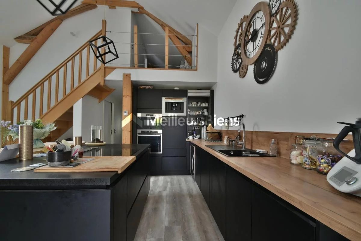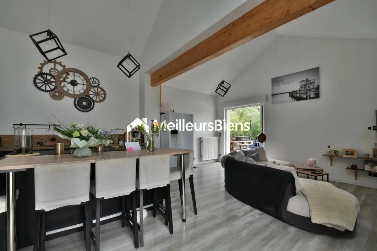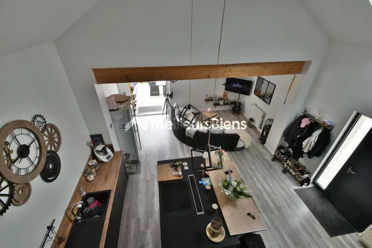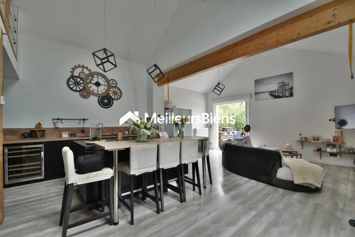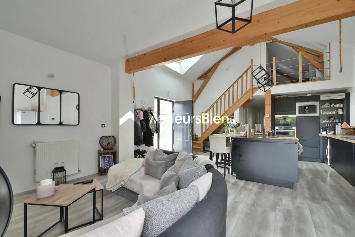 grande pièce de vie de 36 m² lumineuse avec plafond cathédrale et cuisine équipée donnant sur la terrasse. Suite parentale en rez-de-chaussée avec dressing et salle d'eau.