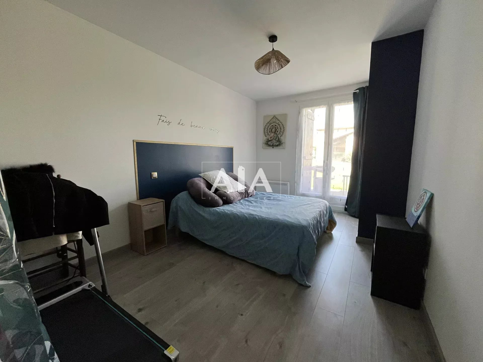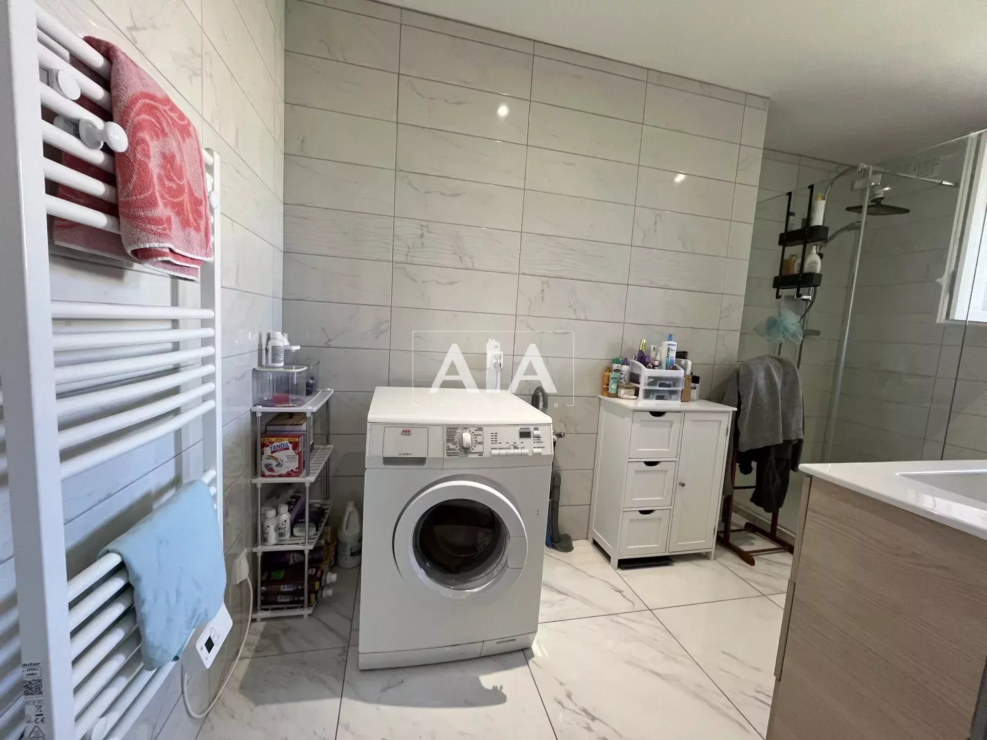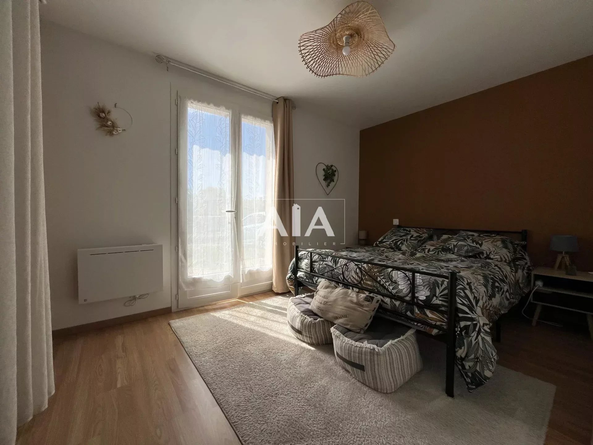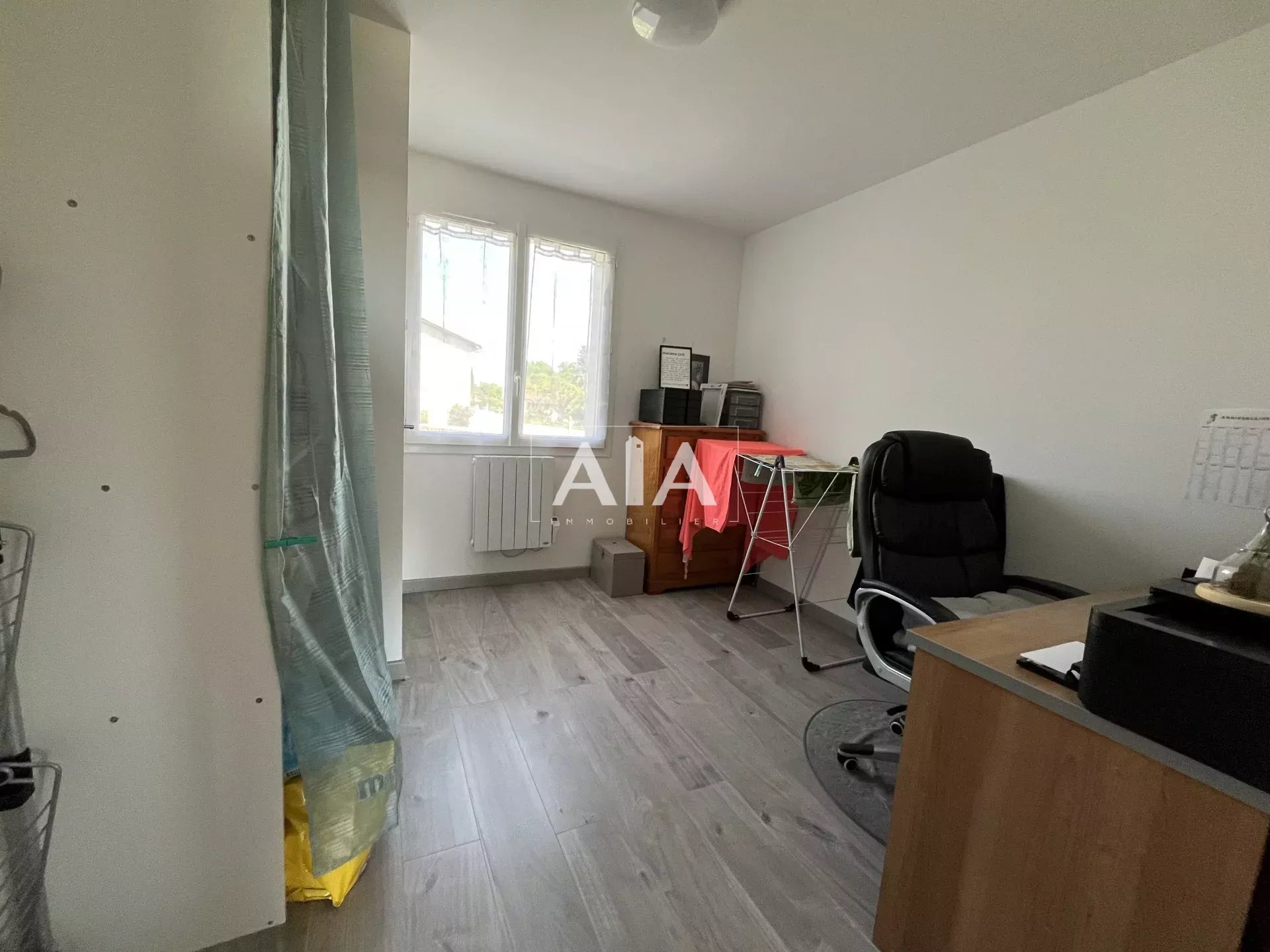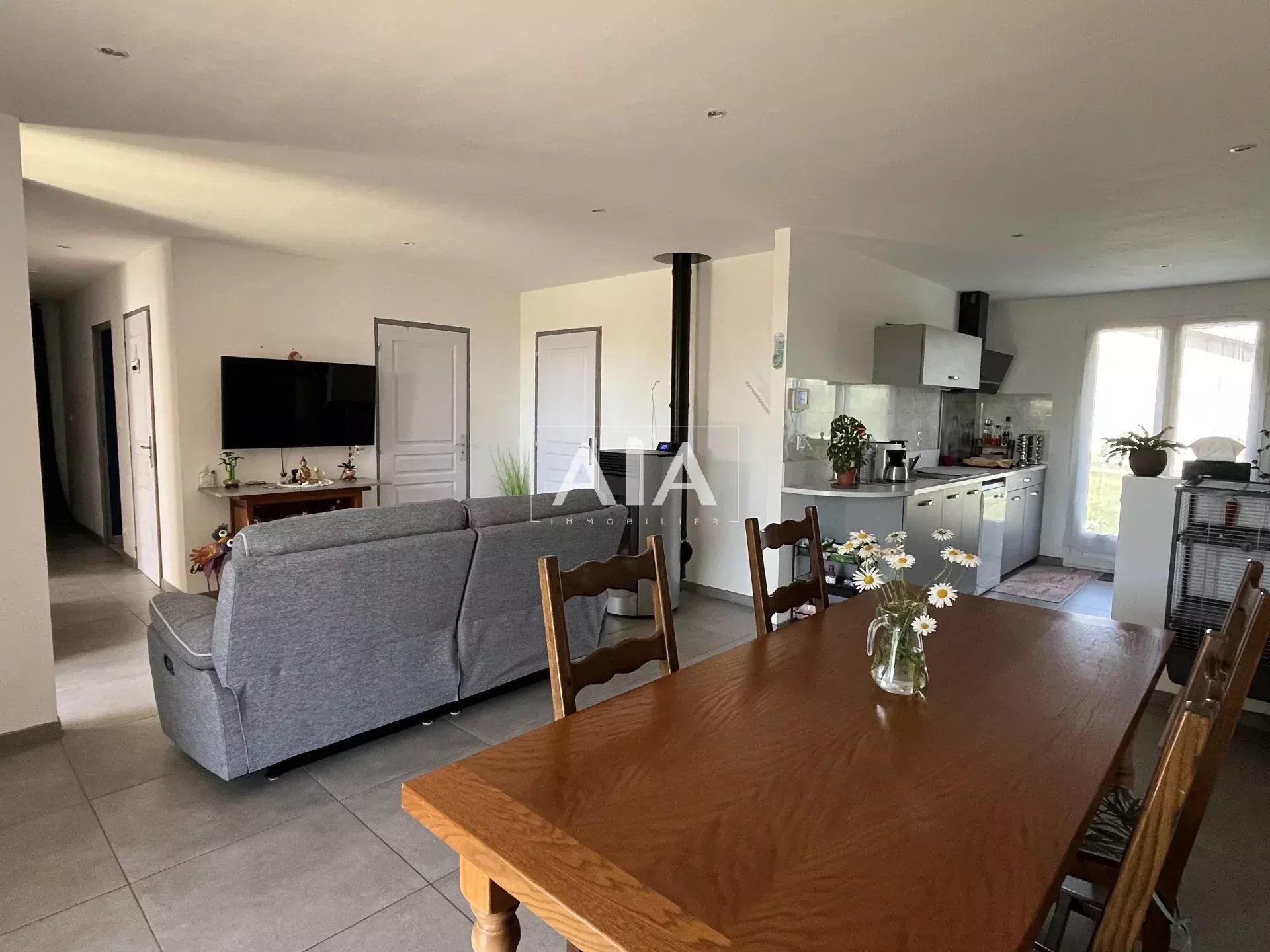 Le chauffage combine électricité et poêle à granulés, l’eau chaude est individuelle, et le bien est équipé de double vitrage, fibre optique, ventilation.
