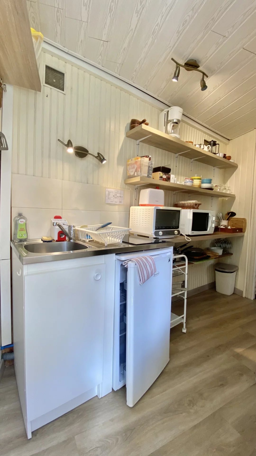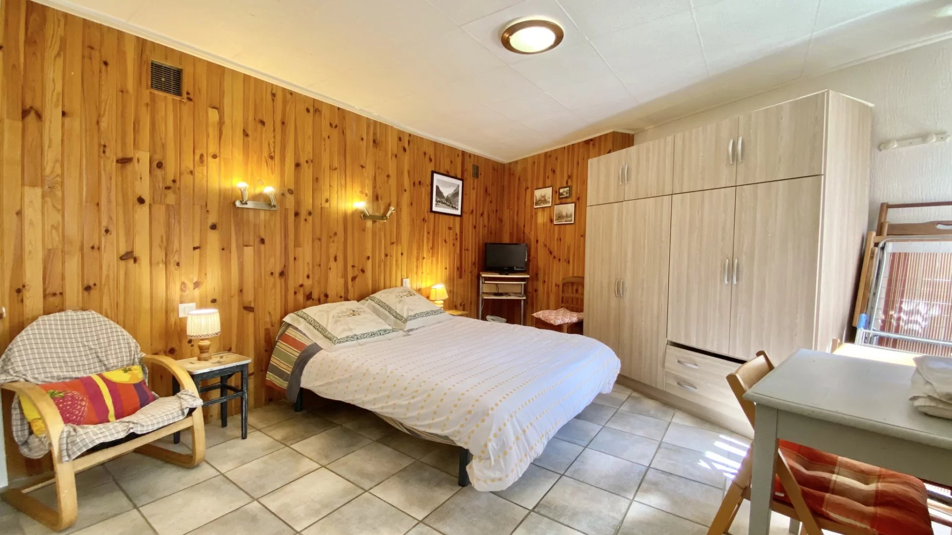 Rez-de-jardin : un appartement T2 indépendant avec coin cuisine, salle à manger, une chambre et une salle d'eau avec WC idéal pour de la location saisonnière.