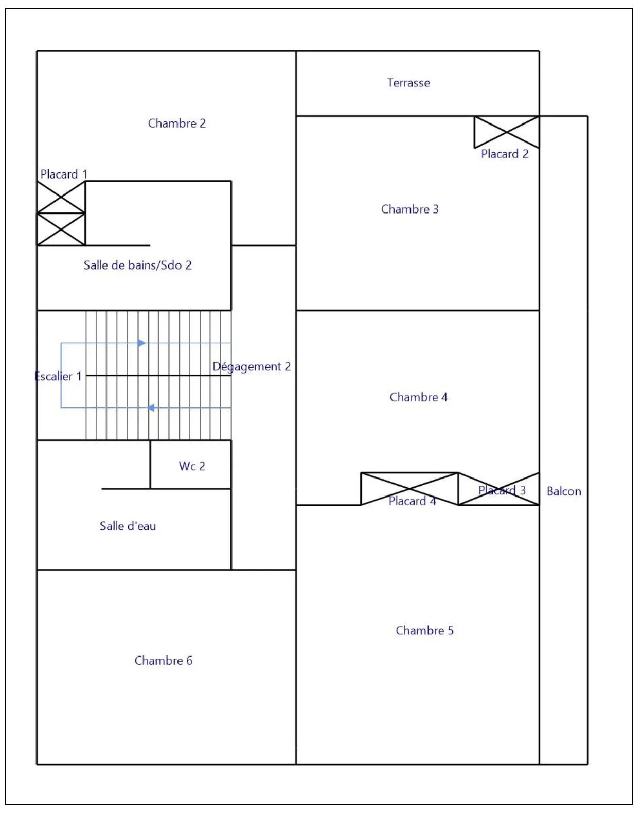 A l'étage, 5 grandes chambres avec placards et accès au balcon filant, 2 salles de bain et un wc séparé.