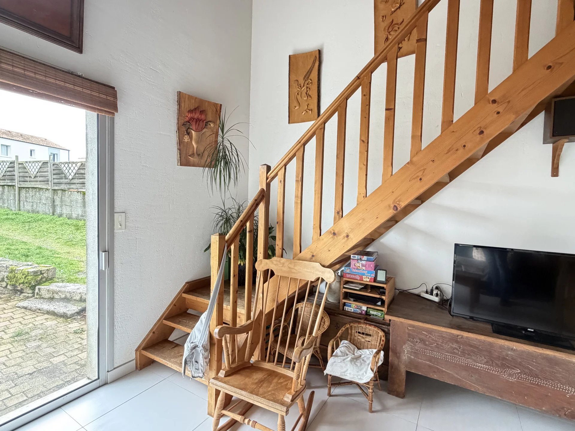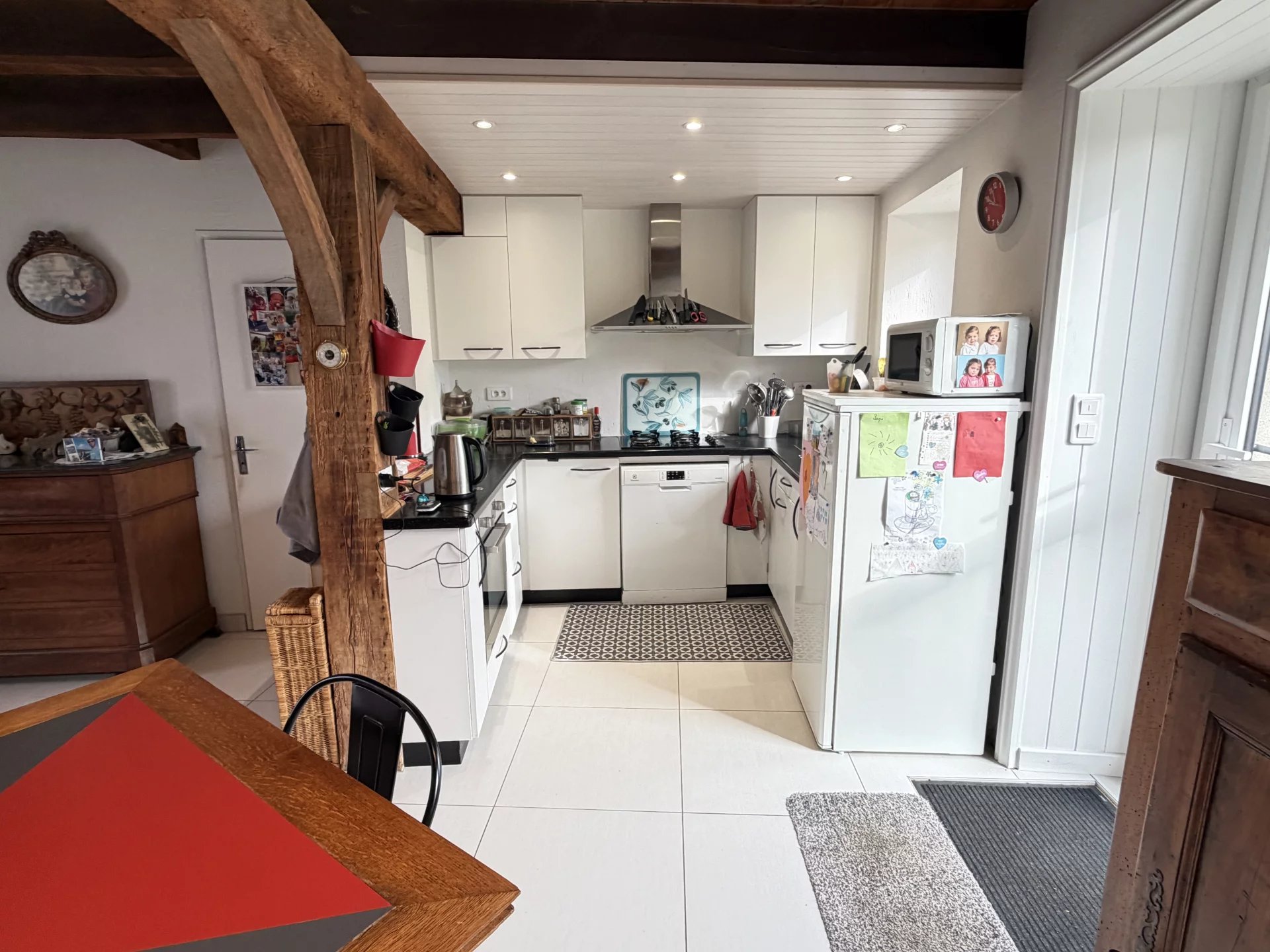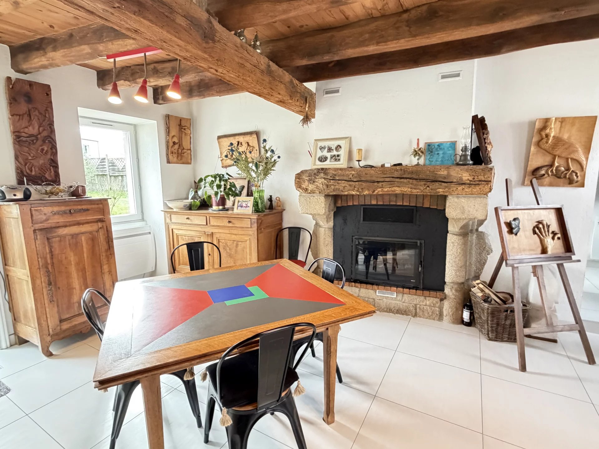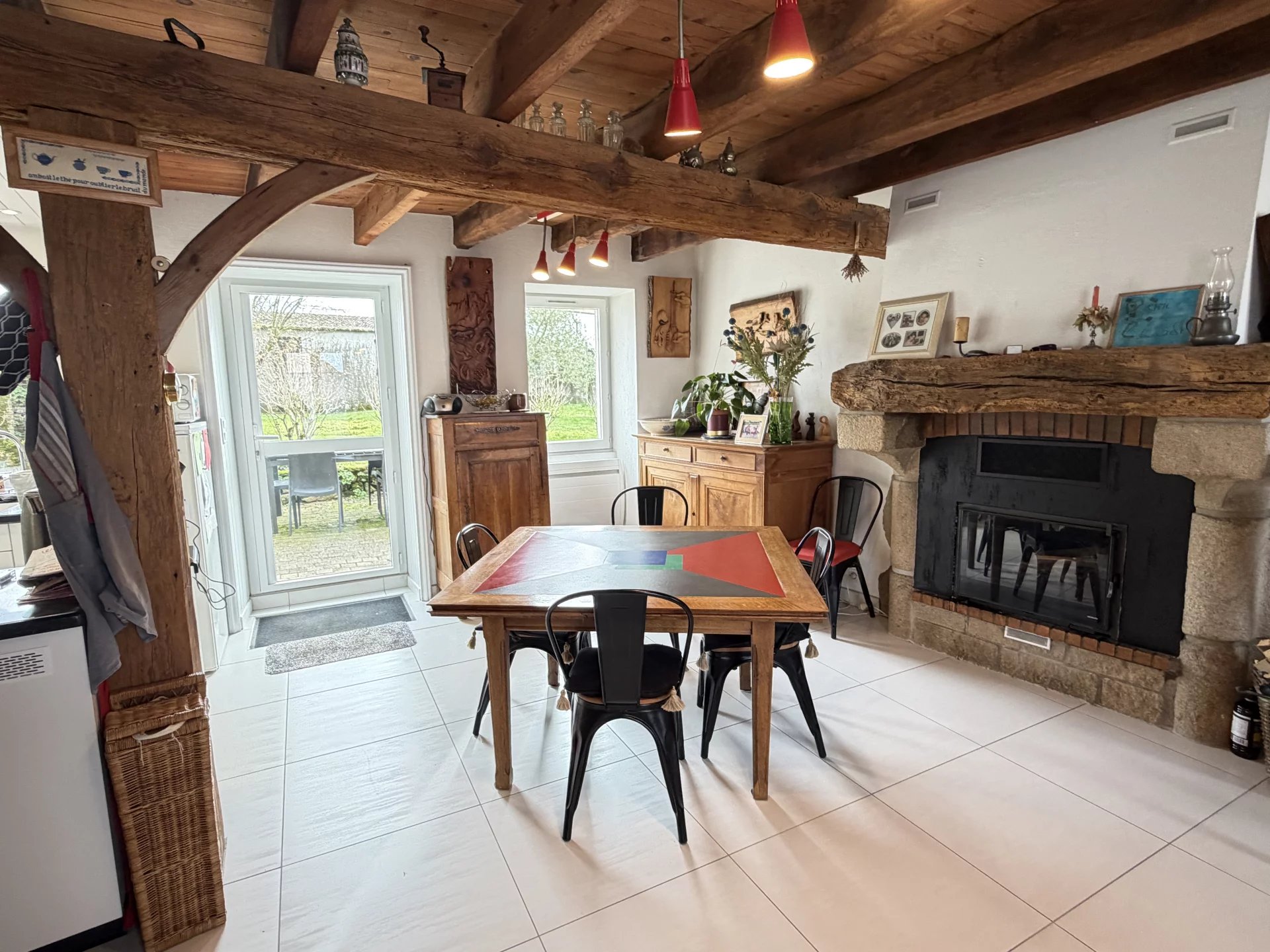 Idéalement située en plein cœur du bourg, chambre intérieur pour cette agréable maison d’environ 105 m² : cuisine aménagée ouverte sur séjour avec cheminée insert et salon intimiste donnant sur jardin, buanderie et toilettes.