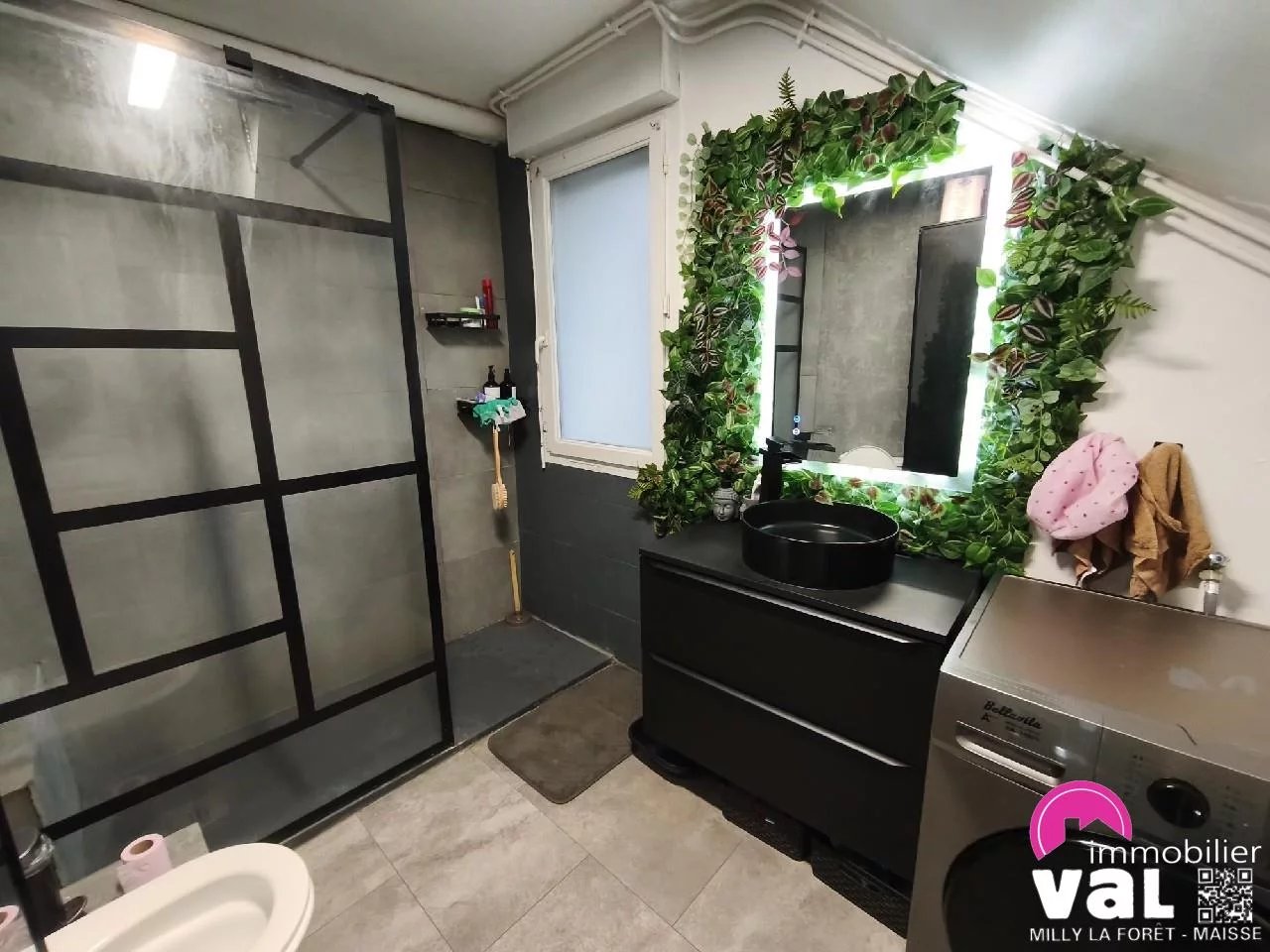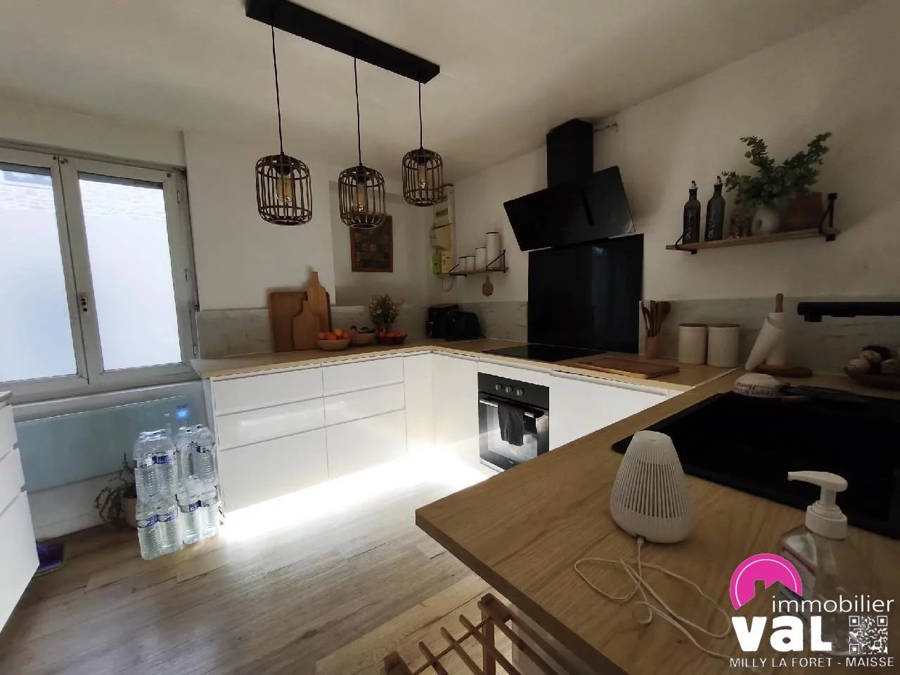 -Rdc : entrée dans cuisine équipée, salle d'eau avec wc.
