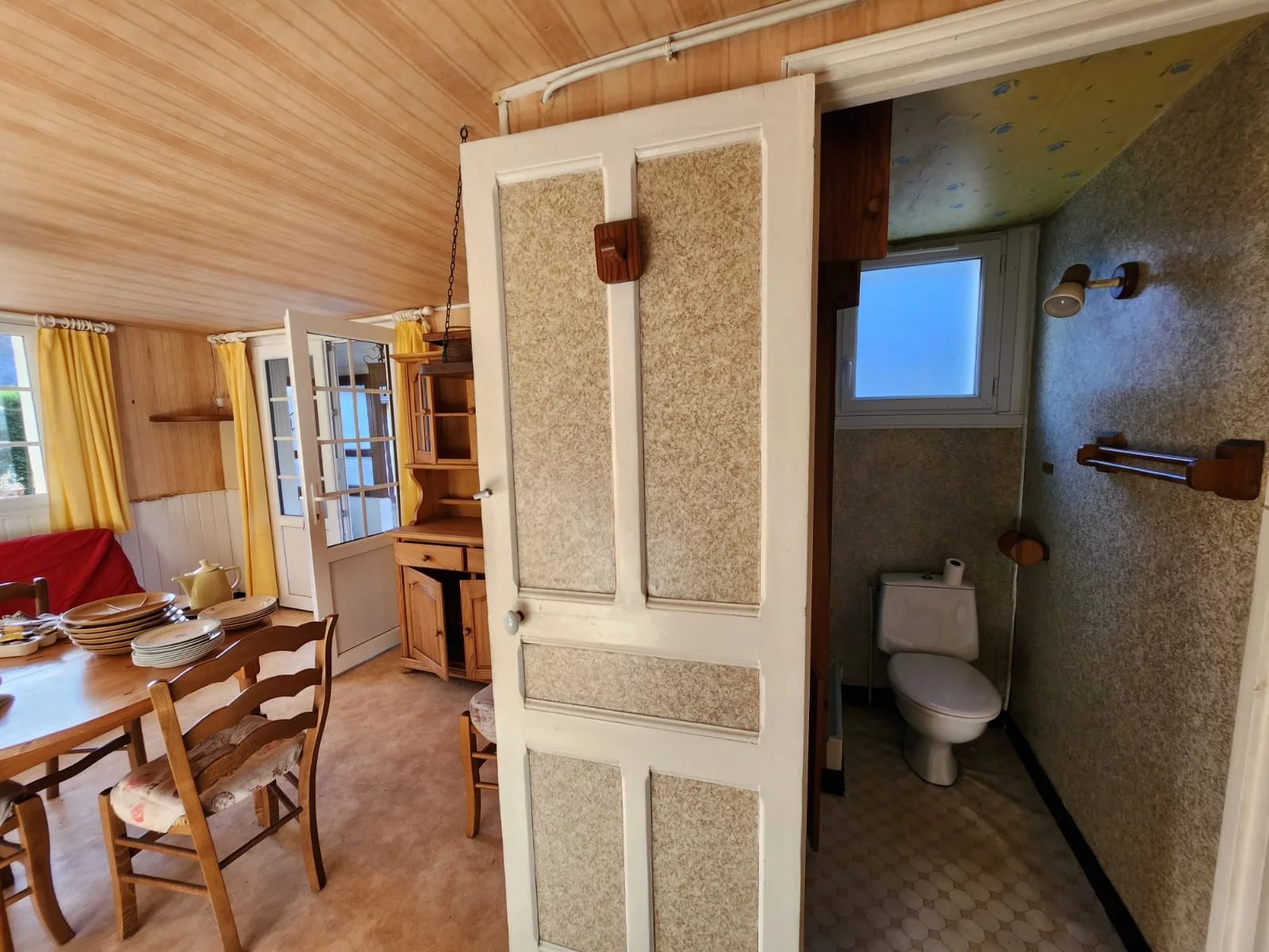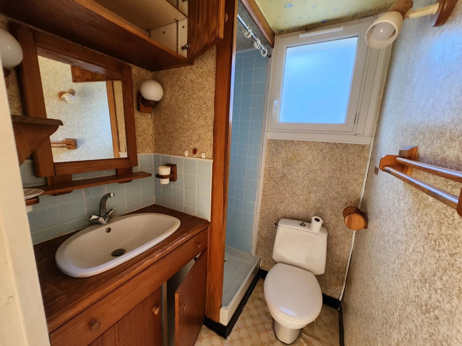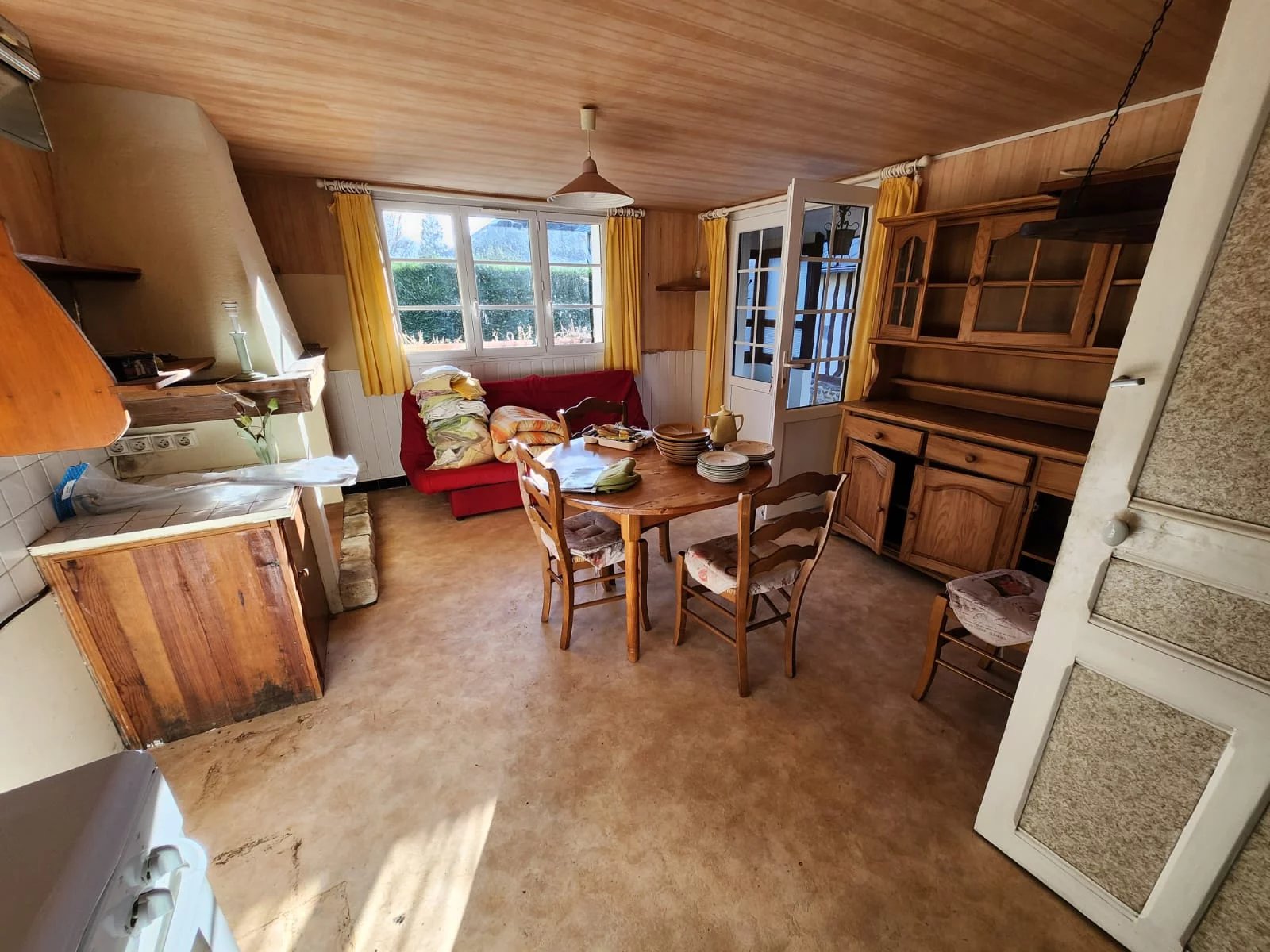 Gite d'environ 30m² comprenant un séjour cuisine, salle de douche avec WC et chambre.