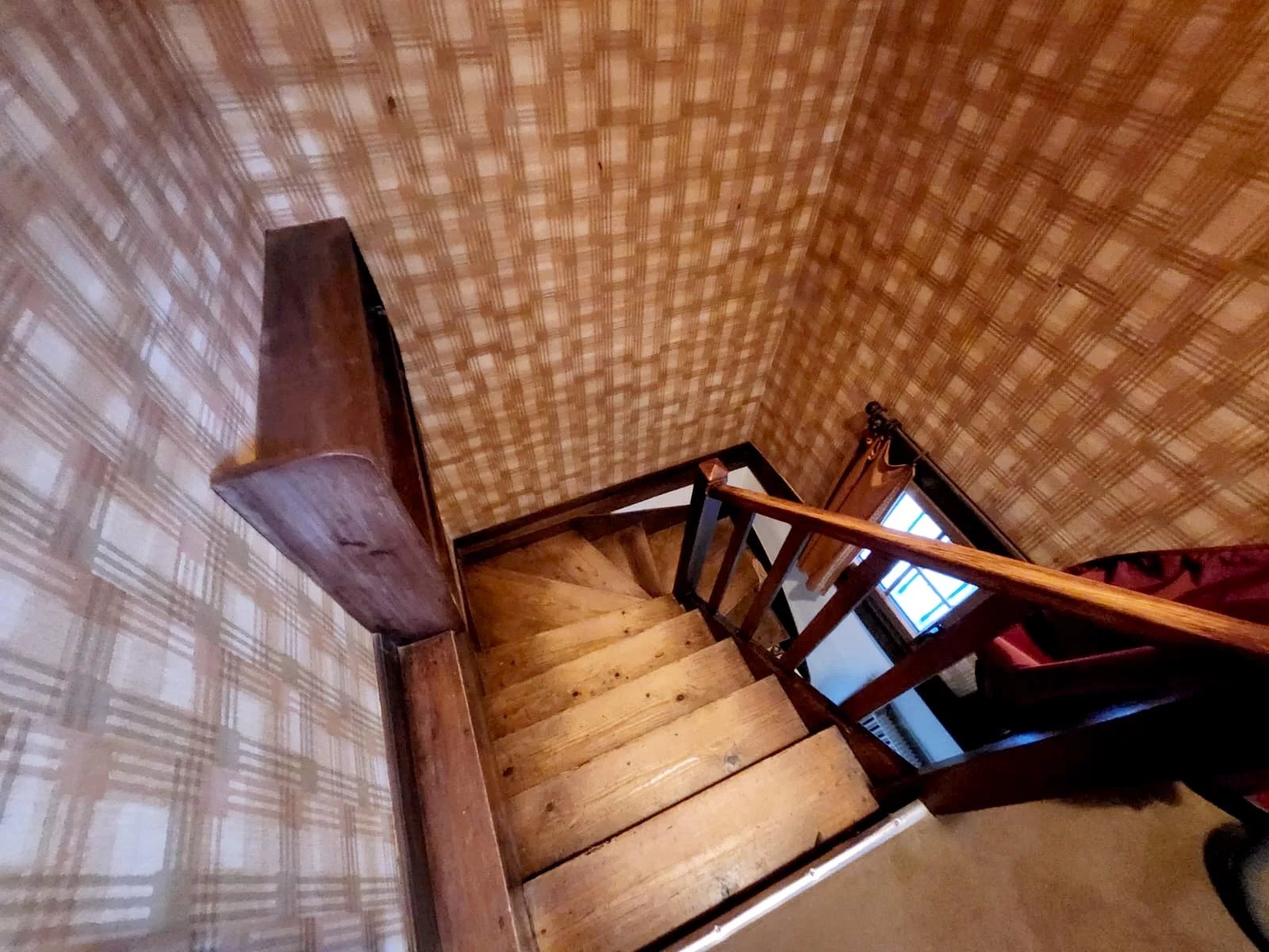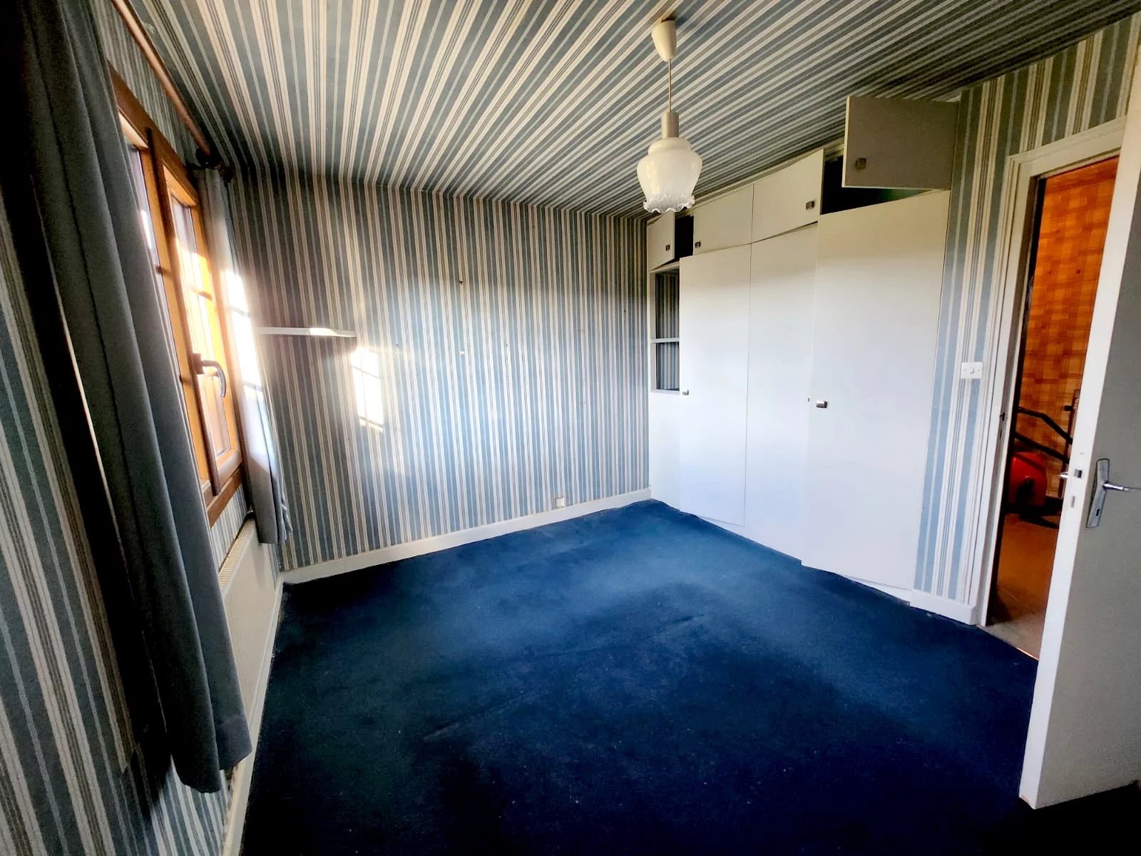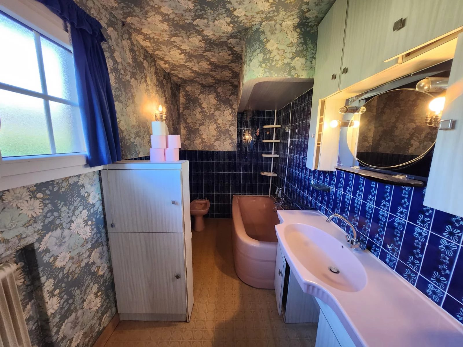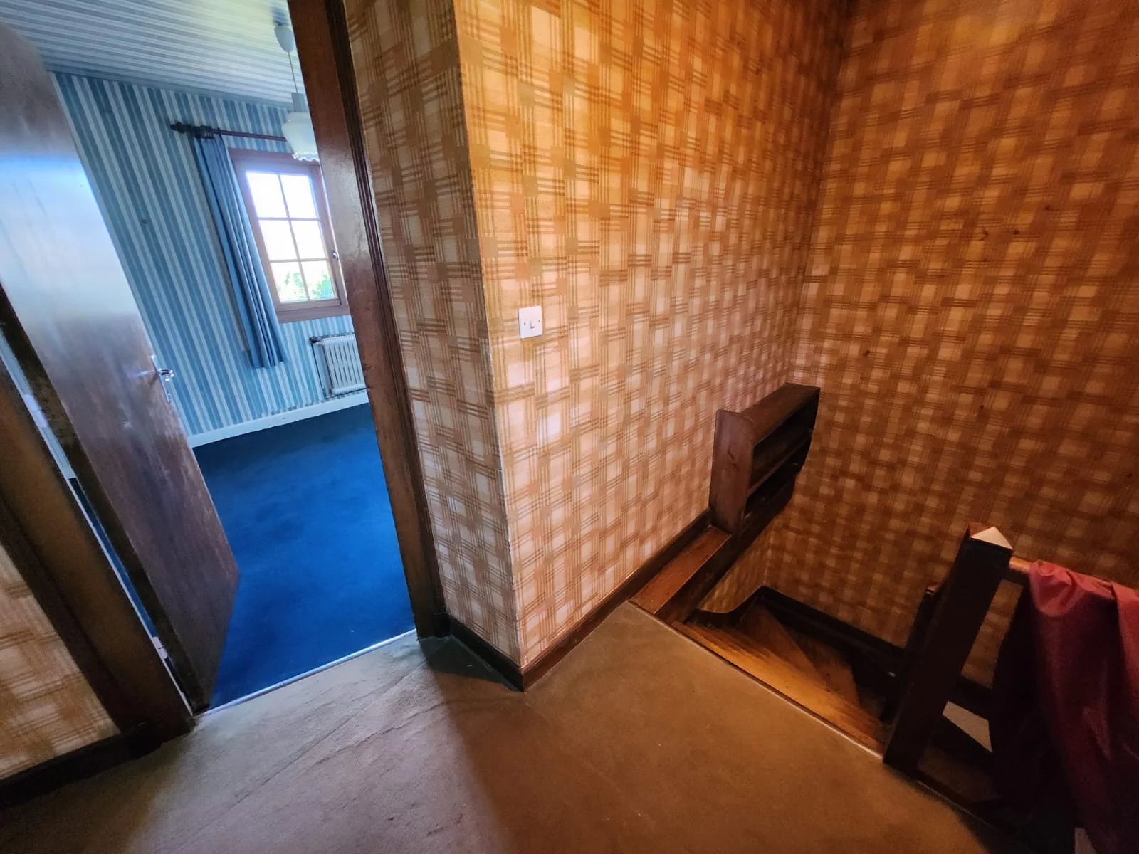 A l'étage: 2 chambres et une salle de bains avec wc.
