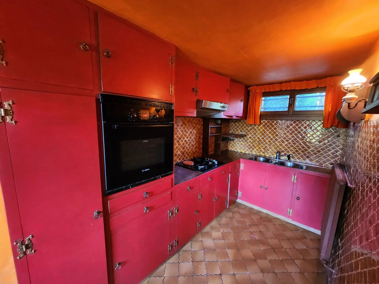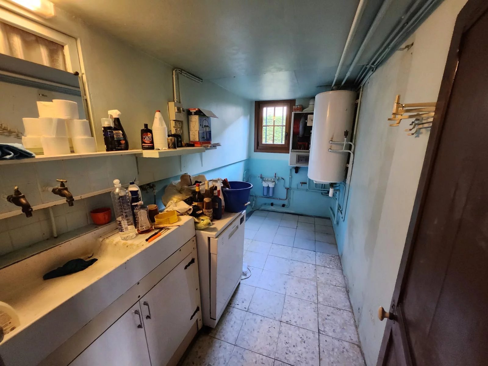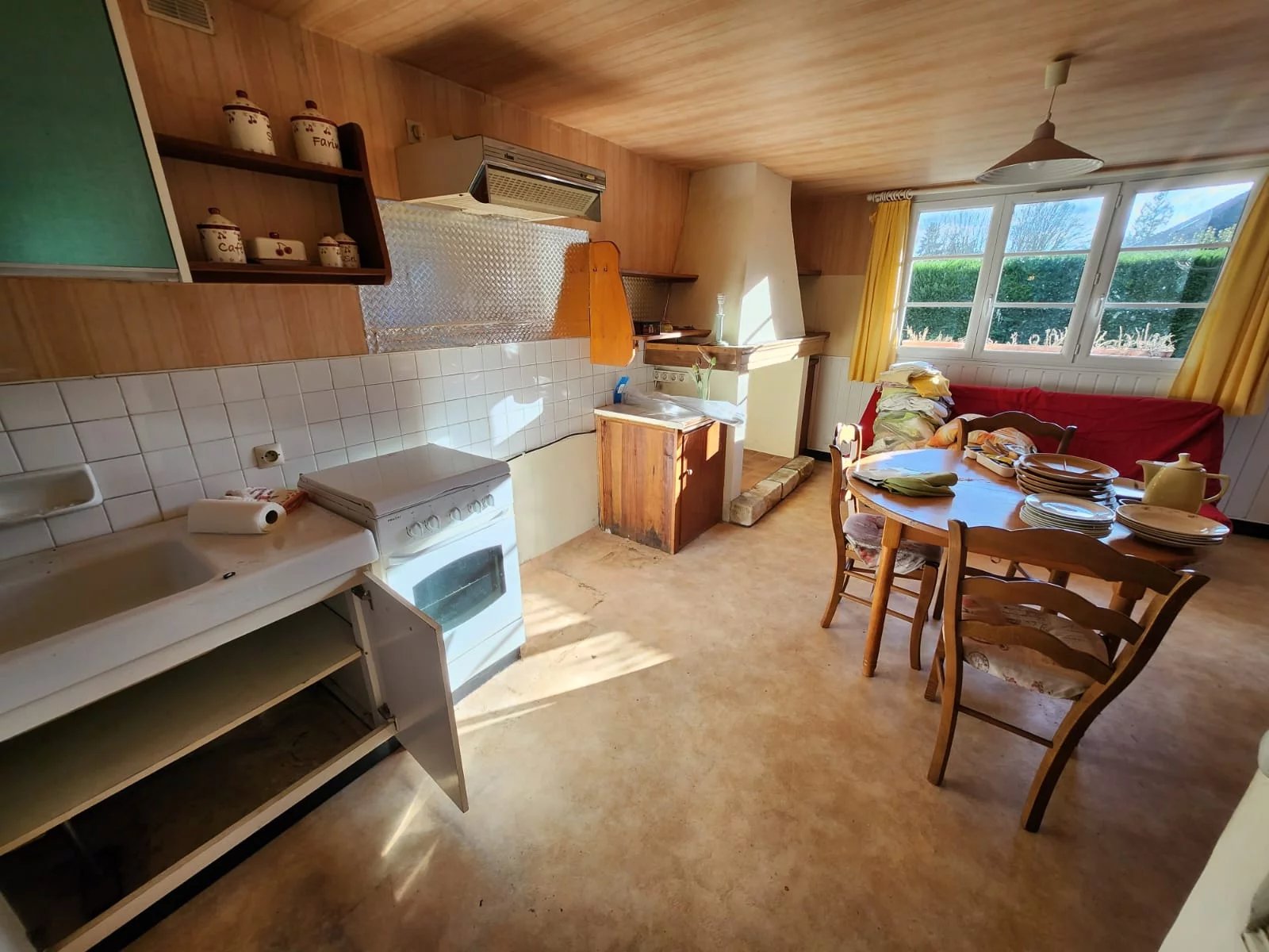 Cuisine, Séjour, salon cheminée (foyer ouvert), buanderie/chaufferie, wc d'invité.