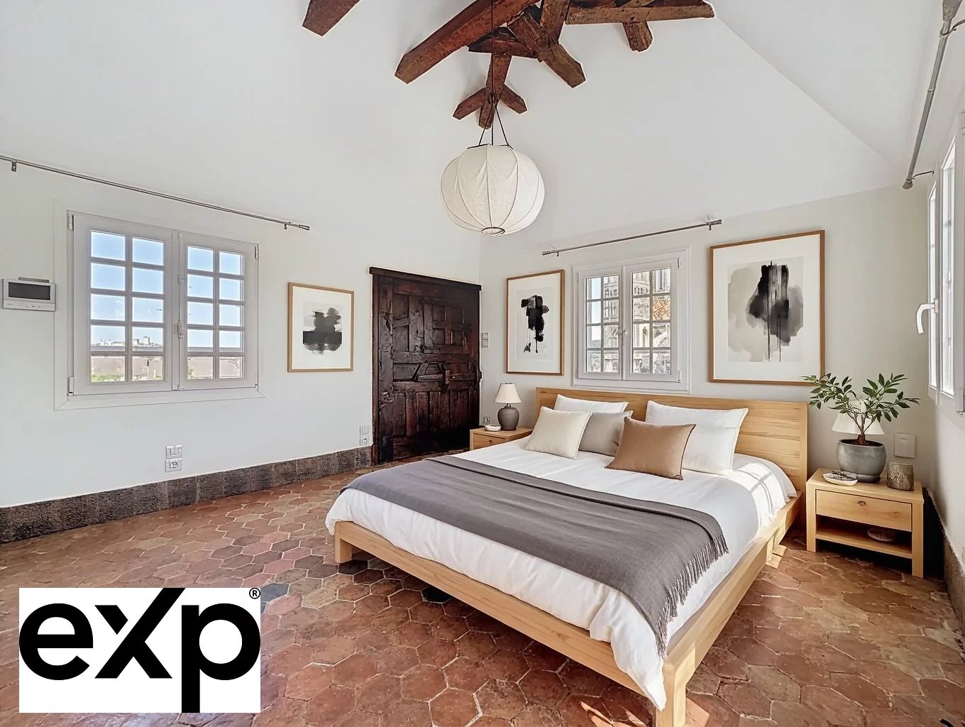 Répartie sur trois niveaux, cette maison unique de près de 190 m² allie volumes généreux, charme de l’ancien et authenticité. Dès l’entrée, les matériaux d’époque séduisent : tomettes, poutres apparentes, et une imposante cheminée dans un salon baigné de lumière.