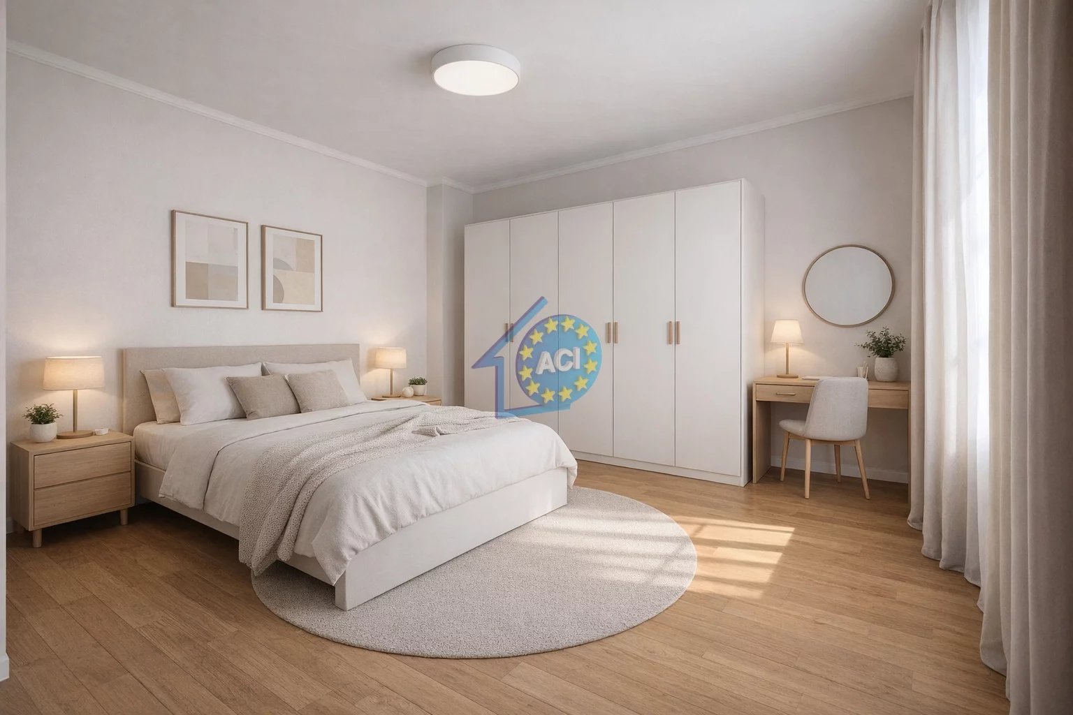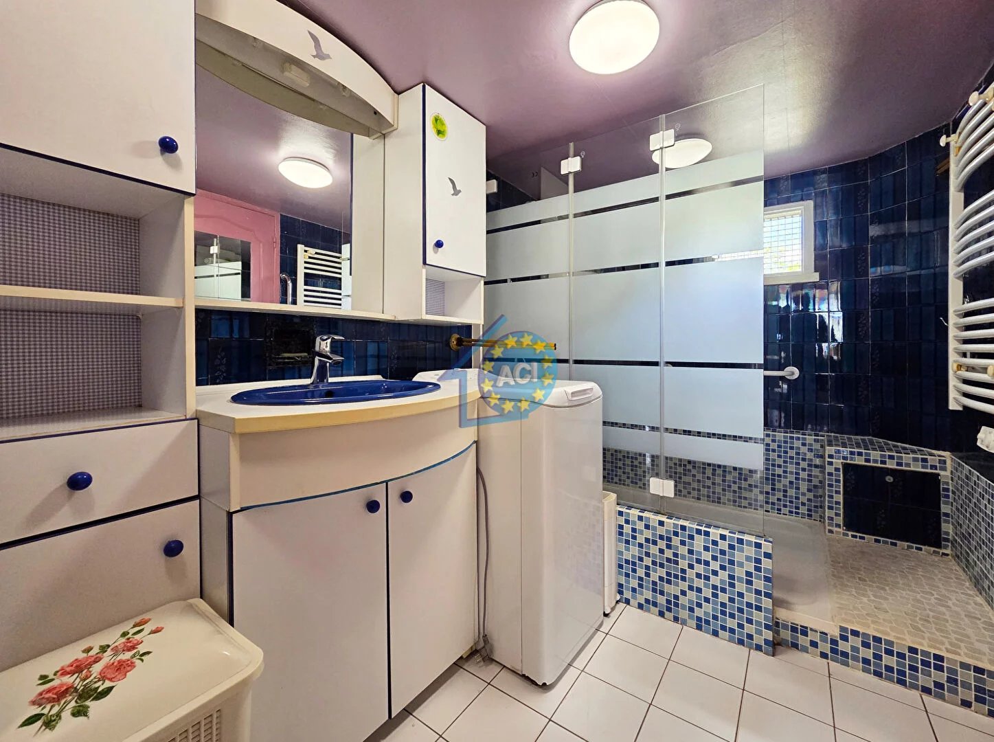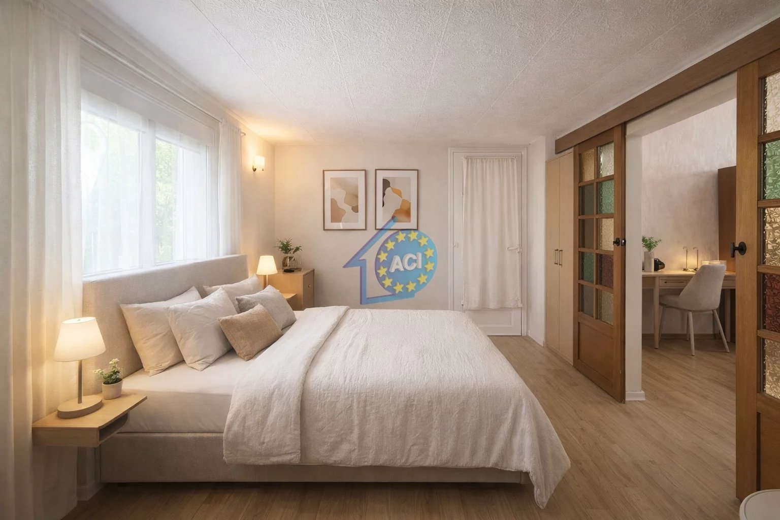 À l'étage, un palier dessert une chambre ainsi qu'un bureau pouvant faire office de chambre palière, avec rangements intégrés.
