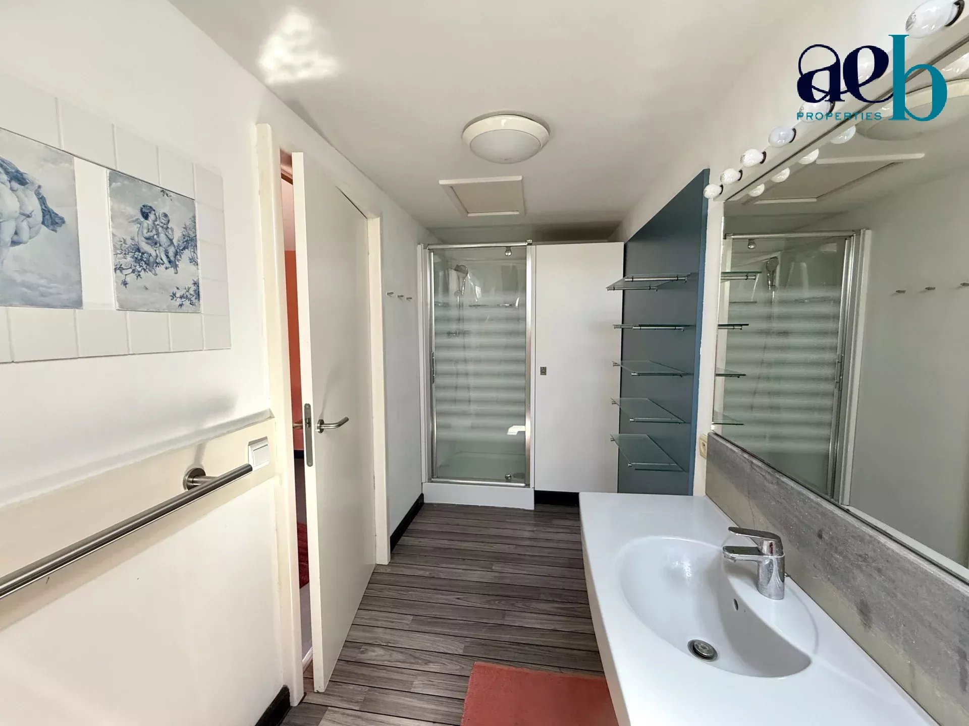 L’espace de vie traversant de plus de 55m² s’ouvre sur une vaste terrasse exposée plein sud avec bassin d’agrément. Il se compose d’un salon, d’une salle à manger et d’une cuisine semi-équipée. L’espace nuit comprend deux grandes chambres de plus de 27m², toutes deux ouvertes sur l’extérieur : l’une dispose d’un dressing et d’une salle d’eau avec WC, l’autre d’un point d’eau et de WC. Une salle de bains avec balnéothérapie, un cellier, une buanderie et des WC indépendants complètent ce niveau.