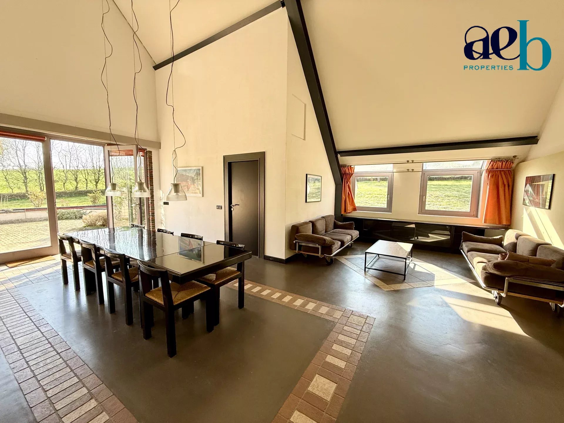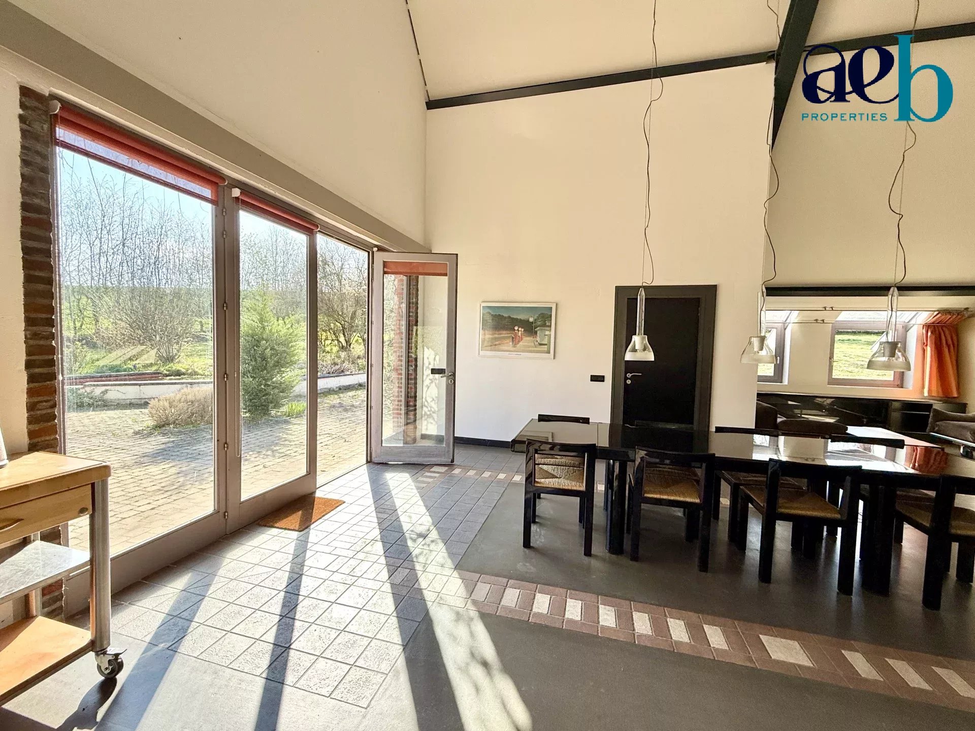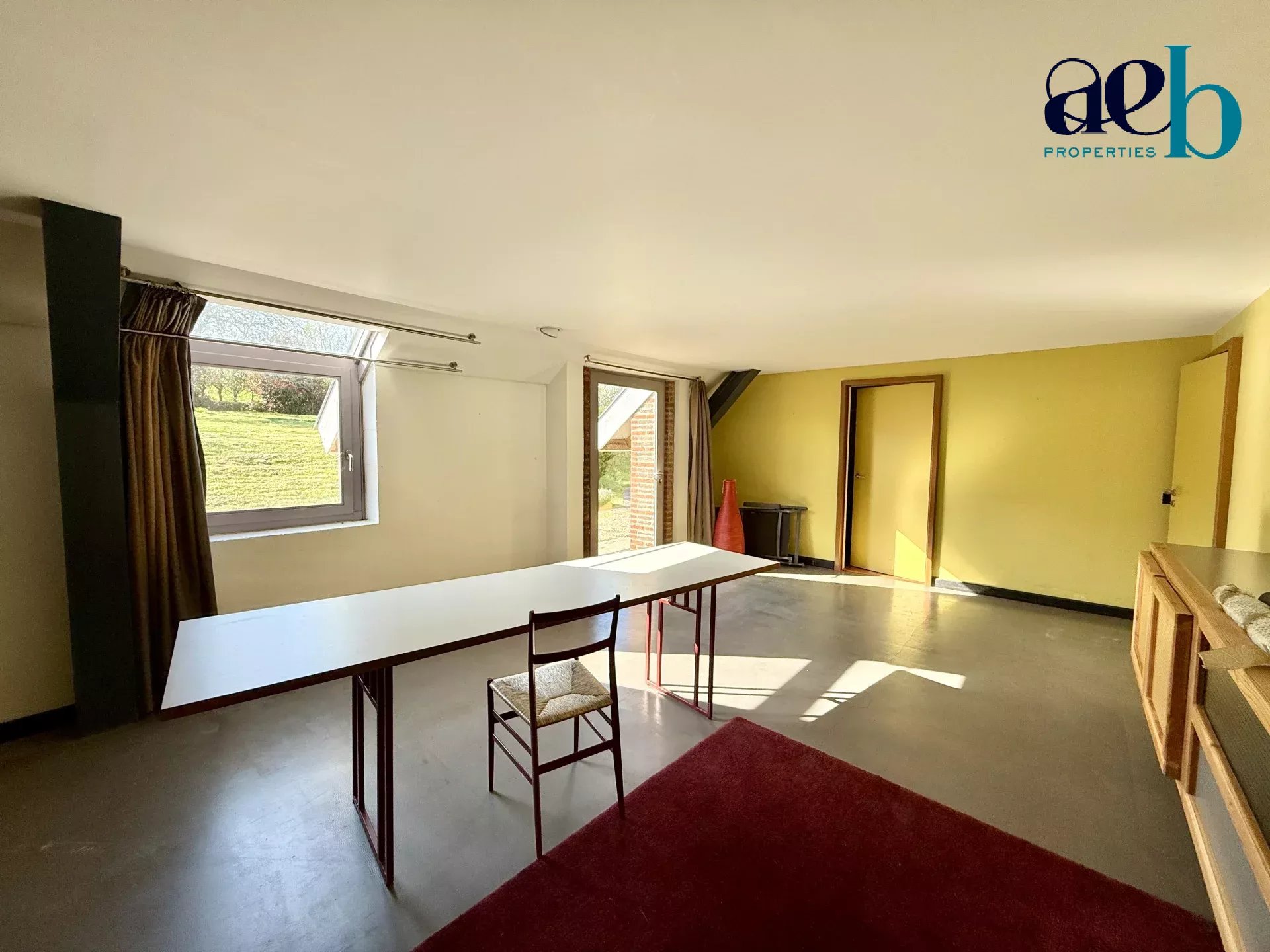 Édifiée sur un terrain paysagé de plus de 5 000 m², la propriété séduit par ses volumes remarquables, avec des hauteurs sous plafond atteignant plus de 7m, une belle luminosité et une vue panoramique sur les paysages vallonnés environnants.