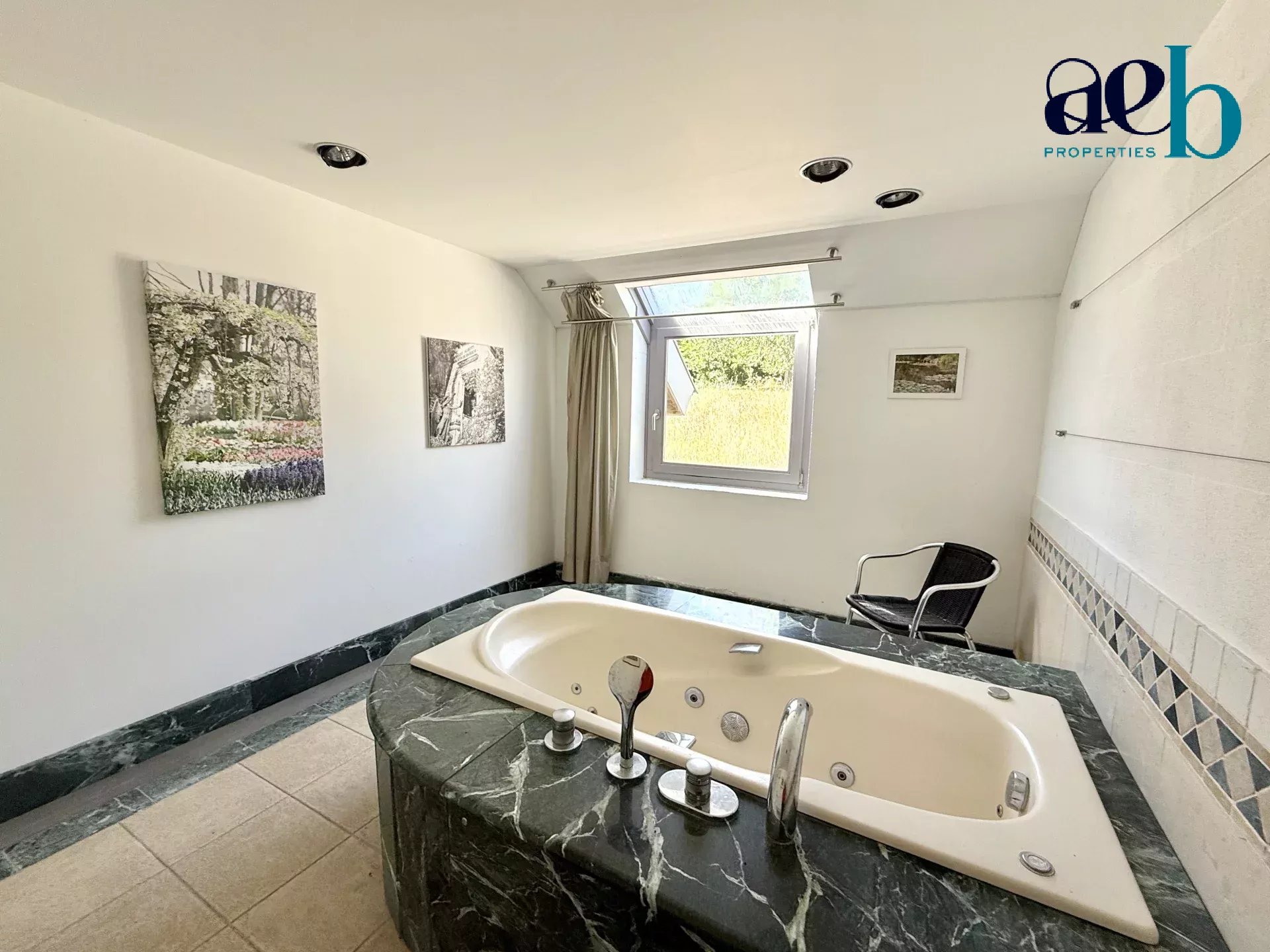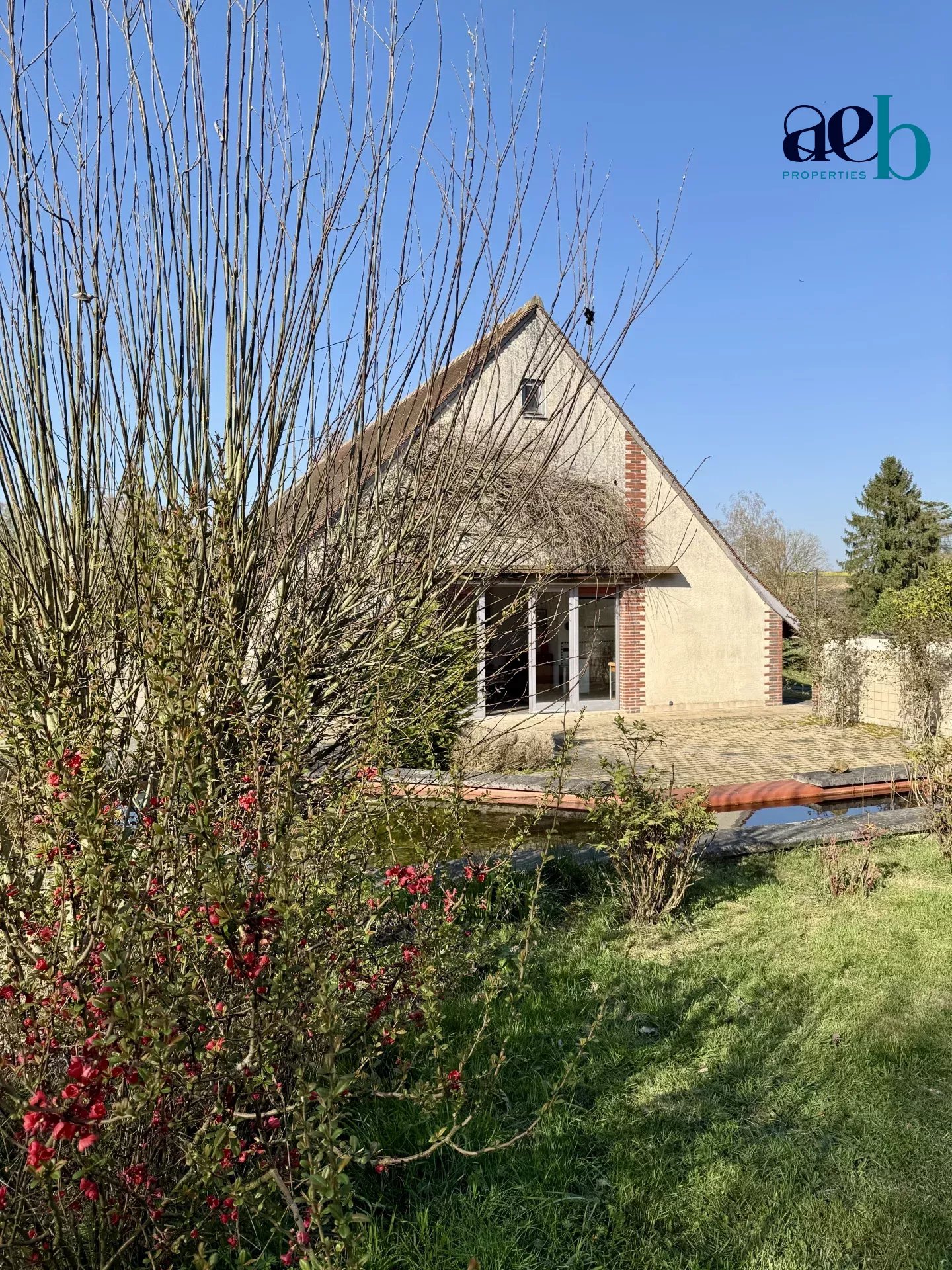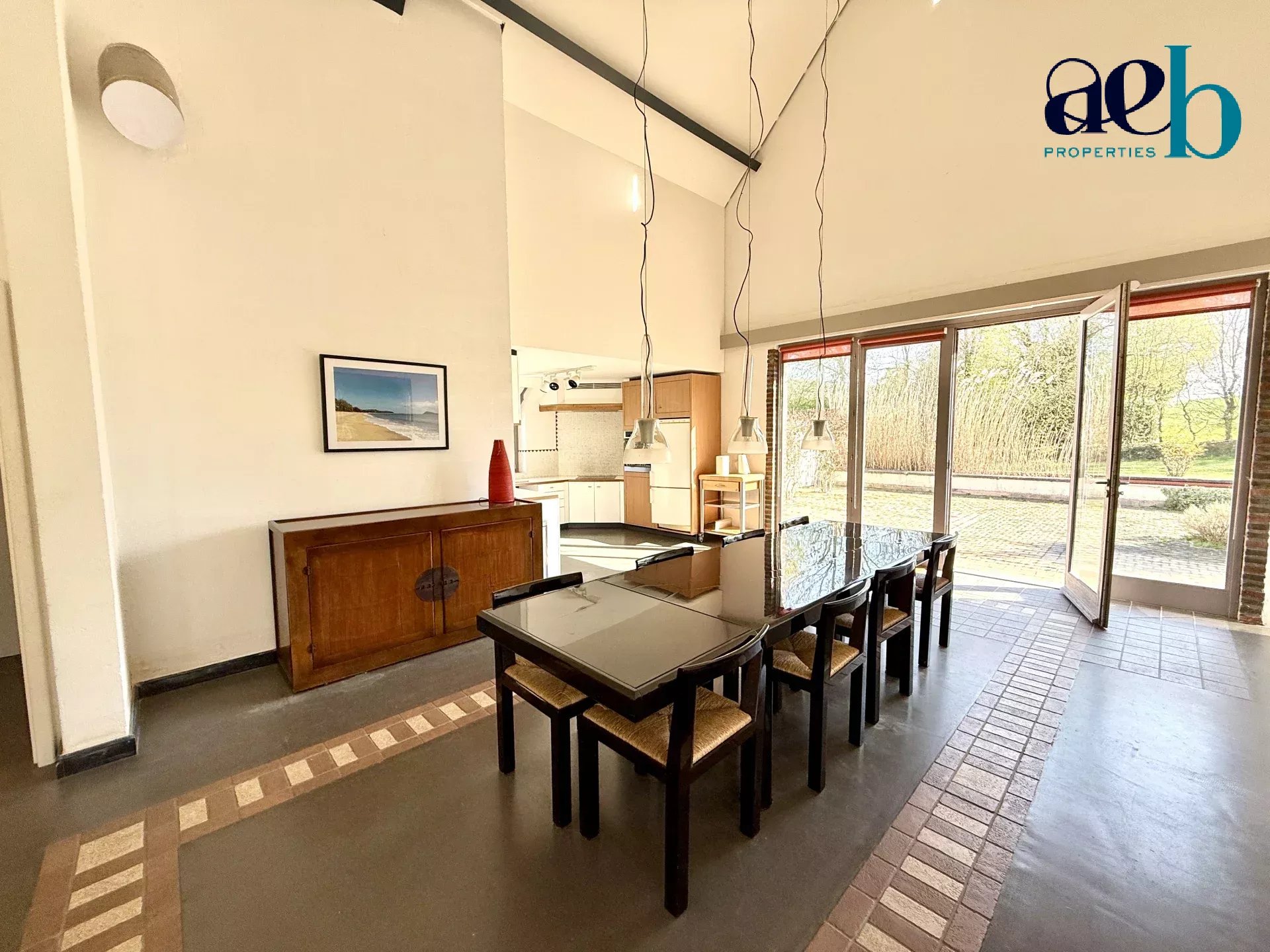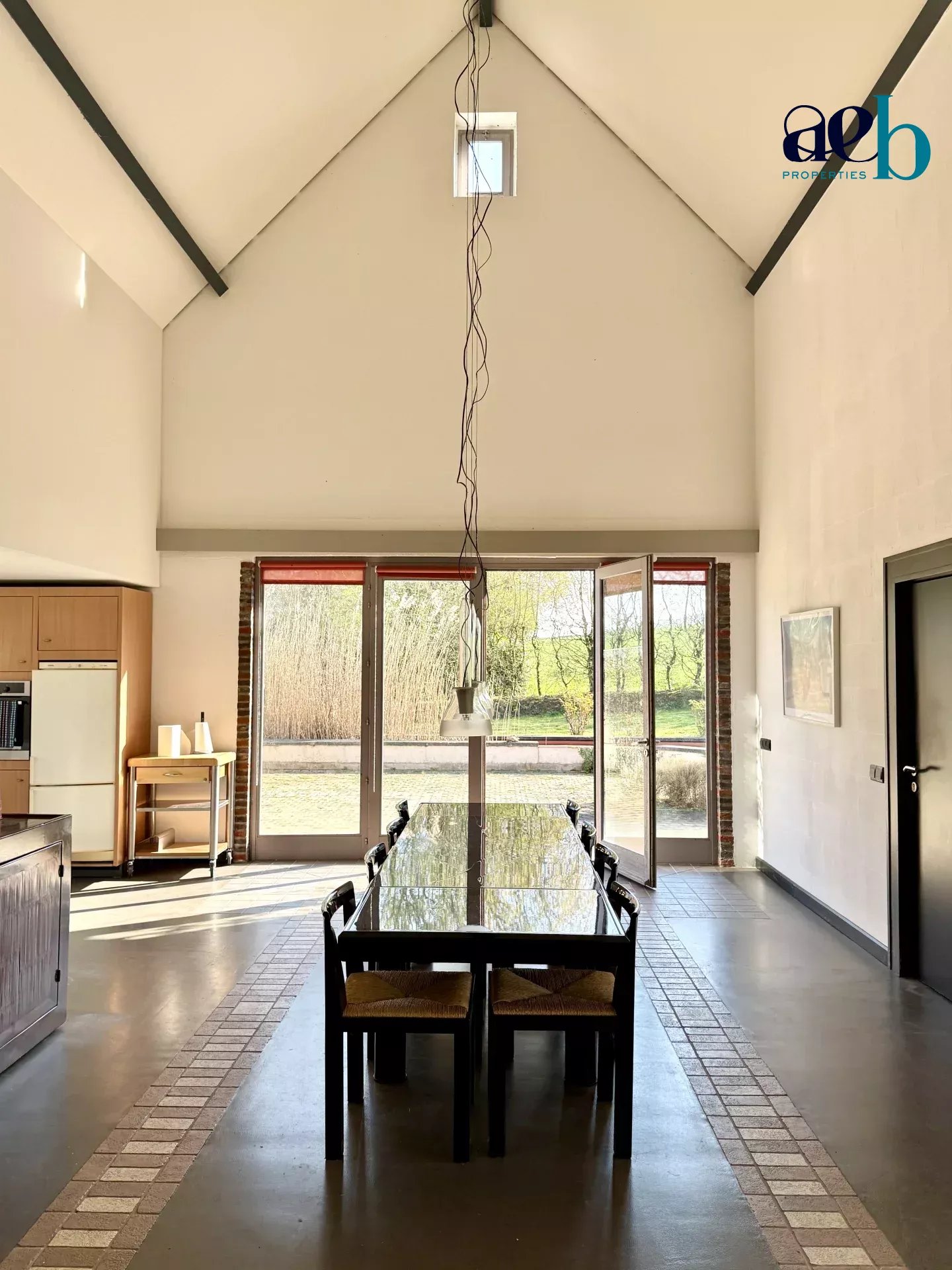 Édifiée sur un terrain paysagé de plus de 5 000 m², la propriété séduit par ses volumes remarquables, avec des hauteurs sous plafond atteignant plus de 7m, une belle luminosité et une vue panoramique sur les paysages vallonnés environnants.