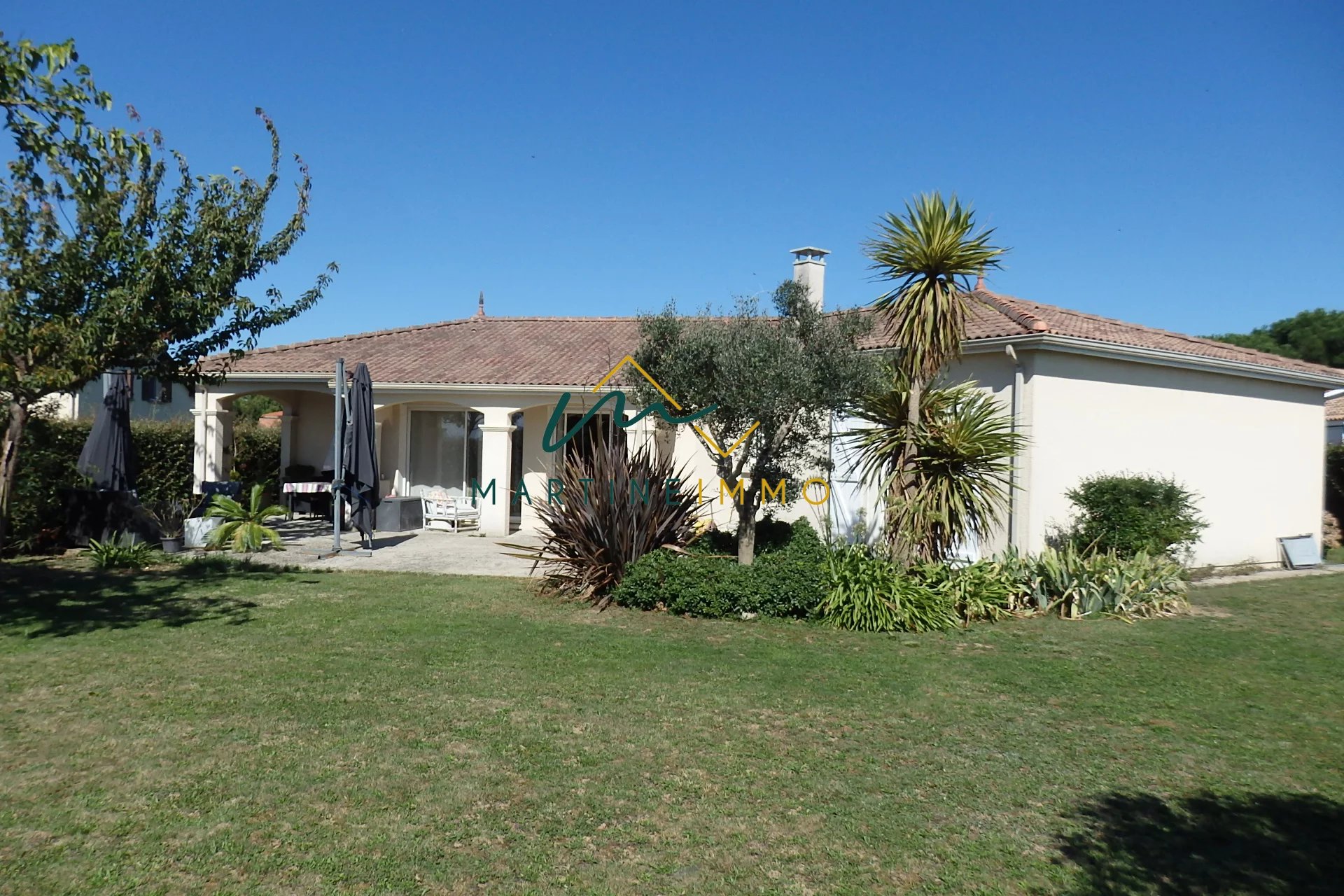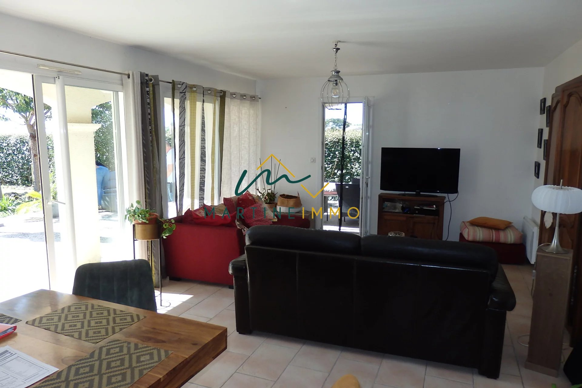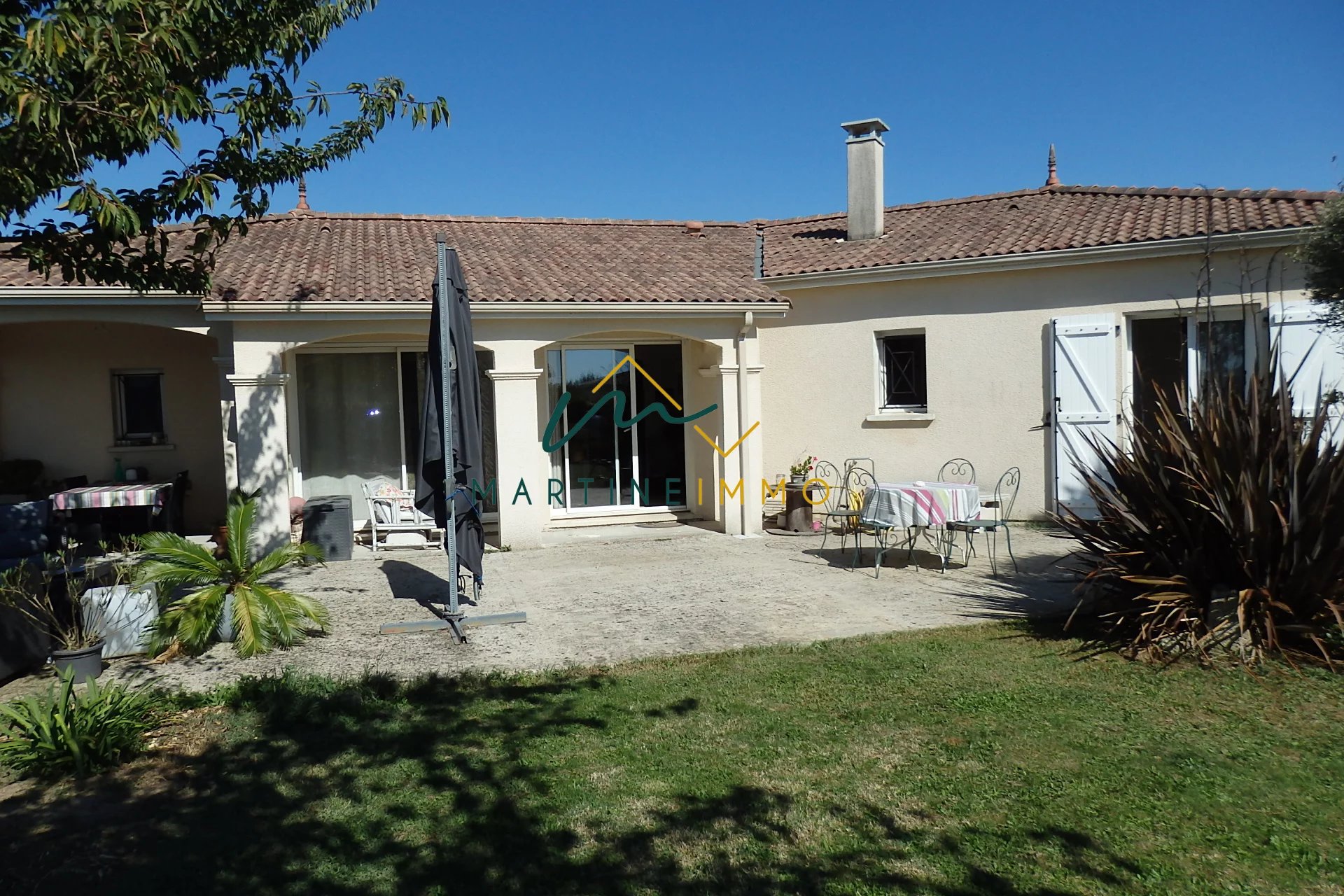 Dans un environnement calme et sans vis à vis, l'agence Martine-immo vous propose cette maison de plain pied de 2008 composée de trois chambres, un grand séjour très lumineux, salle de bain, wc séparé, cuisine équipée et trois garages dont deux indépendants. Sans travaux avec double vitrage, combles isolés, aspiration centralisé et classe énergétique en C. N'hésitez pas à nous contacter pour organiser une visite. Honoraire charge vendeur.
