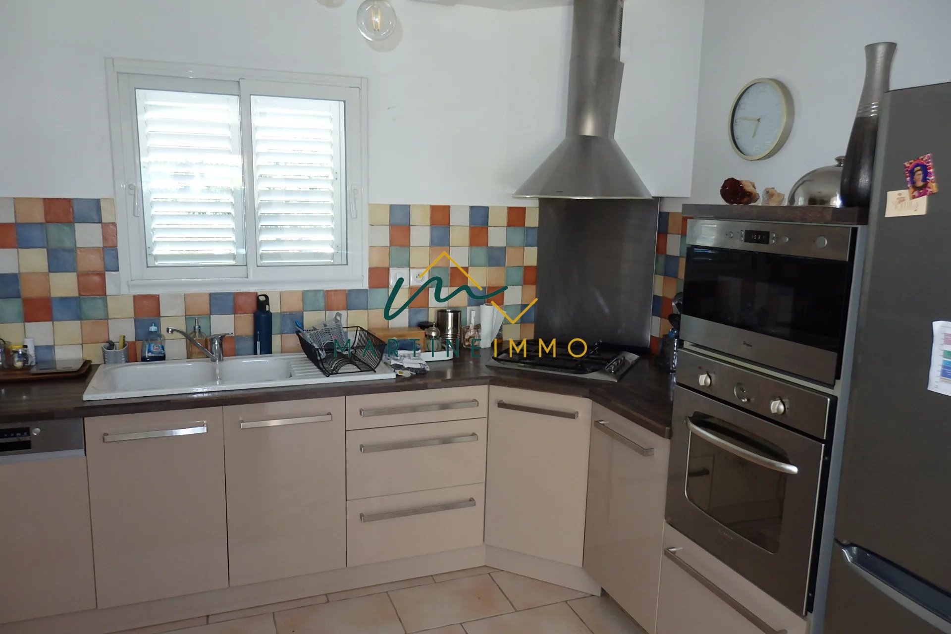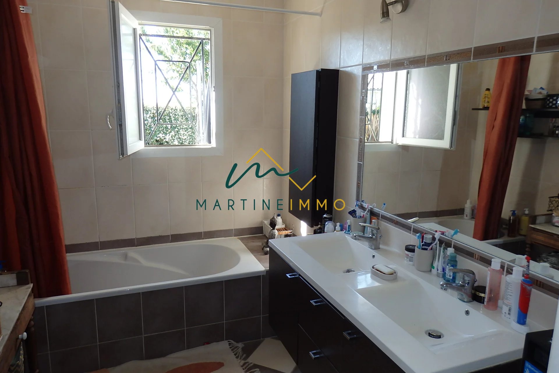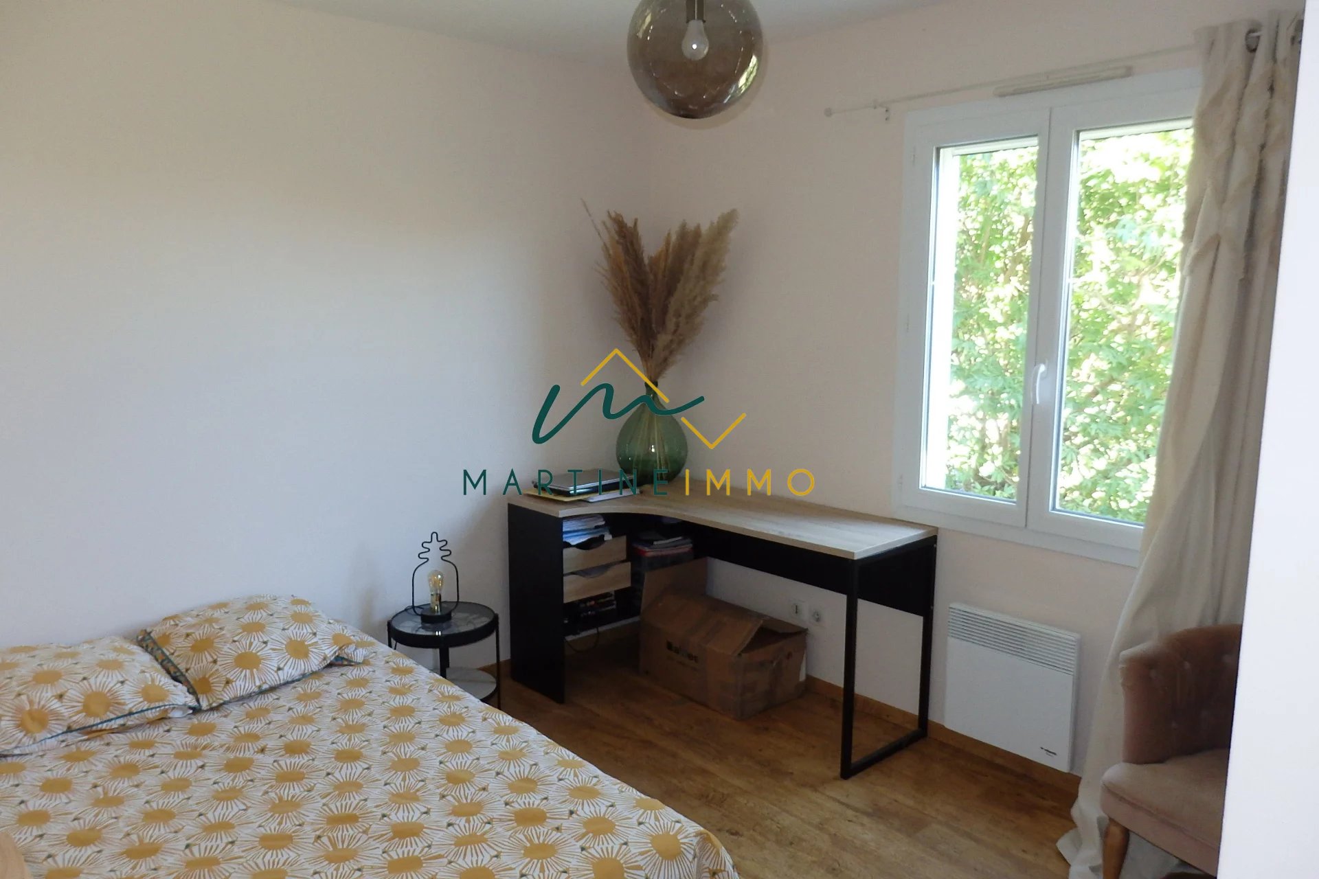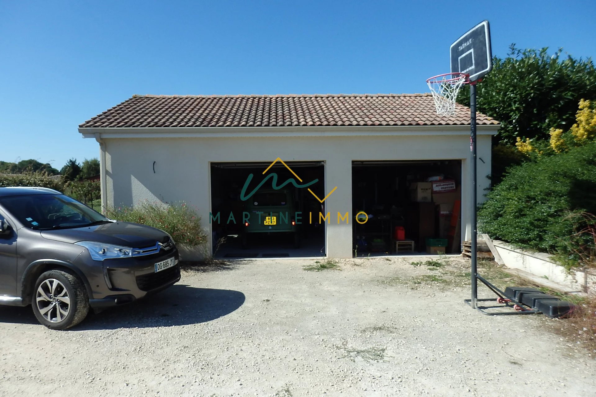 Dans un environnement calme et sans vis à vis, l'agence Martine-immo vous propose cette maison de plain pied de 2008 composée de trois chambres, un grand séjour très lumineux, salle de bain, wc séparé, cuisine équipée et trois garages dont deux indépendants. Sans travaux avec double vitrage, combles isolés, aspiration centralisé et classe énergétique en C. N'hésitez pas à nous contacter pour organiser une visite. Honoraire charge vendeur.