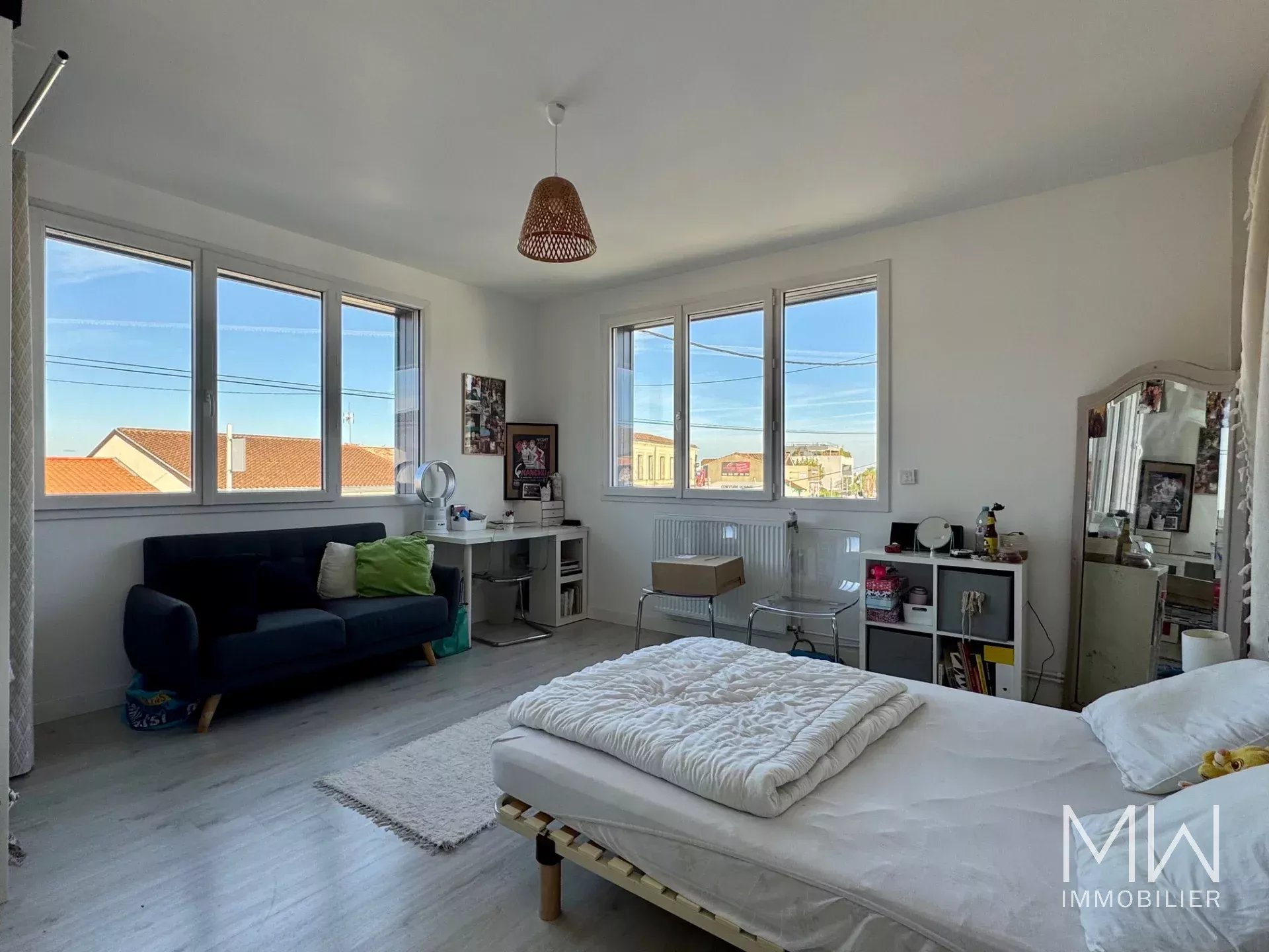 MERIGNAC Le Grand Louis - Cette maison familiale rénovée récemment, d'une superficie habitable de 158 m², offre de beaux volumes et des prestations de qualité. Elle est composée d'une entrée sur une belle pièce de vie lumineuse de plus de 40 m², une cuisine entièrement équipée, un coin nuit en rez-de-chaussée comprenant une chambre avec sa salle de bains, un dressing, une buanderie et un wc. A l'étage, 4 chambres, un grand dressing, une salle d'eau et des wc.