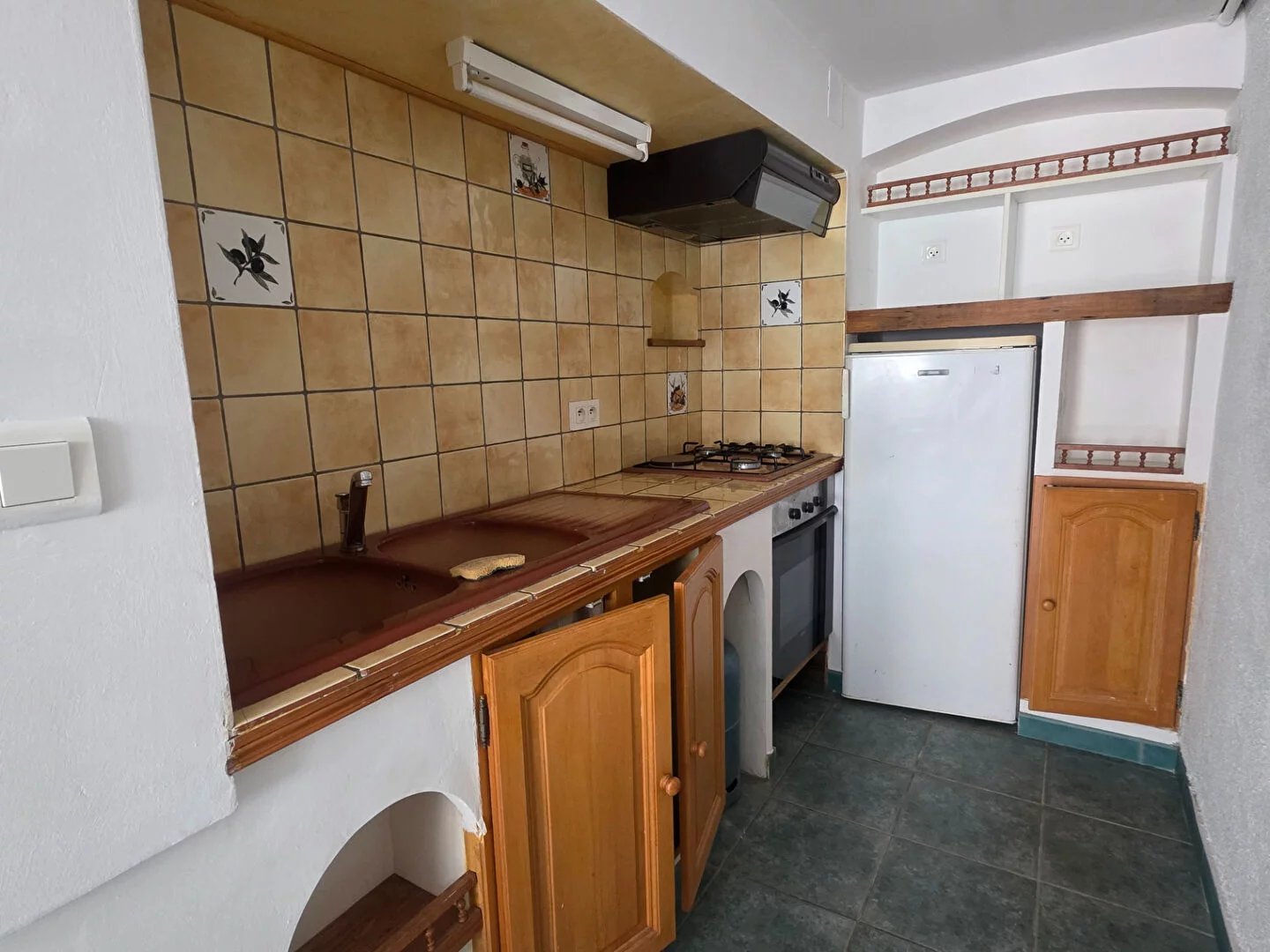 Côté habitable : un appartement en rez de jardin avec une pièce de vie, coin cuisine, une salle d'eau, toilette et une chambre