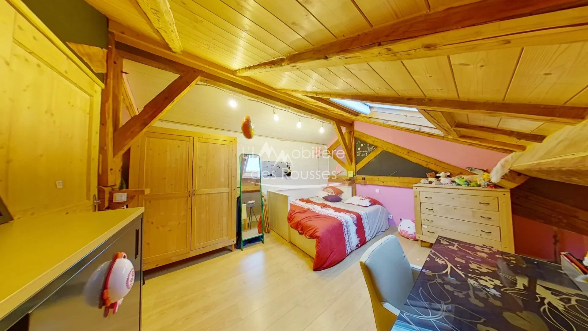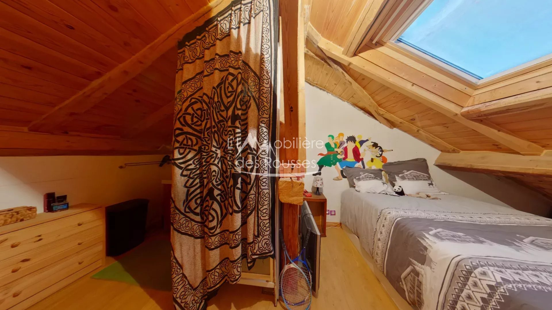 2ème étage : mezzanine, 2 chambres mansardées dont 1 avec coin douche et un toilette séparé.