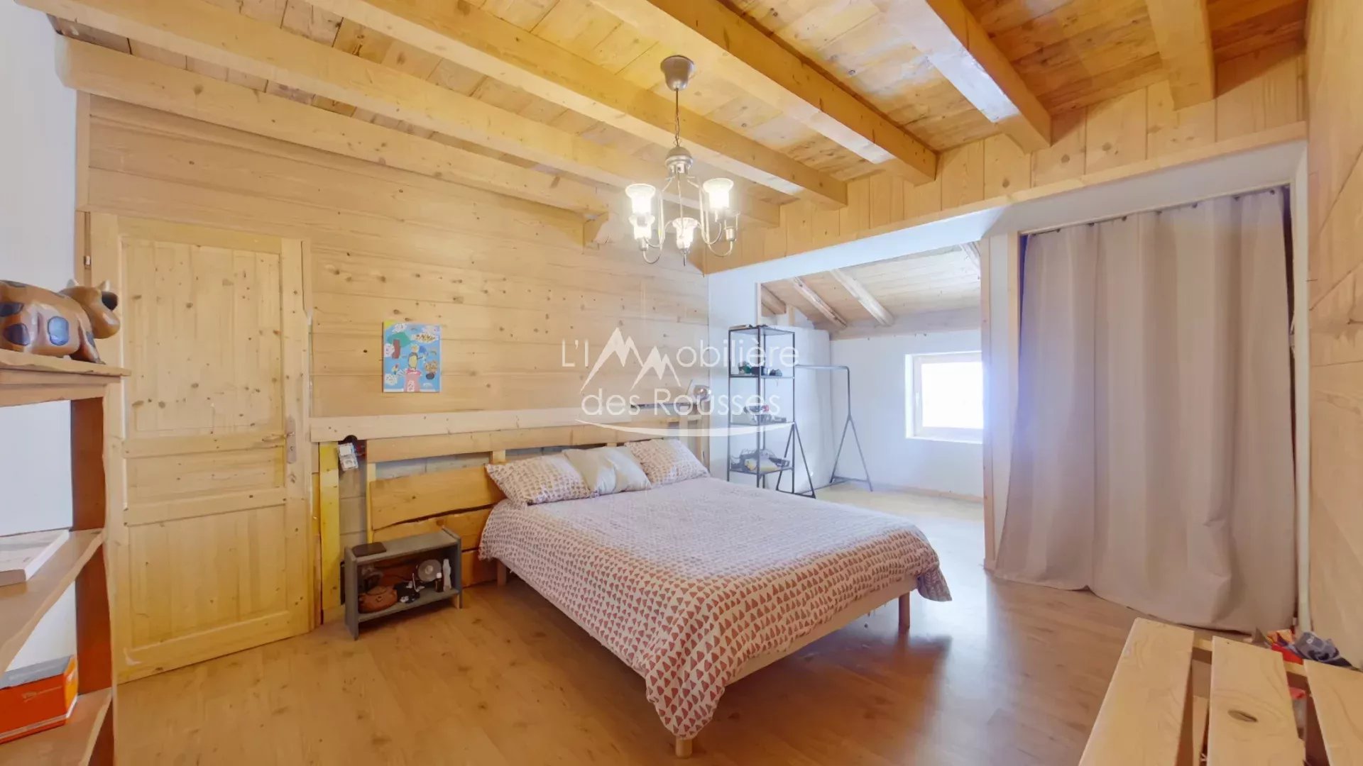 1er étage : une cuisine ouverte sur une grande pièce de vie, un cellier, une chambre, un couloir qui dessert un toilette séparé, une salle de bain, et une grande chambre avec coin dressing et accès terrasse.