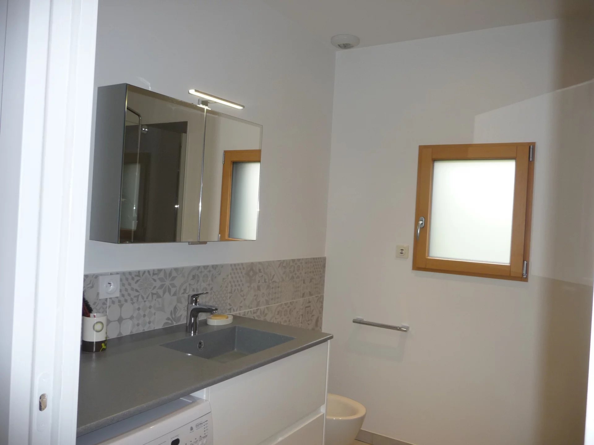 Elle offre une pièce de vie lumineuse avec cuisine équipée ouverte, une salle d'eau contemporaine avec douche grand format, toilettes indépendantes, ainsi qu'un agencement fonctionnel et optimisé.
