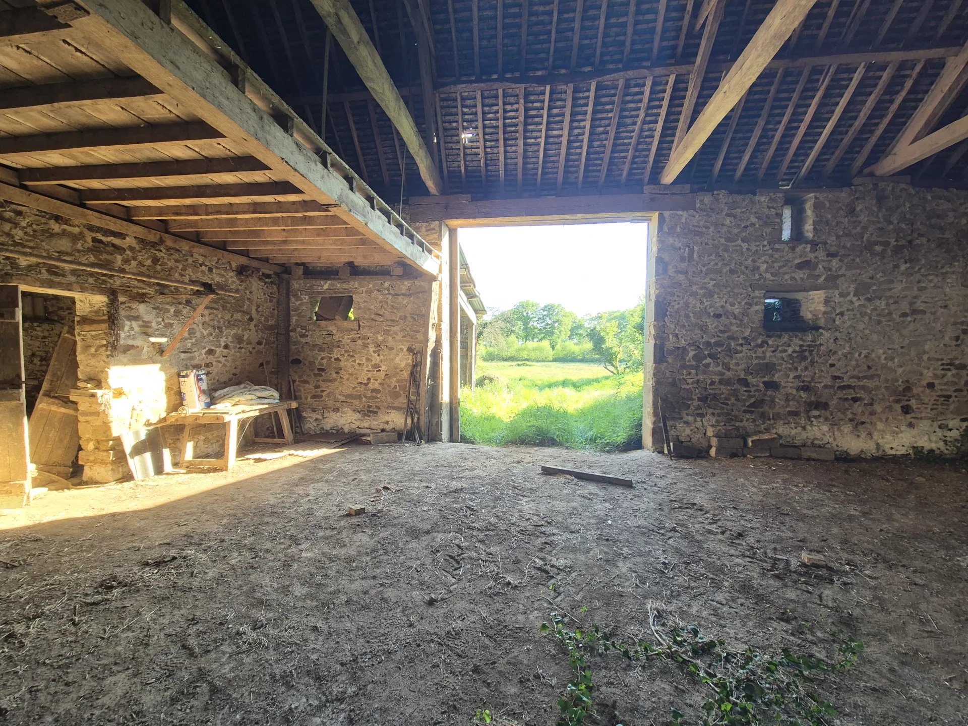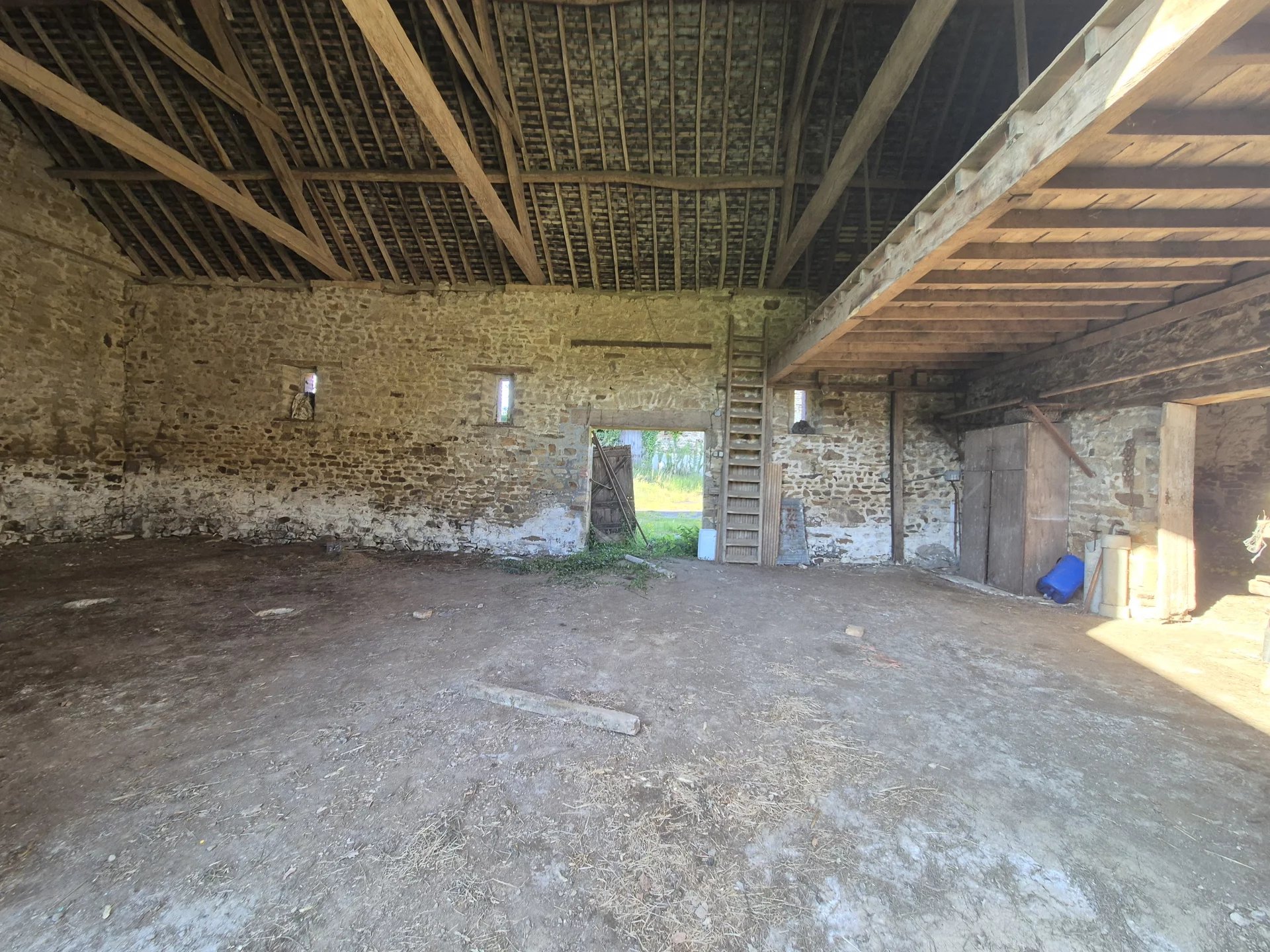 une grande pièce de 83 m2 + un atelier de 20 m2 + 2 dépendances de 32 et de 26 m2