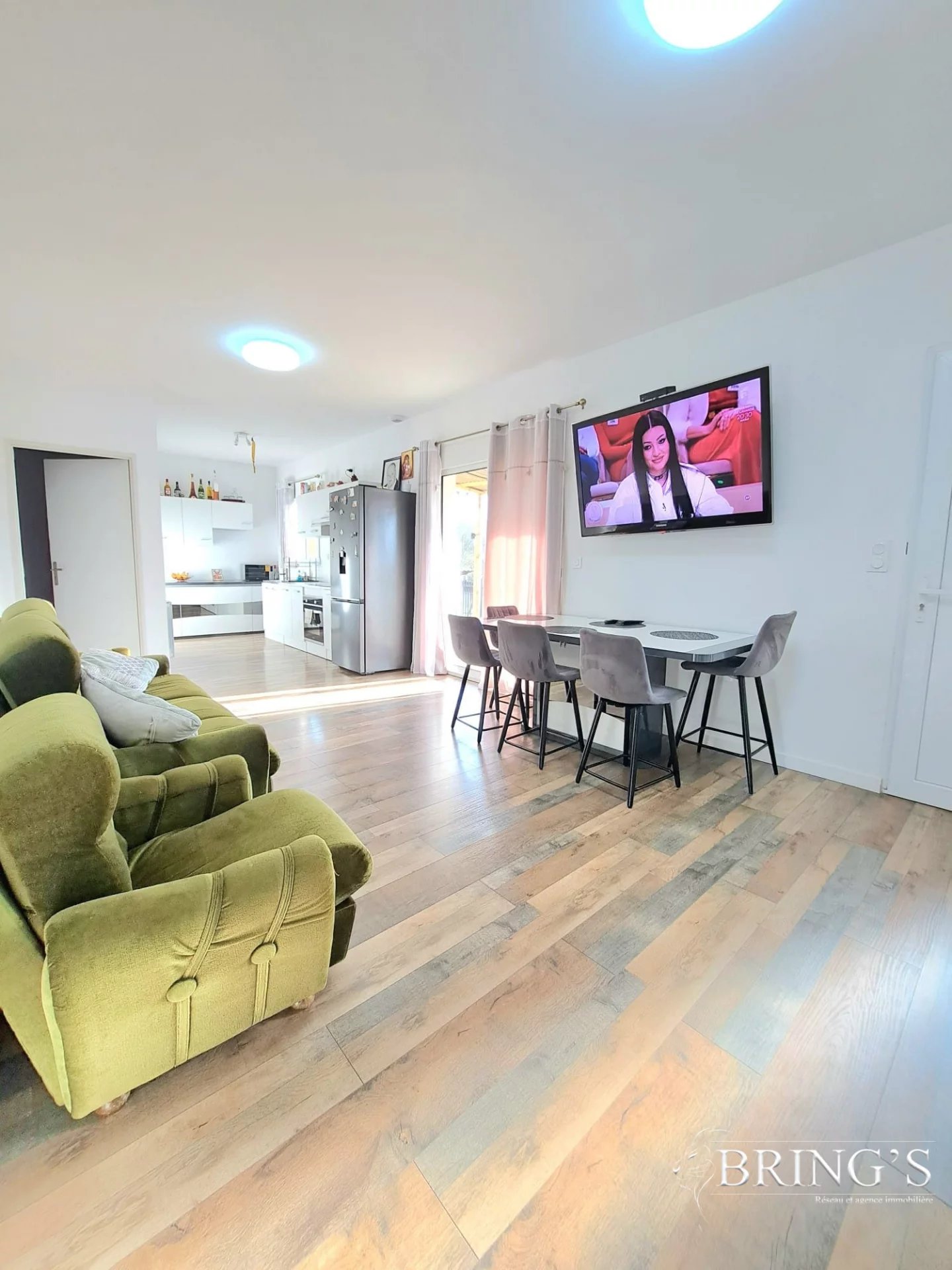 Salon lumineux avec cuisine ouverte entièrement équipée,