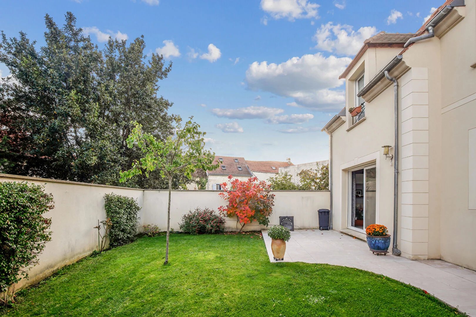 Le jardin paysager, soigneusement entretenu, offre un havre de paix à l'abri des regards, en toute intimité, propice aux moments de convivialité comme aux instants de détente. Ses massifs soignés et sa pelouse verdoyante composent un environnement harmonieux où il fait bon vivre.
