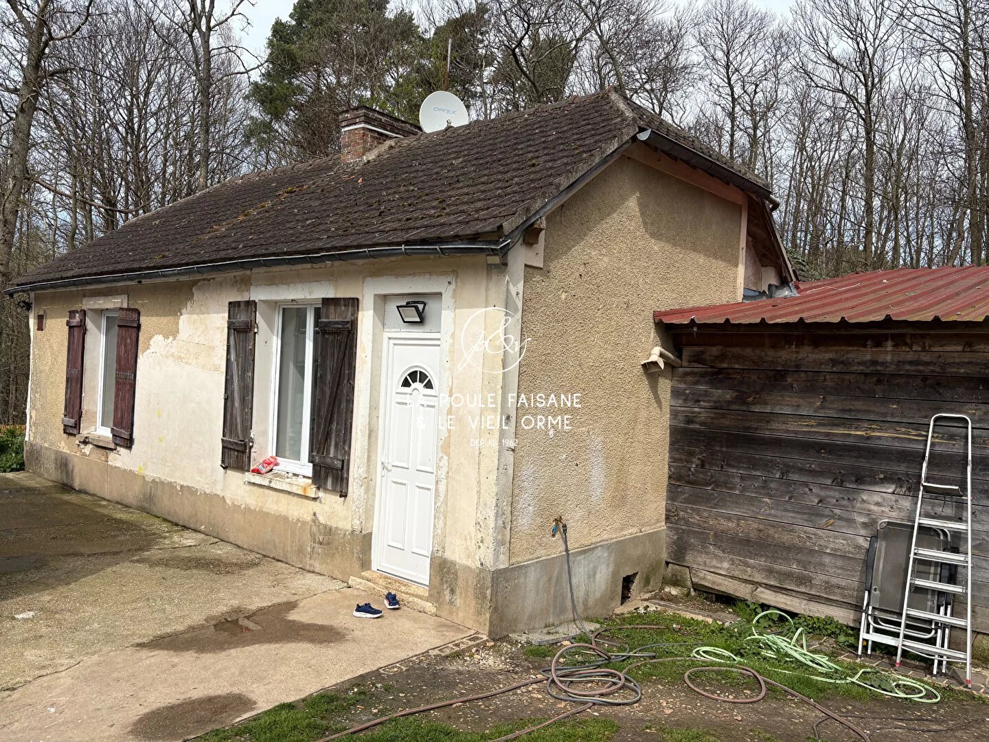 Proche MONTFORT L'AMAURY, au calme , ensemble boisé d'environ 16 hectares avec maison récemment rénovée d'environ 70 m² agrandissable et hangar.