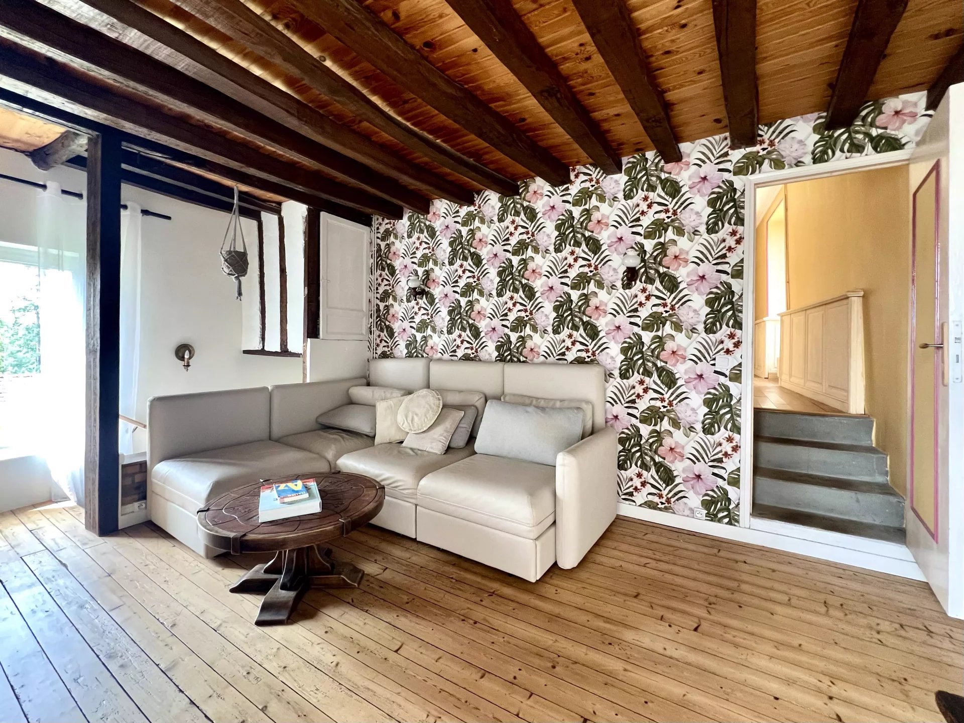 À l’étage, un salon cosy mène à une première chambre, une salle de bains avec toilettes, ainsi qu’à une suite parentale avec salle d’eau privative. Les combles, intelligemment aménagés, offrent deux belles chambres supplémentaires, dont l’une attenante à un espace bureau ou salle de jeux.