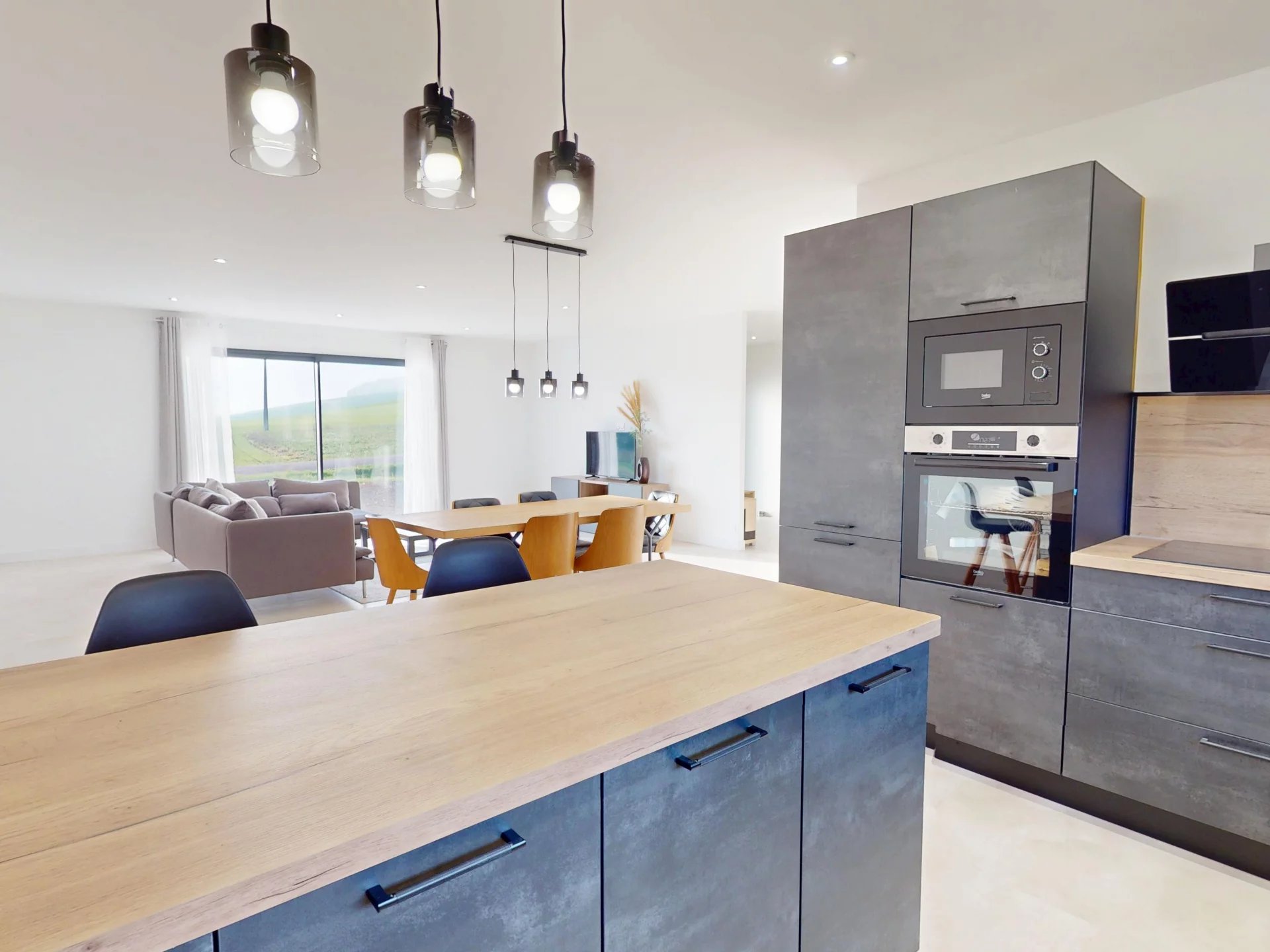 A Montgueux à 6 km de l'agglomération, Venez découvrir ce pavillon de plain pied developpant 145m2. Vous aurez une entrée de 8m2 dont penderie, un espace toilettes séparé; La pièce de vie Salon Séjour Cuisine Equipée ouverte, formant le tout 54m2 !!! 2 baies vitrées pour accès au patio de 20m2 couvert, cellier aménagé 7m2, dégagement, trois premières chambres avec placards et 12,40m2 ; 13,30m2 et 14,5m2 , ensuite une suite parents de 20,5m2 avec sdd +dressing et chambres , une salle de douche complète wc+baignoire+douche italienne complète cette offre généreuse. un garage accolé isolé peint de 27m2 avec une porte sectionnelle isolée , terrain de 1067m2 . maison bénéficiant de la norme RE 2020 grace au chauffage par le sol hydraulique avec PAC. Produit disponible impeccable !!!