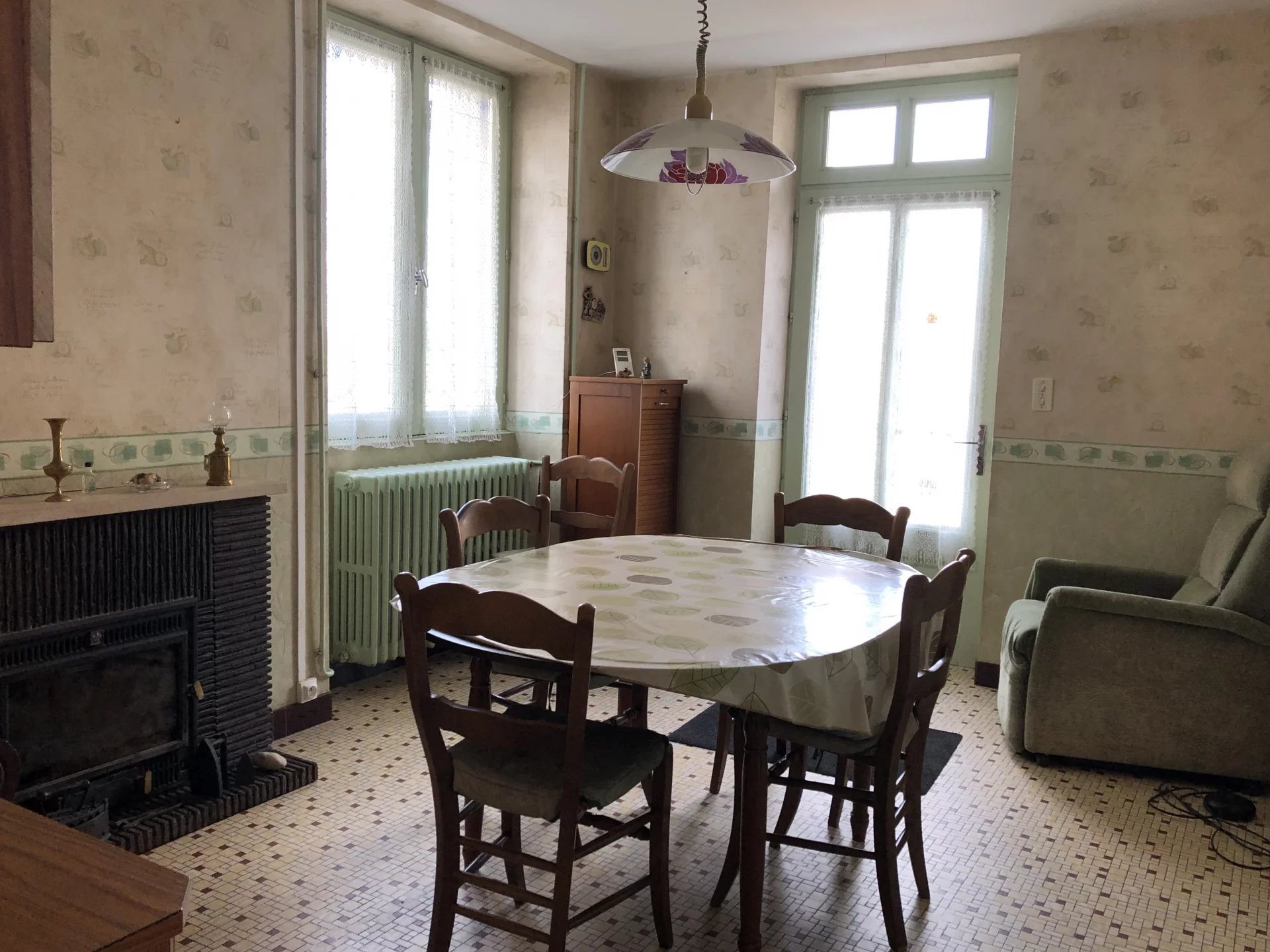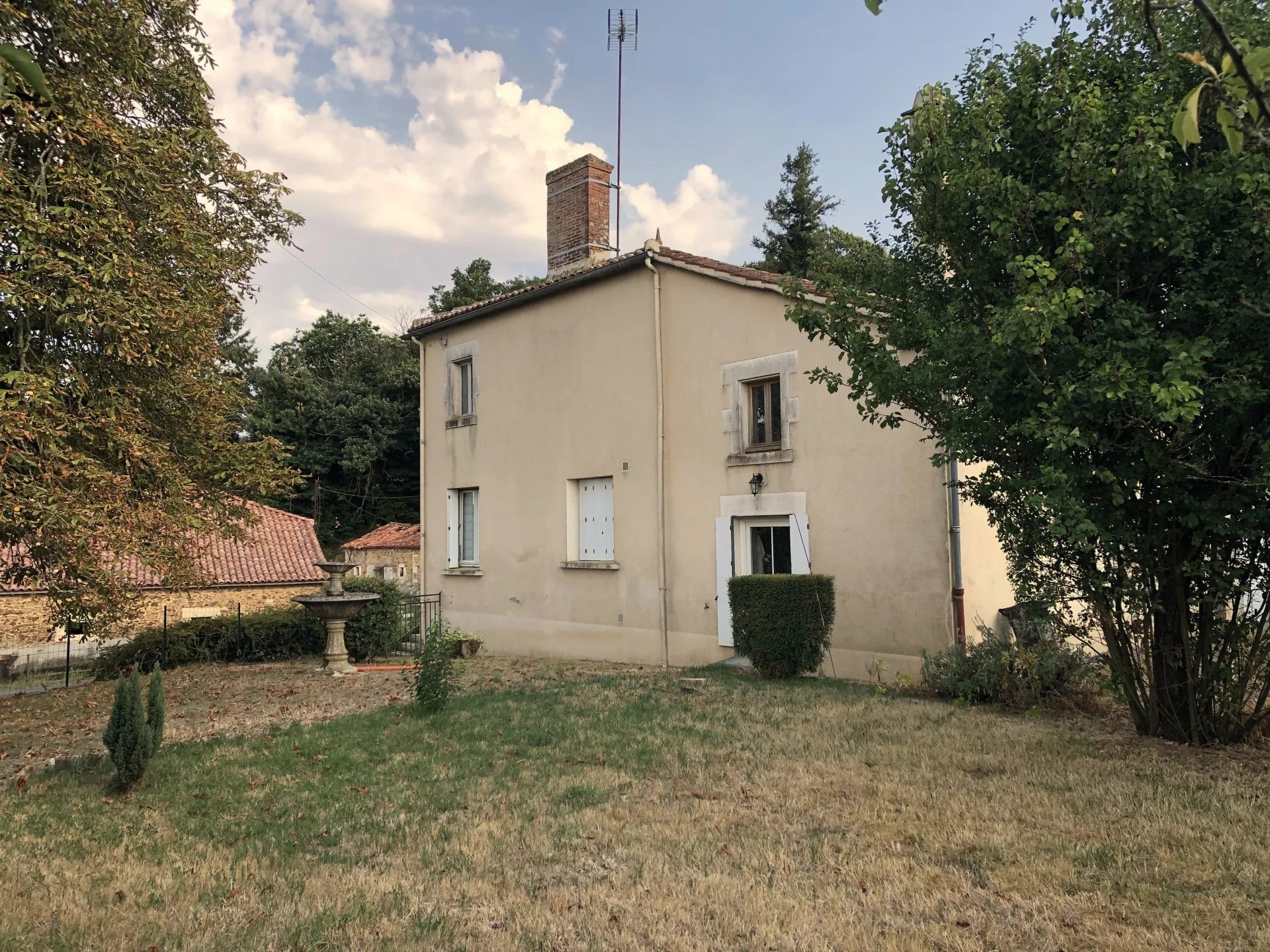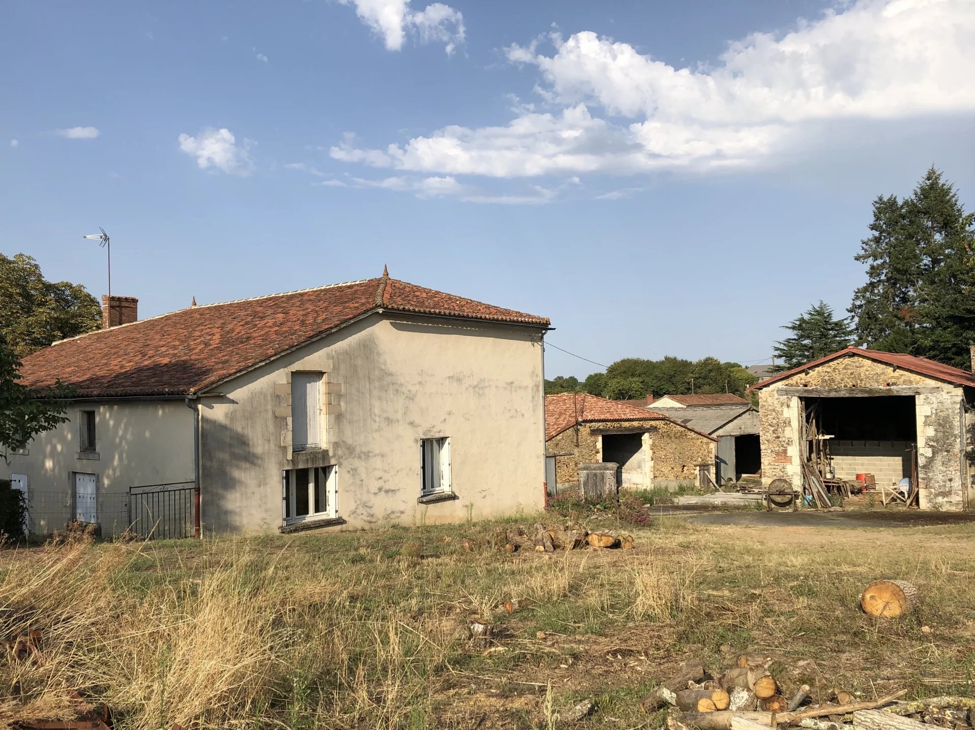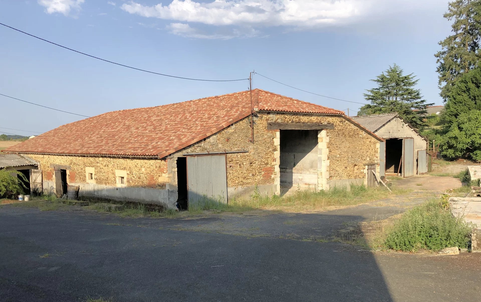 296 400 €Corps de ferme sur 1,4ha Votre agence immobilière AIP POUZAUGES vous propose : Cette grande maison de campagne à rénover avec de belles dépendances située entre Pouzauges, la Châtaigneraie et Chantonnay, Sur 168 m² habitables, la maison offre de plain-pied : une salle à manger/cuisine, un salon avec cheminée, 5 chambres, une salle d'eau, WC, une lingerie et une chaufferie (chaudière fuel/bois). A l'étage : 2 beaux greniers aménageables (80 et 108m²). Du côté des dépendances : une grange traditionnelle en pierre, d'environ 420m² en très bon état (toiture récente), un bâtiment d'élevage d'environ 420m², un hangar (70m²), un garage et autres anciennes bâtisses. Puits. L'ensemble sur 1,4 hectare de terrain. Les informations sur les risques auxquels ce bien est exposé sont disponibles sur le site Géorisques : www.georisques.gouv.fr