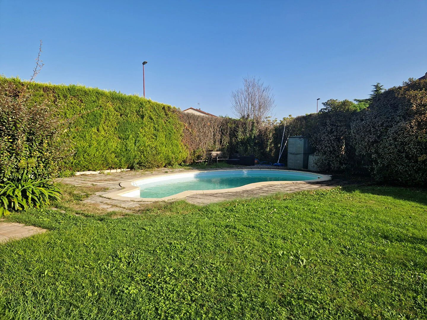 EXCLUSIVITE D'AGENCE Maison de 127 m² hab comprenant séjour/salon/cuisine équipée ouverte de 45 m² avec baie vitrée, 5 chambres, salle de bains aménagée, toilettes, garage de 26 m², piscine sur 1000 m² de terrain clos et arboré. De nombreuses fissures constatées, des travaux conséquents sont à prévoir.. Classe énergie C. Honoraires à la charge du vendeur.