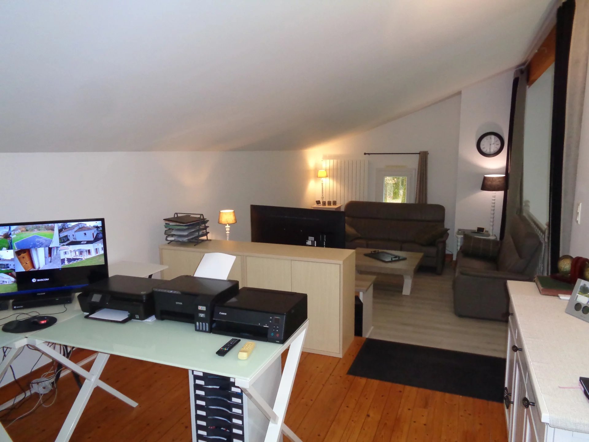 Au premier étage se trouvent un spacieux salon de 30 m², deux chambres et une salle d'eau avec WC.