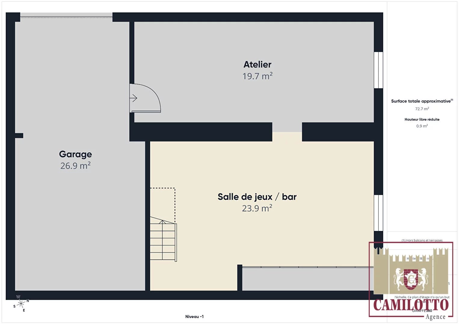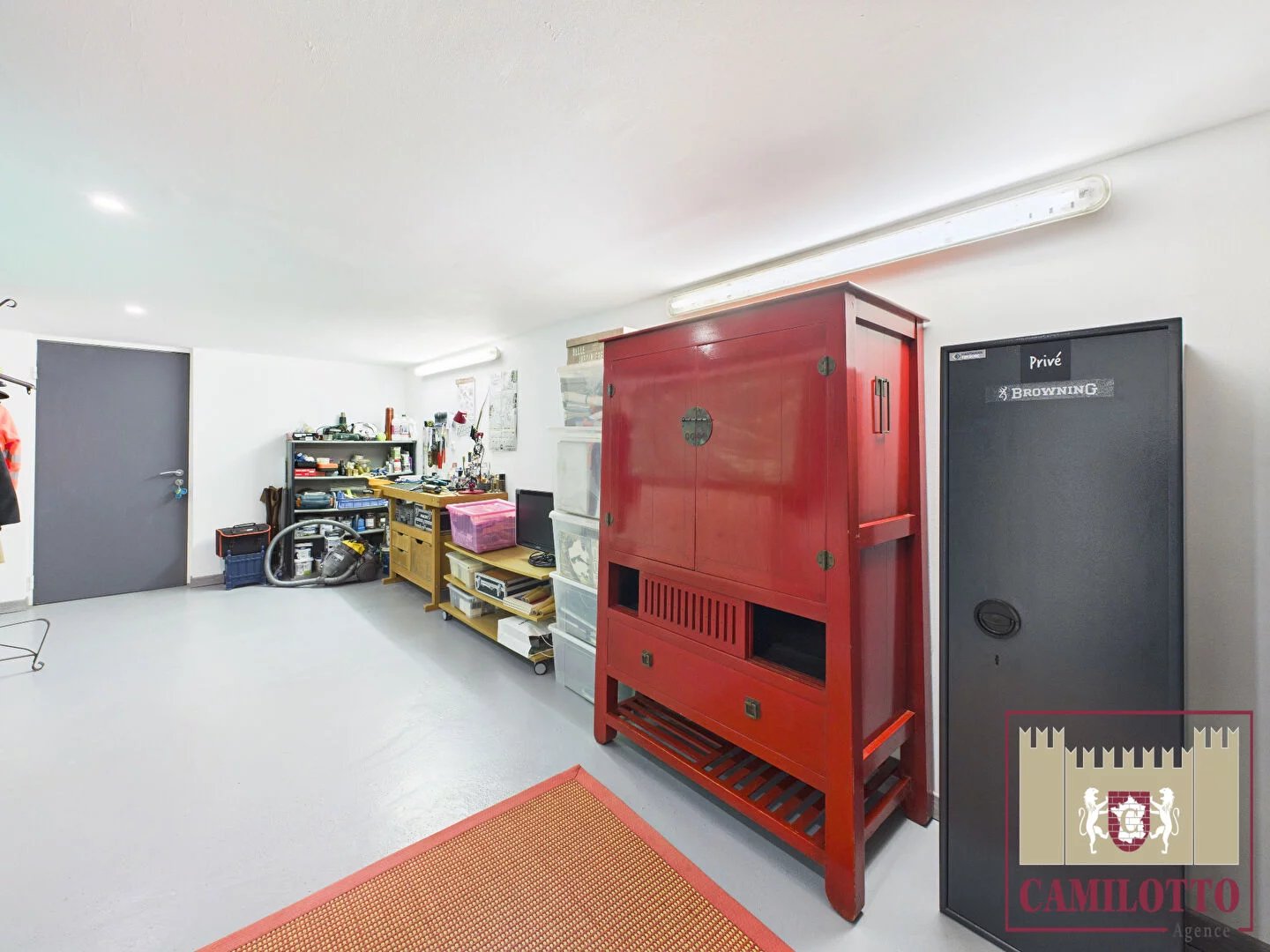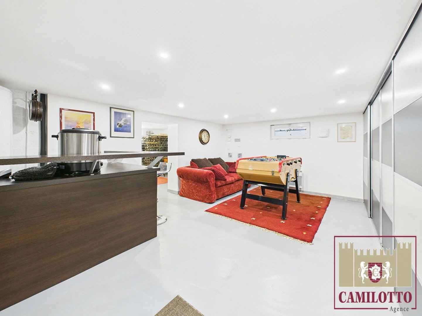 Le sous-sol total, entièrement aménagé, complète parfaitement ce bien avec une grande pièce de jeux ou bar, une buanderie avec rangements, un atelier et un garage.
