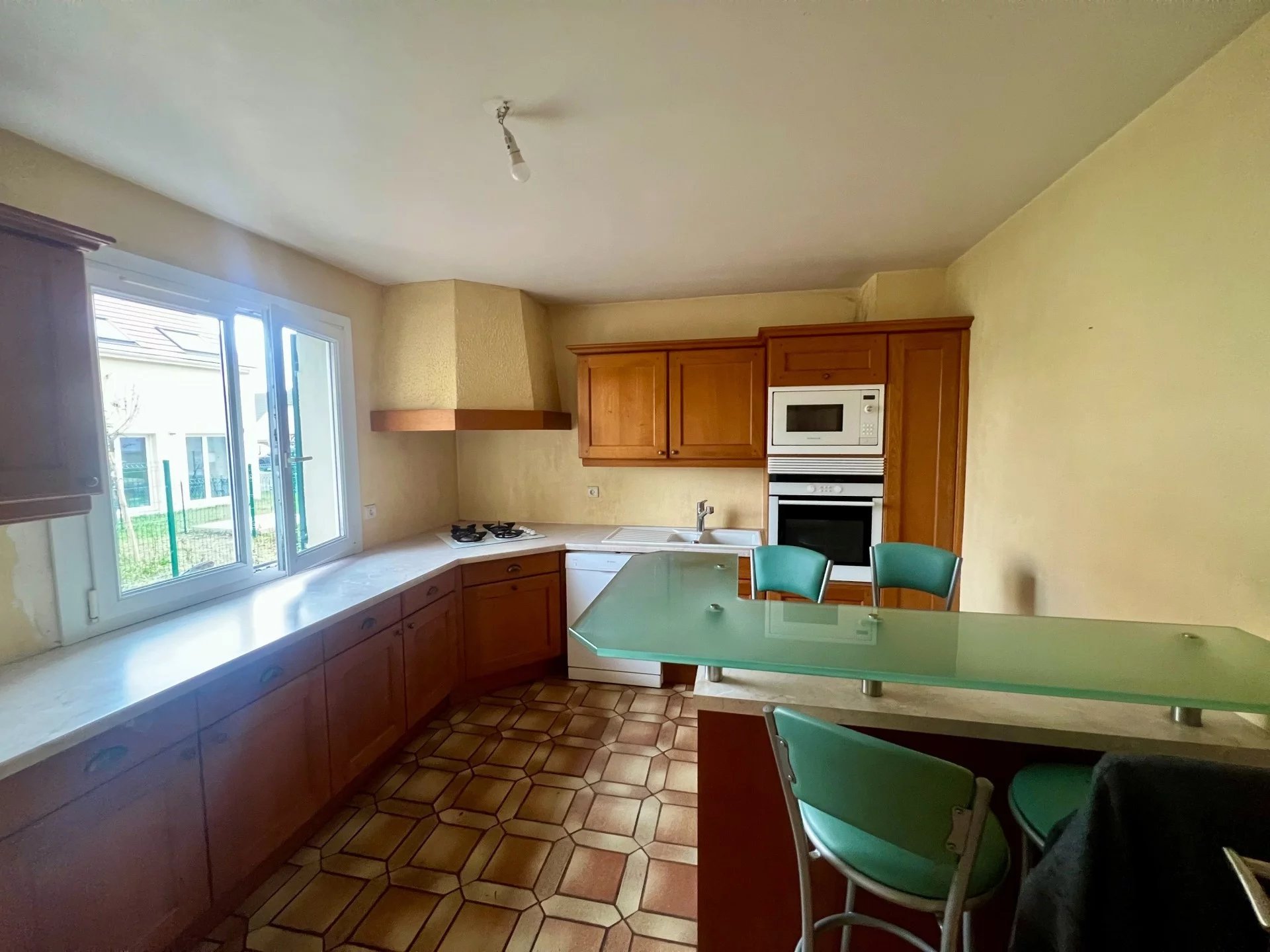 Ollainville La Roche - maison individuelle d'environ 140 M2 (160 M2 utiles) édifiée sur sous sol total comprenant au rez de chaussée, une entrée, un grand salon/salle à manger d'environ 50 M2 avec cheminée insert, une cuisine, un WC, une salle d'eau et une chambre, à l'étage un grand palier pouvant servir de bureau dessert trois chambres et une salle de bains avec WC. Le tout sur 552 M2 de terrain avec terrasse exposé sud ouest. Prévoir rafraichissement, tableau électrique et remplacement chaudière. Huisserie double vitrage.