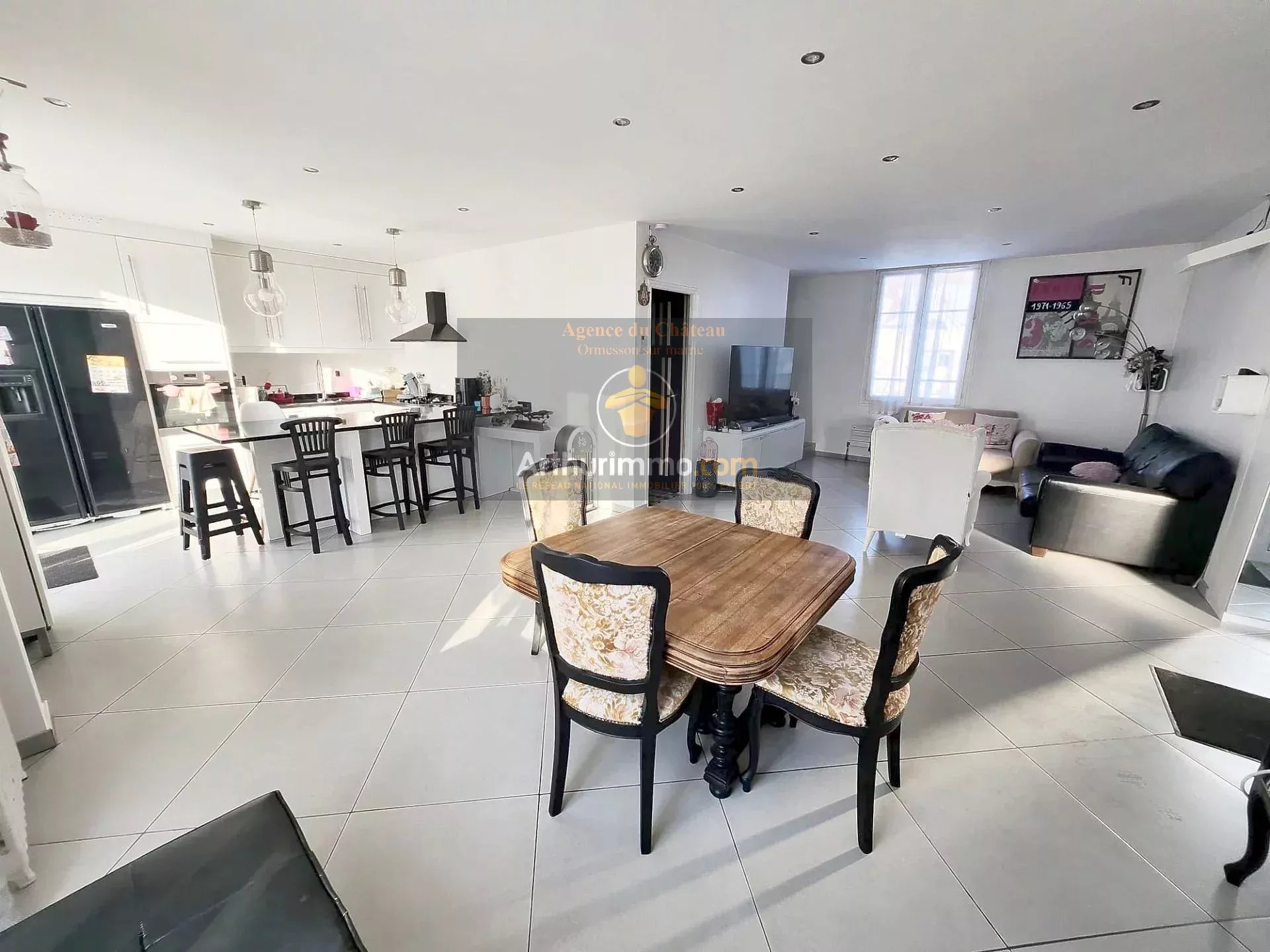 Belle maison située dans le secteur du château d'Ormesson maison indépendante sans mitoyenneté sur une parcelle de 375 m² et de 150 m² utile, offrant au sous sol sur élevé: une buanderie , une pièce avec cave a vins, 2 pièces donnant accès à une véranda et au jardin, salle d'eau avec wc.