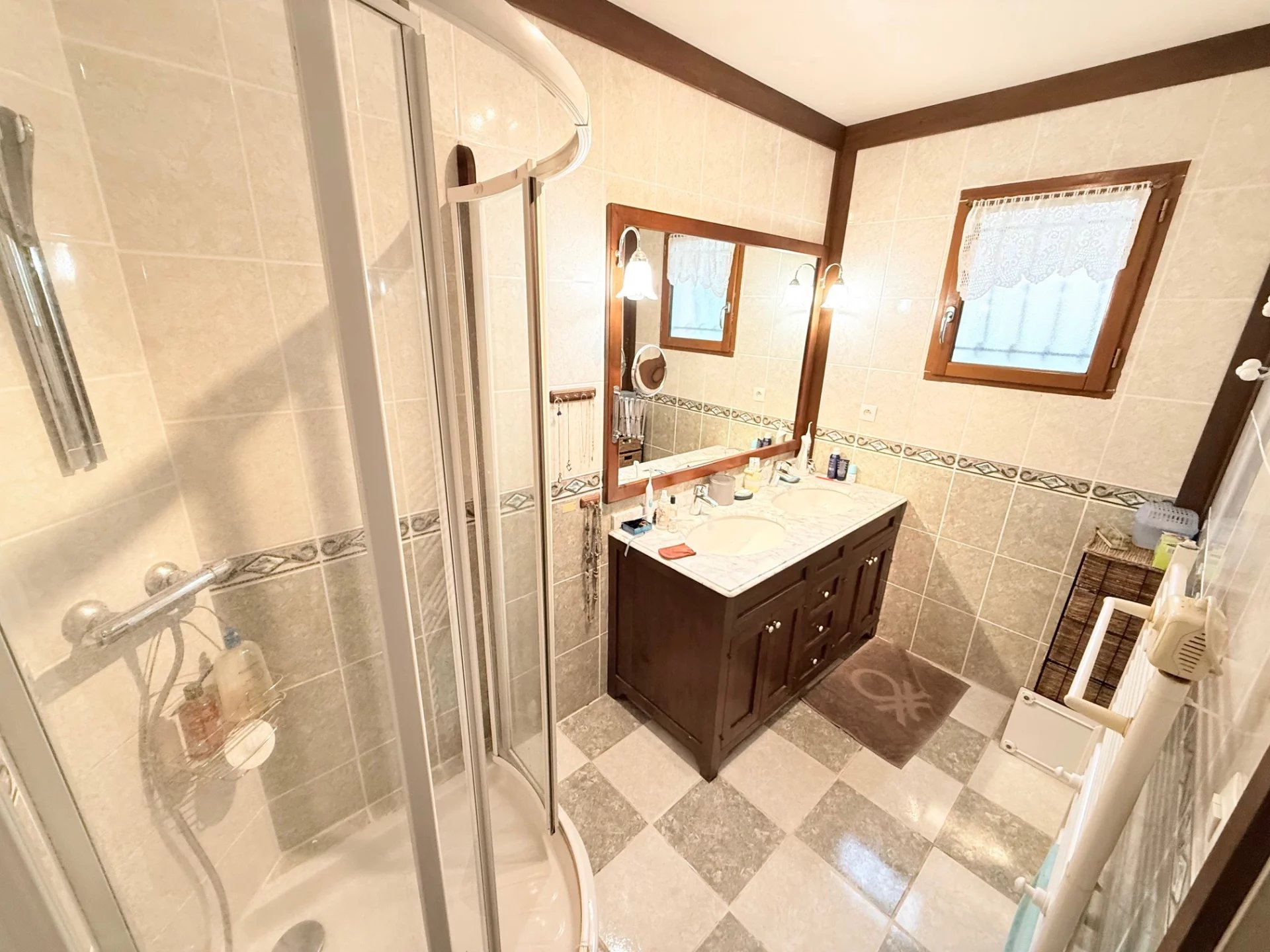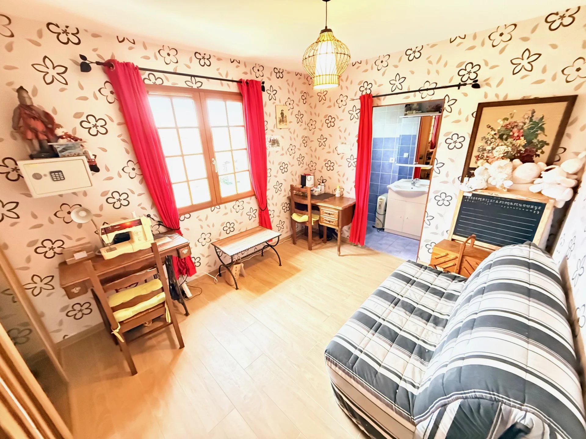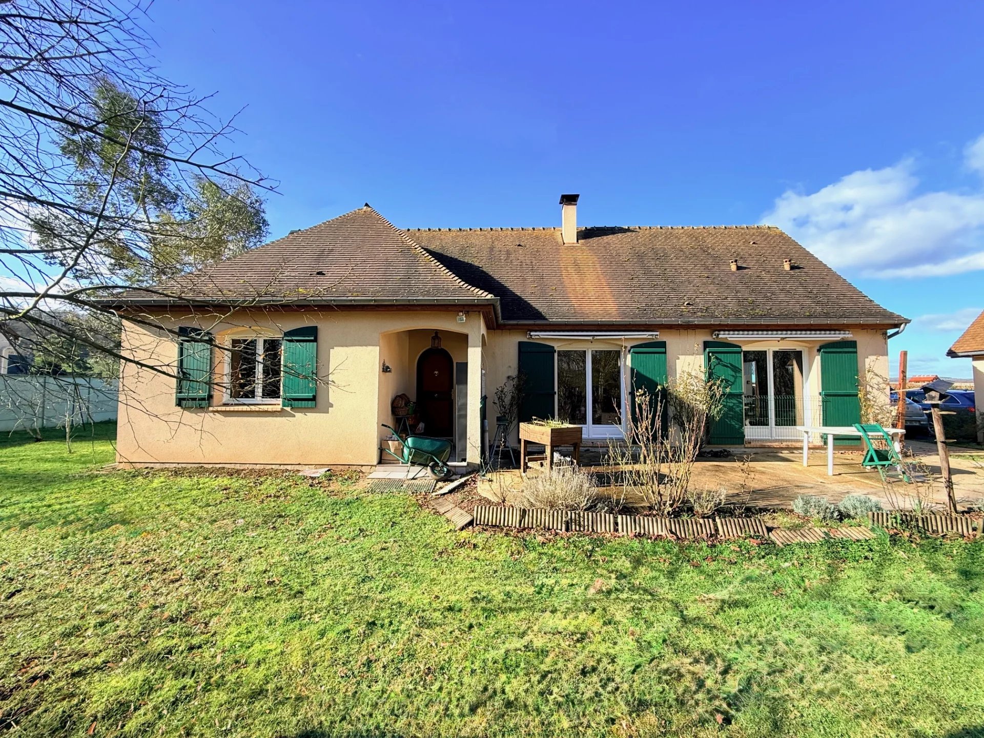 Deux garages indépendants, abri de jardin et terrasse complètent l’ensemble.