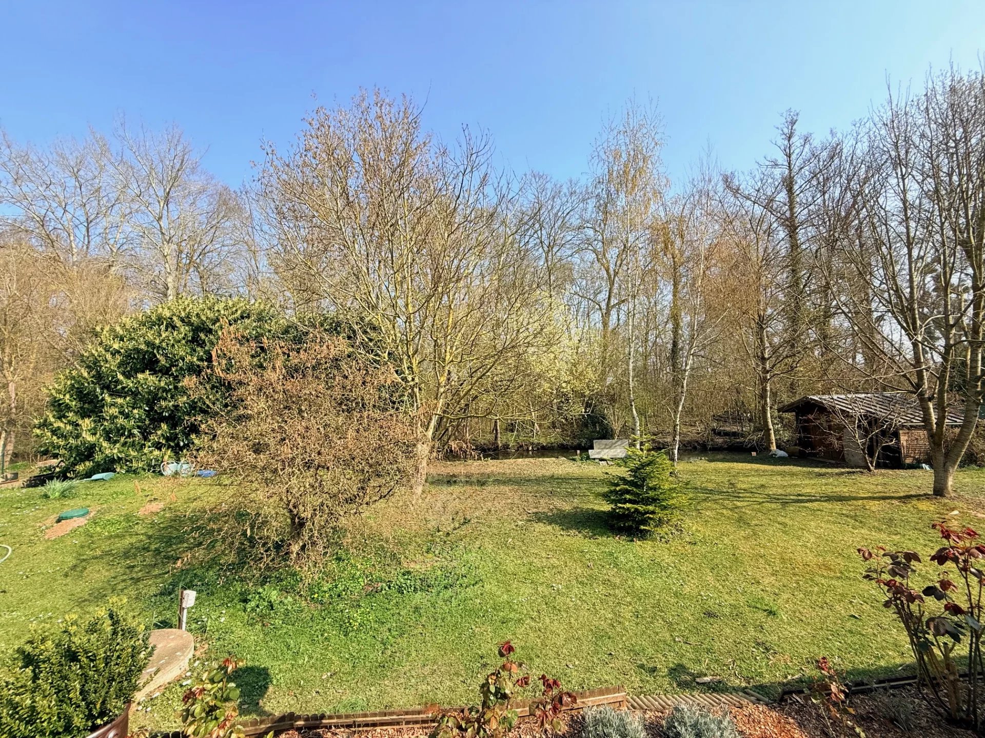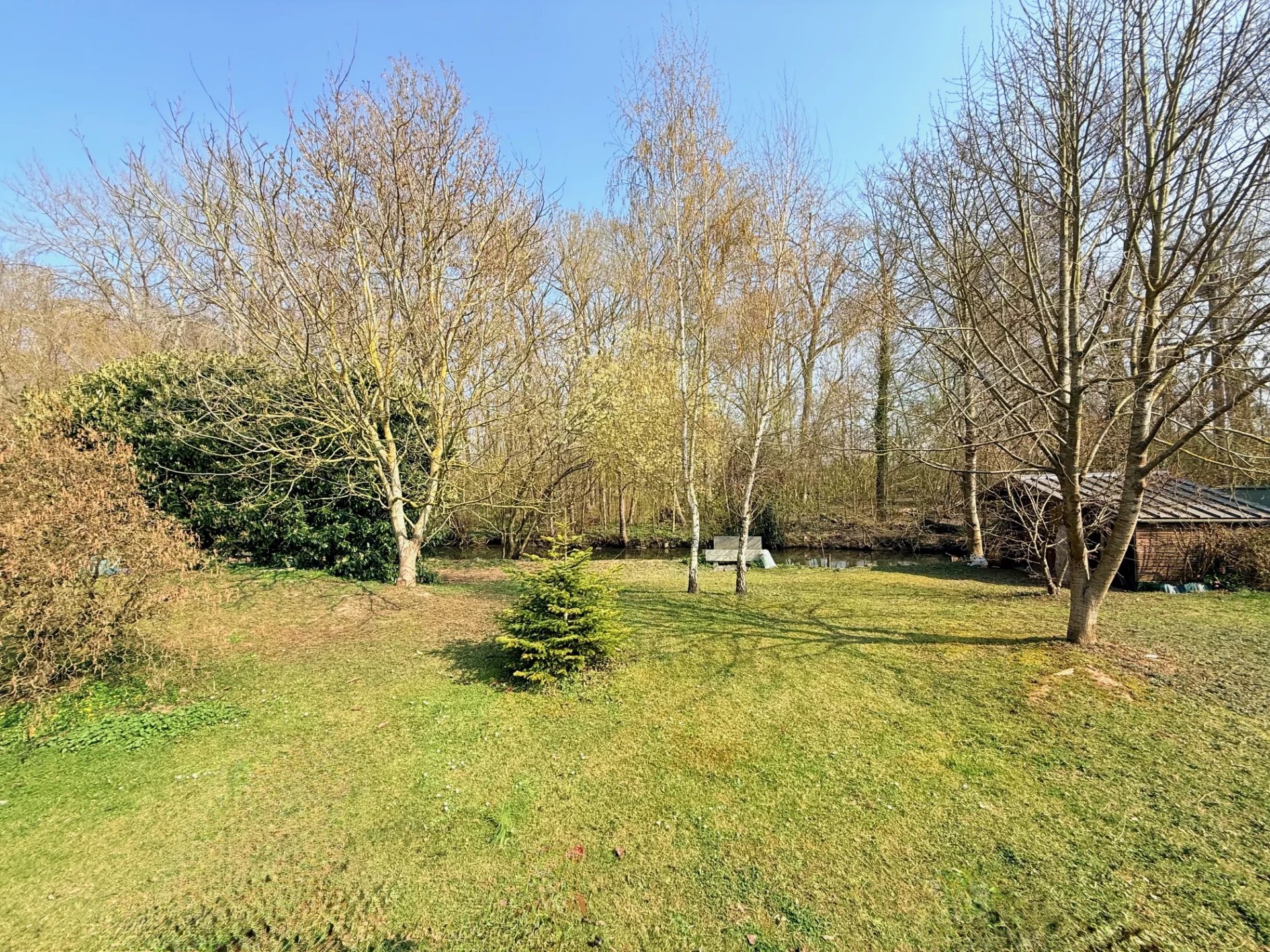 À l’extérieur, vous profiterez d’un superbe terrain arboré de 2 115 m², bordé par un bras de l’Eure avec environ 80 mètres de berges privées – un environnement naturel exceptionnel !