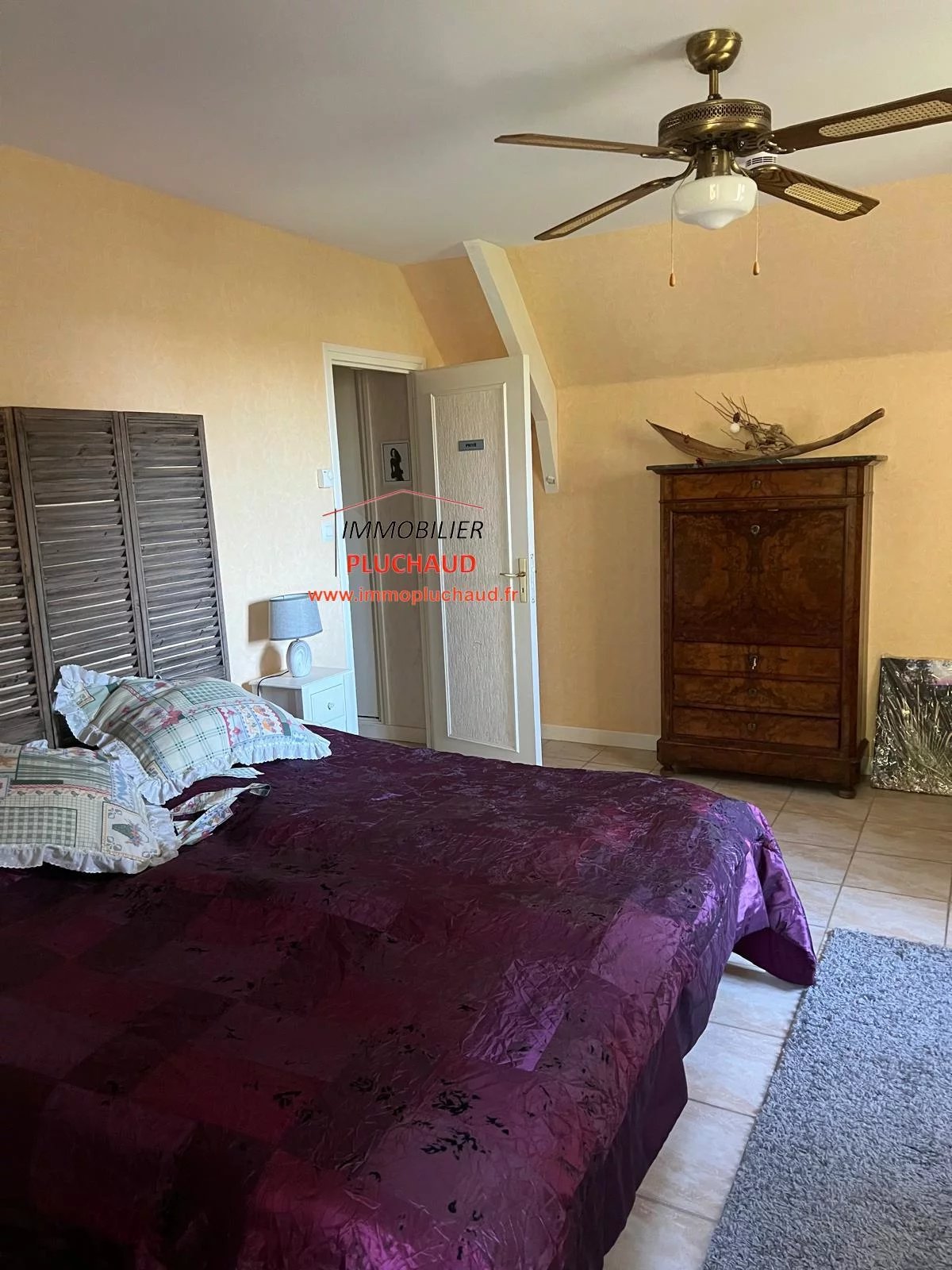 A l'étage, accès par un très bel escalier en pierre, dégagement, 4 chambres, douche, WC.
