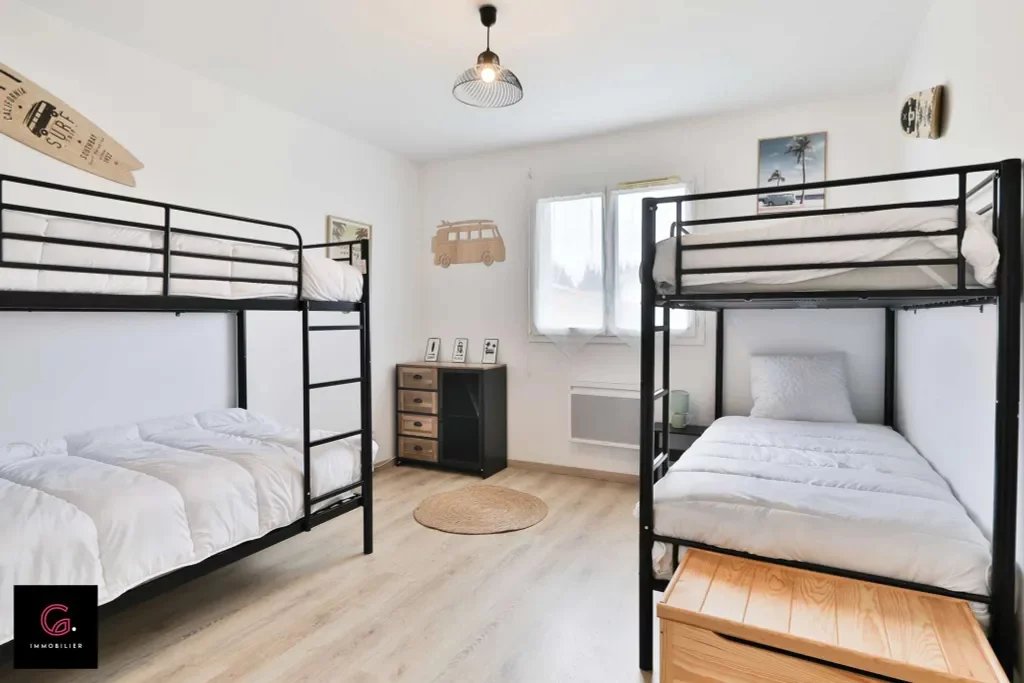 315 000 €Découvrez cette charmante maison plain-pied construite en 2017, située à Parentis en Born. Ce bien rare sur le marché comprend 3 chambres au rez-de-chaussée, une cuisine aménagée et équipée, une salle d'eau, 2 WC, ainsi qu'une climatisation réversible et un chauffage électrique. La maison est en bon état général, avec des fenêtres mixtes alu et PVC, des volets PVC roulants, et un assainissement tout à l'égout. Vous profiterez d'un terrain viabilisé de 490 m² avec une terrasse, une piscine, et 2 places de parking. L'accès PMR est également disponible. La localisation est idéale, à seulement 2 km des commerces, à 5 minutes des écoles telles que le Lycée professionnel Saint-Exupéry, le Collège Saint-Exupéry, et l'École Maternelle Françoise Dolto, et à 20 km de la mer. Cette maison bien pensée est une opportunité à ne pas manquer. Contactez GOSSELIN IMMOBILIER pour plus d'informations. Jérémy MARRIGUES (EI) Agent Commercial - Numéro RSAC : 953 292 588 - Mont-de-Marsan.
