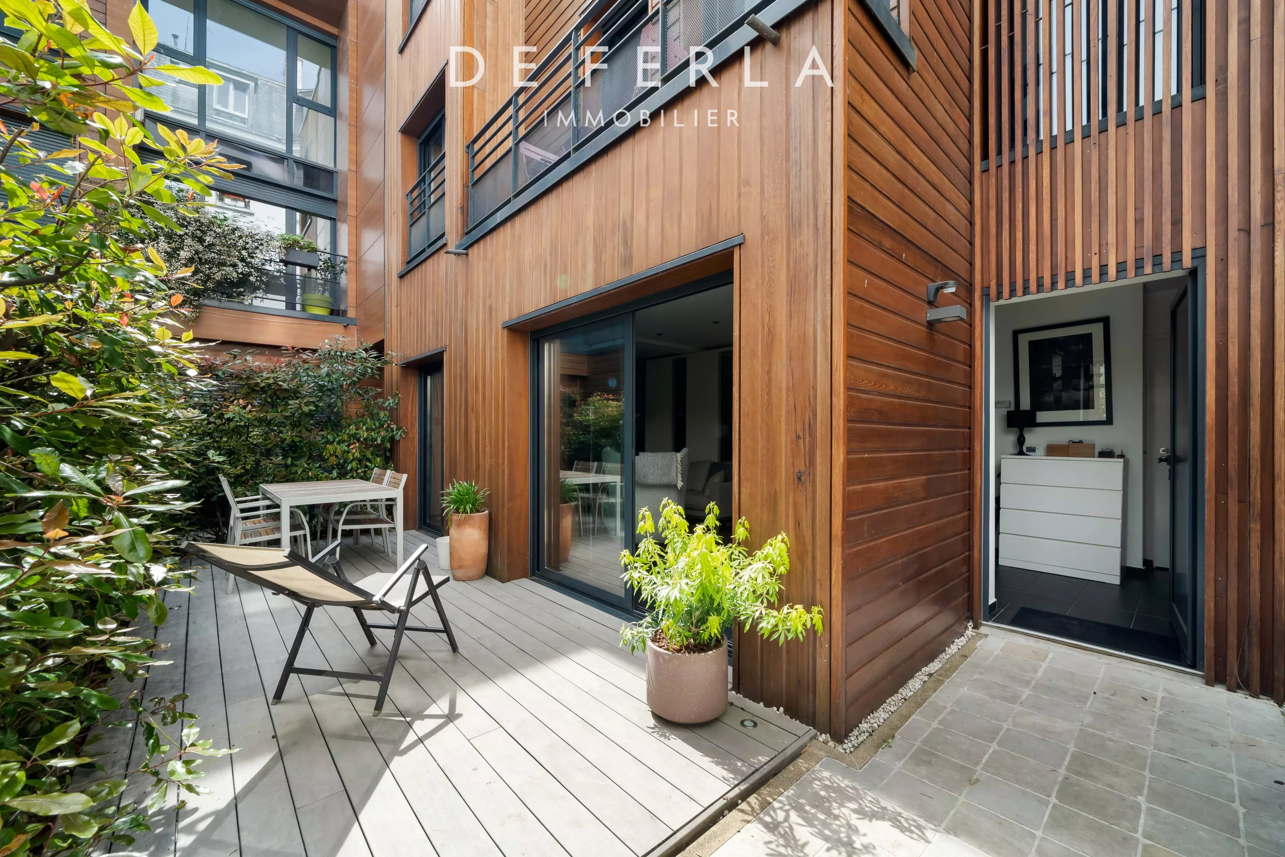 En fond de cour d’un immeuble de standing, une maison récente de charme avec extérieur au calme absolu de 126m2 Carrez. Une maison en bois eco responsable construite en 2013 par architecte avec jardin/terrasse privatif comprenant: