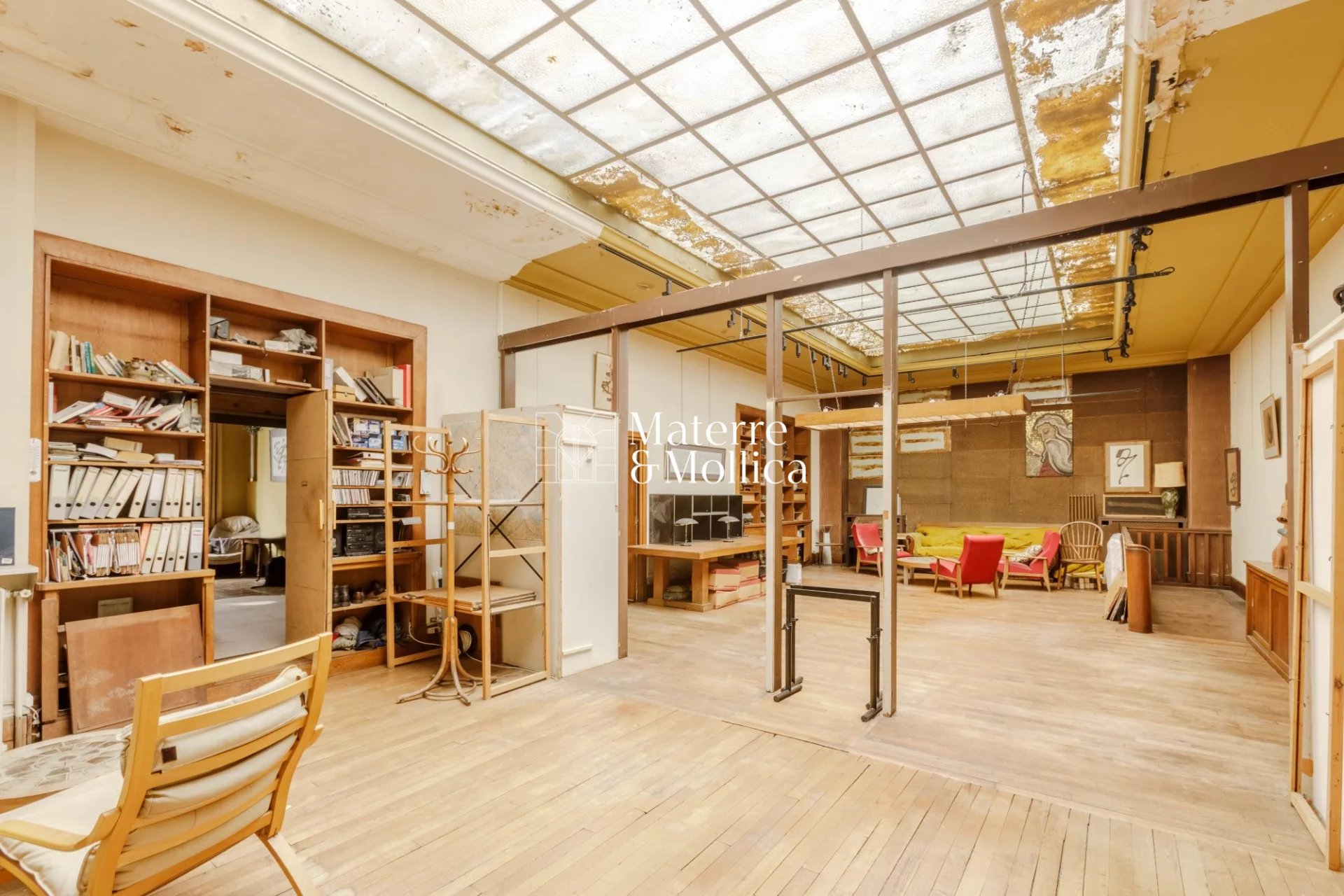 Comprenant : un rez-de-chaussée surélevé desservi par un très bel escalier massif ouvrant sur deux grandes pièces de réception avec cheminée monumentale et une grande pièce de 100 m² sur cour sous verrière. Volumes superbes et belle hauteur sous plafond.