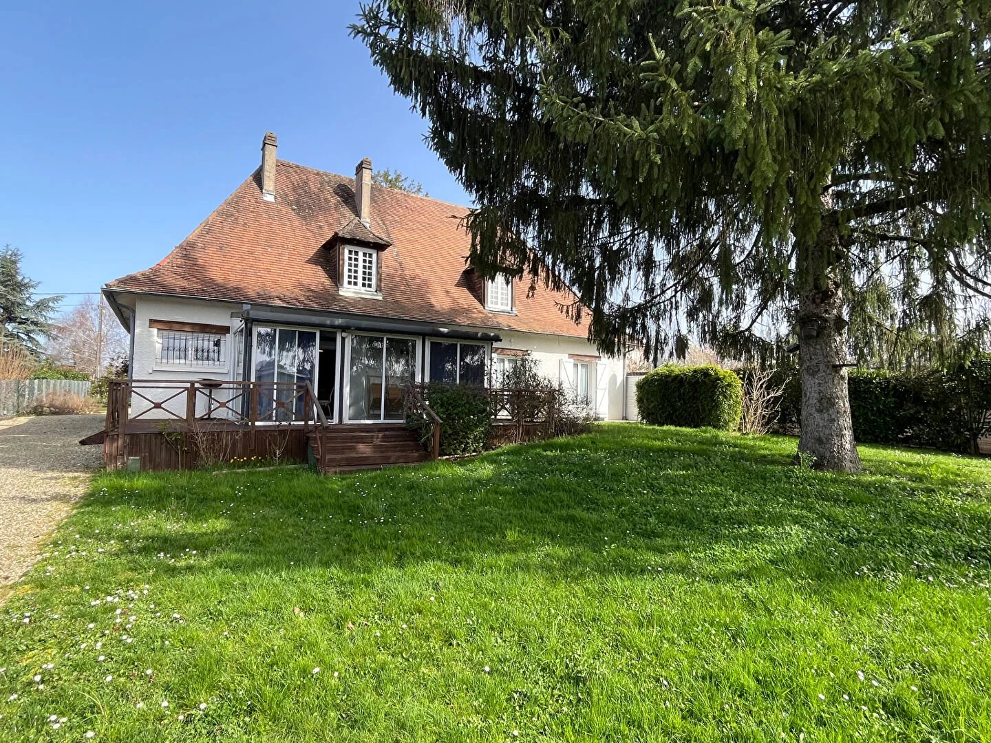 Elle se compose d'une entrée, une grande pièce à vivre avec un poêle à granulés et d'une climatisation réversible. La cuisine est indépendante, aménagée et équipée, avec accès sur une véranda et le jardin. Elle dispose d'une grande chambre au RDC climatisée avec dressing, une salle d'eau et un wc. A l'étage, la mezzanine est utilisée en bureau, on trouve 2 belles chambres mansardées, une salle d'eau avec wc. Deux grands greniers peuvent être aménagés !