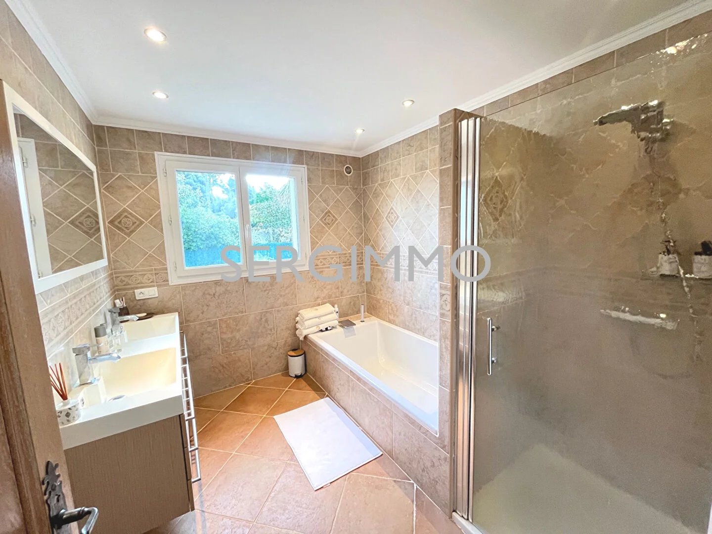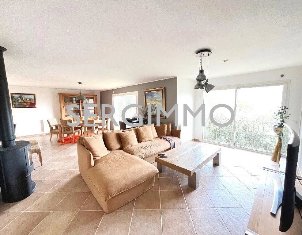 SERGIMMO 83440, à vendre à PEYMEINADE 06530, Belle villa récente de très bonne construction offrant de grands espaces : hall d'entrée, spacieux séjour/salle à manger avec poêle à bois, cuisine équipée ouvrant sur terrasse couverte bénéficiant d'une magnifique vue, 4 chambres, 2 salles de bain avec douche, salle d'eau, 3 wc. Garage 50m2 Possibilité de créer un appartement avec une entrée indépendante. Grand parking, abri deux voiture Possibilité de détacher avec accord pour deuxième construction. Terrain de 2694m2 arboré d'oliviers. Espace piscine avec de belles ambiances. Les honoraires sont charge vendeurs. Contact : 99.04.94.39.10.99. Prix 845 000 euros Référence 1973