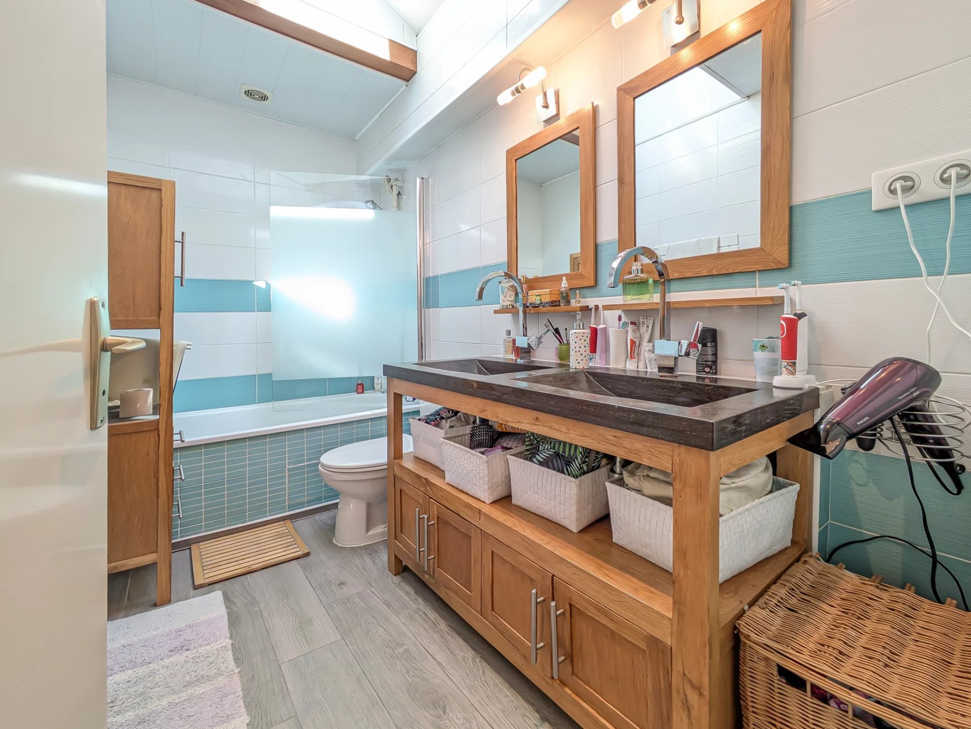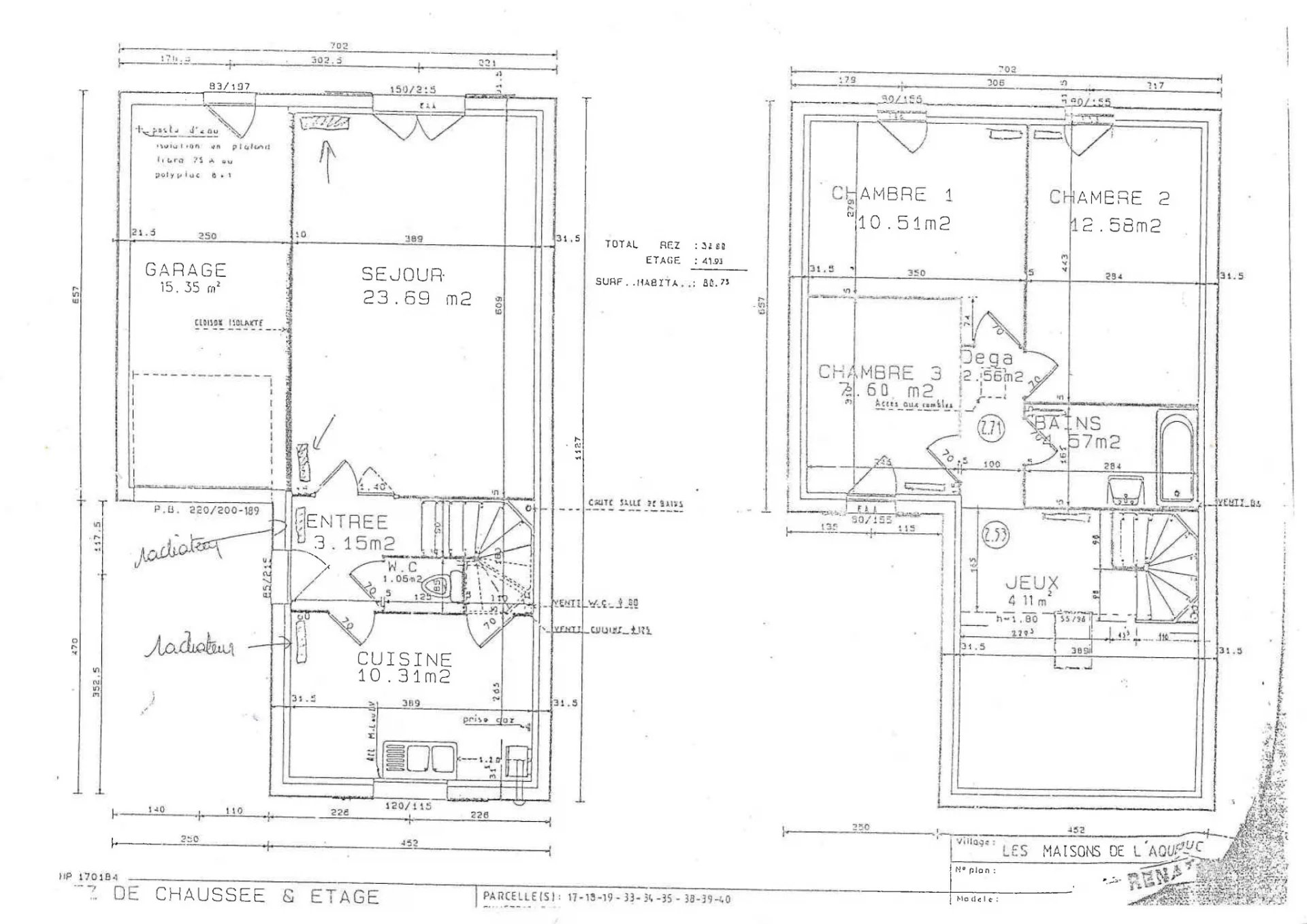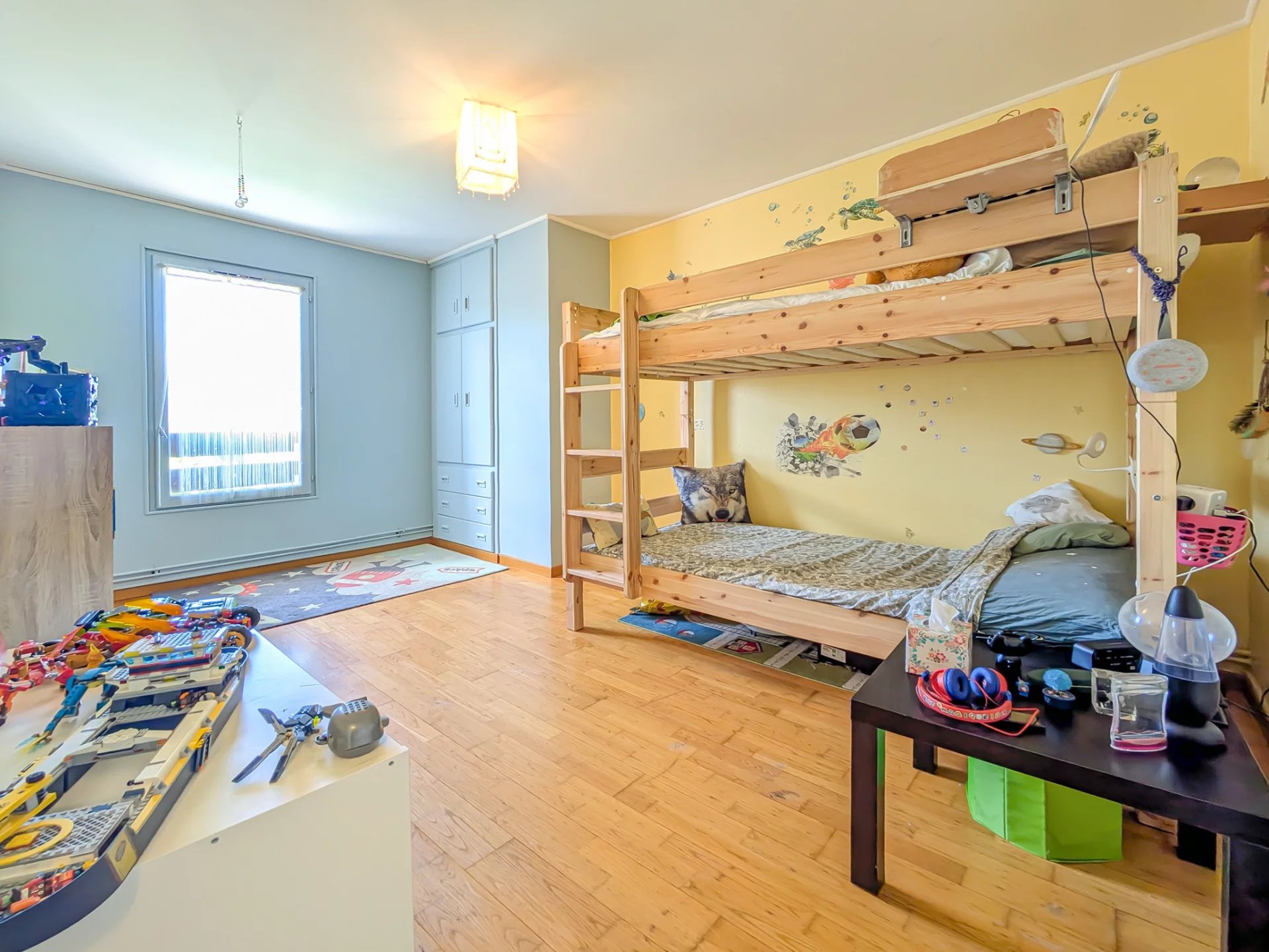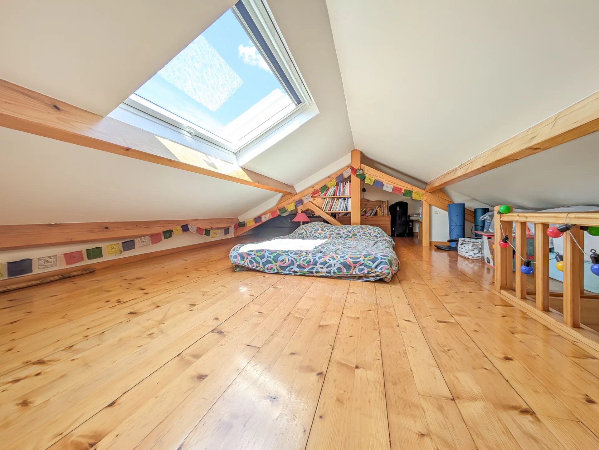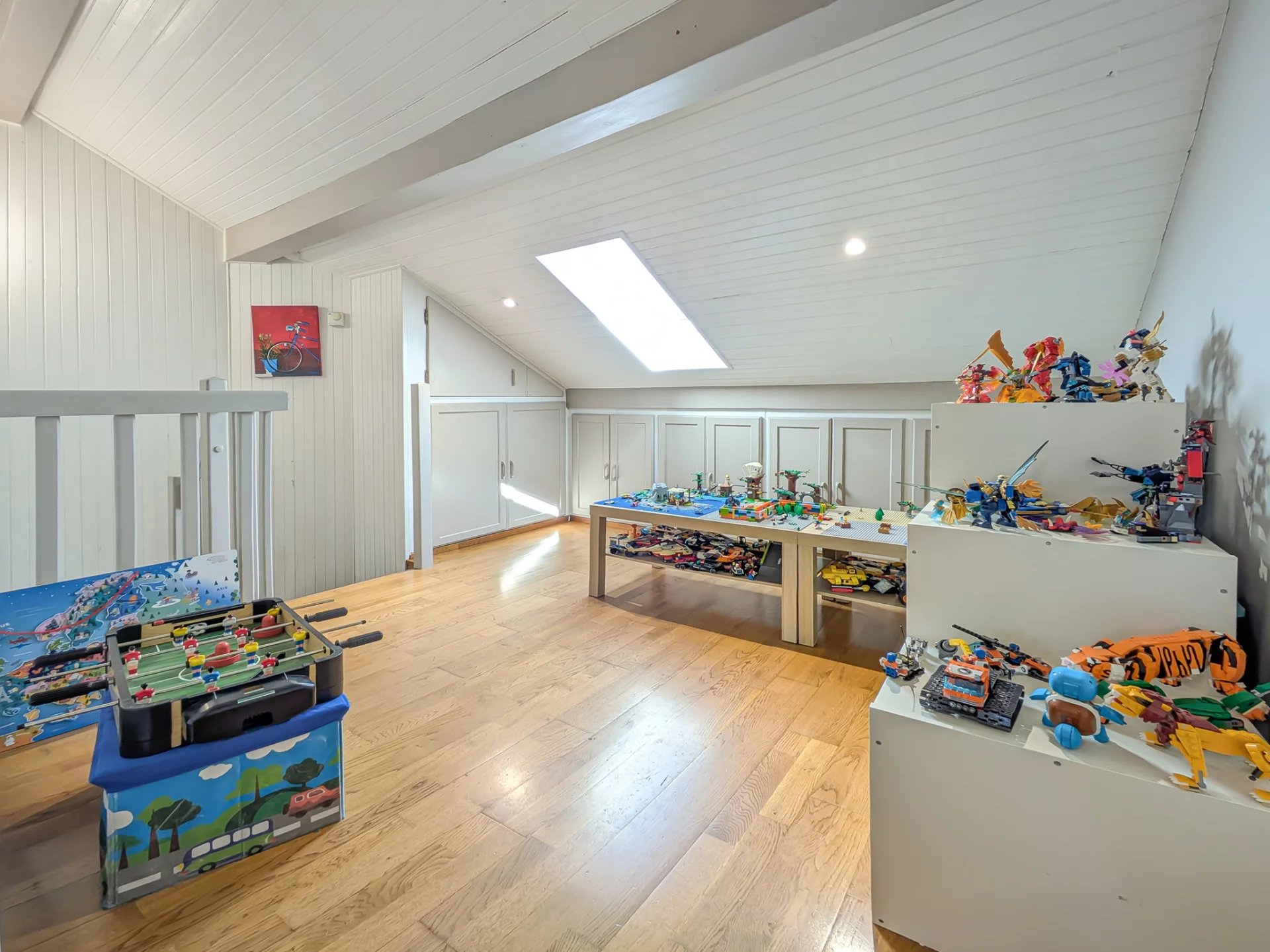 - Au 1er étage, un espace jeux, 2 belles chambres et une chambre en 2 parties, avec espace sous combles (24m2 au sol), une salle de bains avec WC.