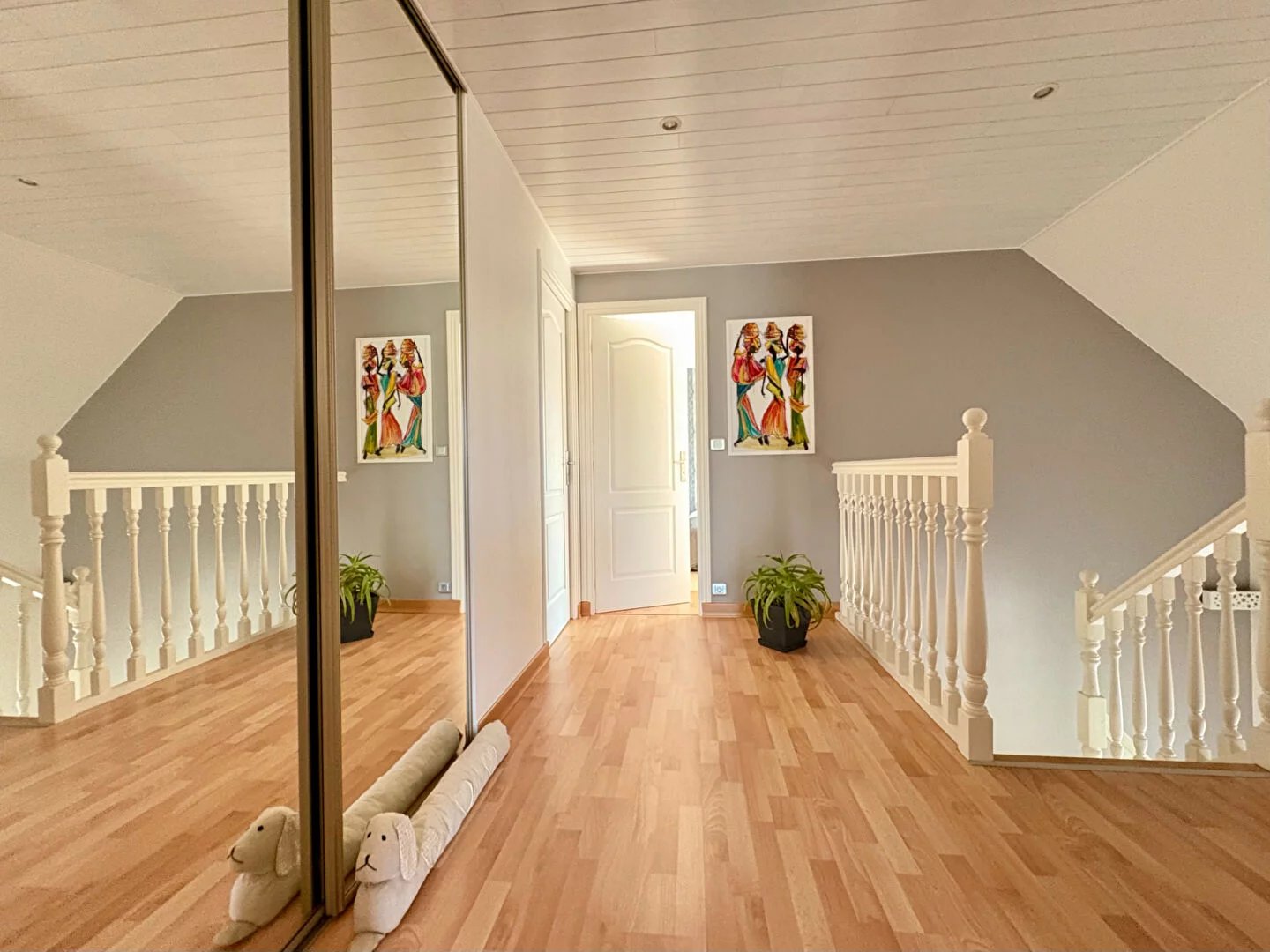 À l'étage, une mezzanine avec balcon dessert trois chambres, une salle de bains, un WC séparé et un dressing.
