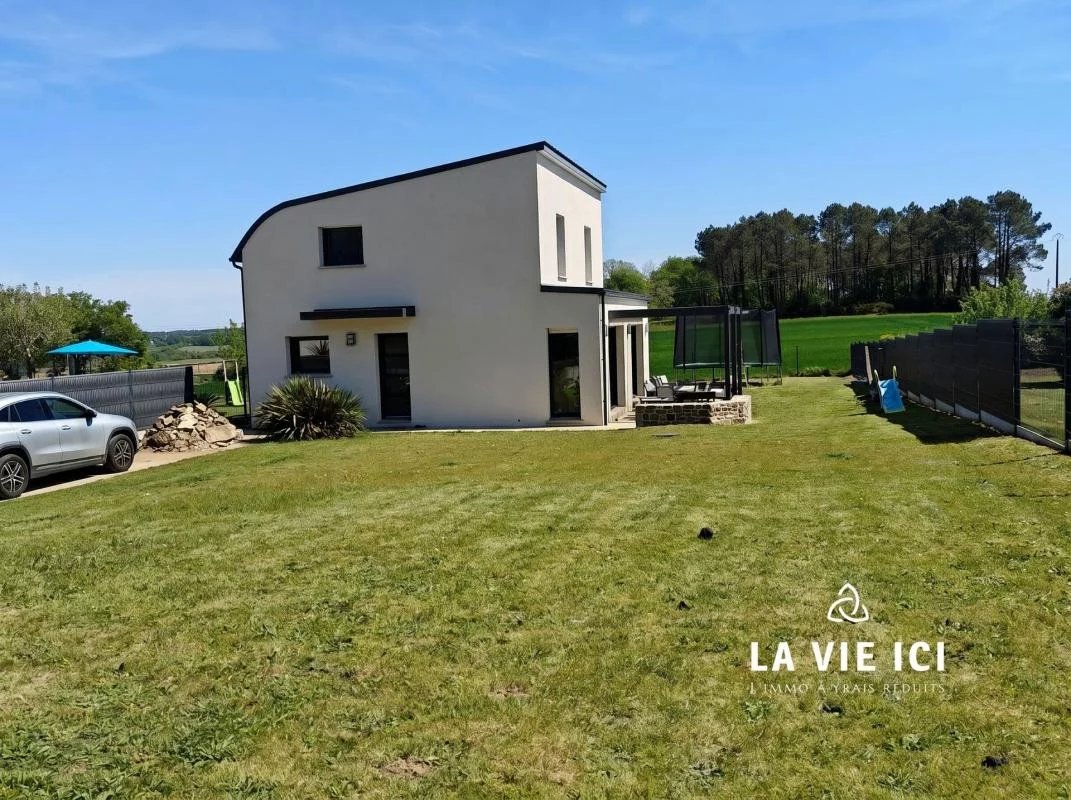 Pour une maison de 2016, disposer d'un terrain de cette superficie, entièrement clos, est devenu exceptionnel. Implantée dans un petit hameau — quelques maisons, une ambiance de proximité — elle offre un cadre verdoyant et calme, sans pour autant être isolée.
